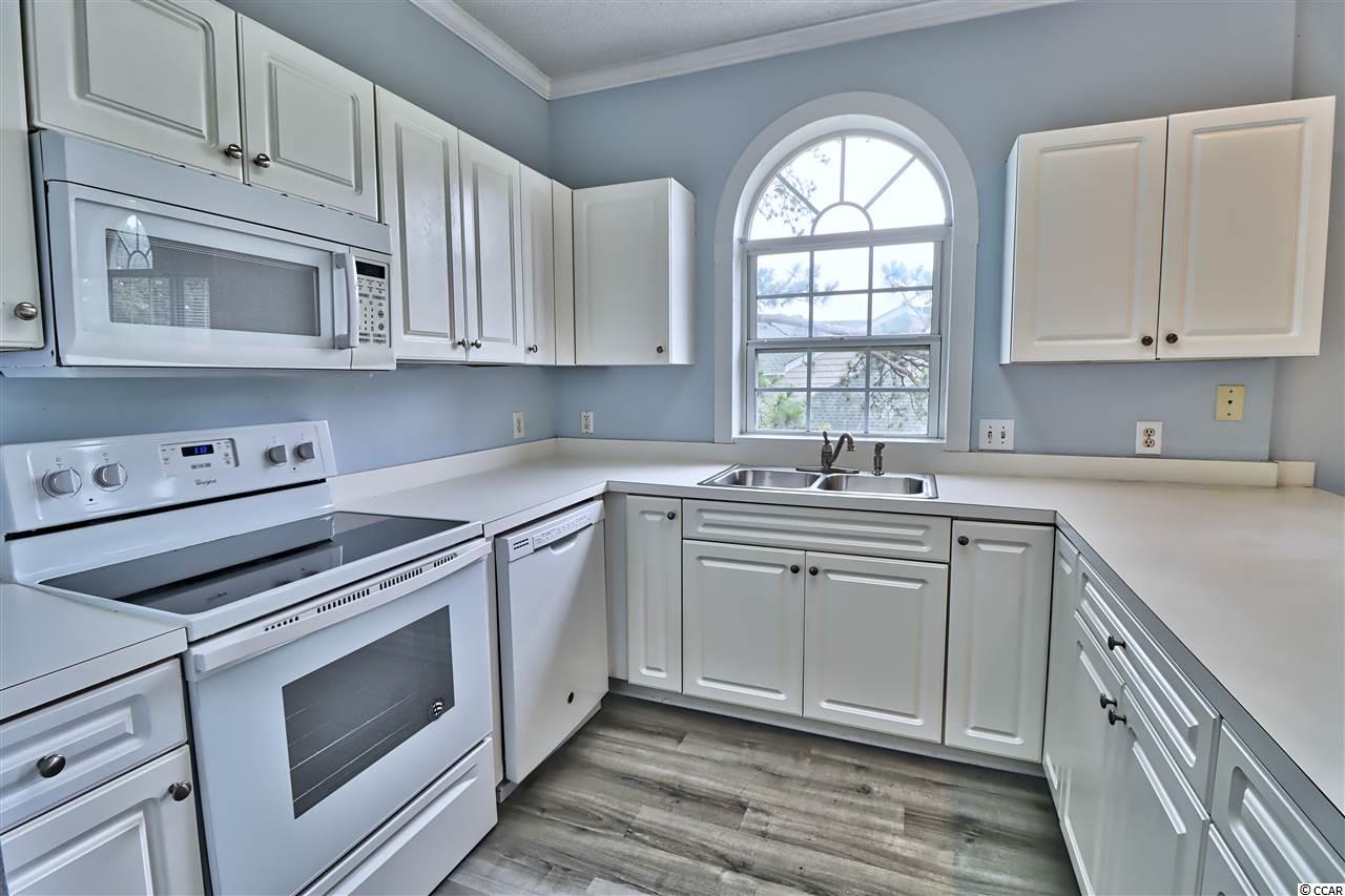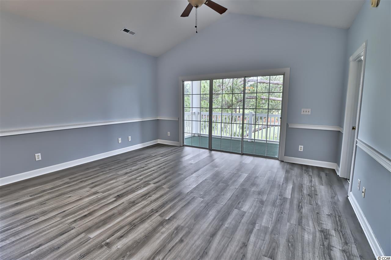 This top floor end unit condo has beautiful golf views from the balcony. Overlooking the golf course, this 2-bedroom 2 bath spacious condo has brand new flooring throughout, brand new water heater, brand new stove, brand new closet doors and was recently painted. Vaulted ceilings make this open floorplan seem even larger with the added windows of being an end unit. The washer/dryer conveys, making your new home move-in ready! Relaxation abounds you being only a few minutes to the beach or relax in the community pool. Dont waitthis one will not last!