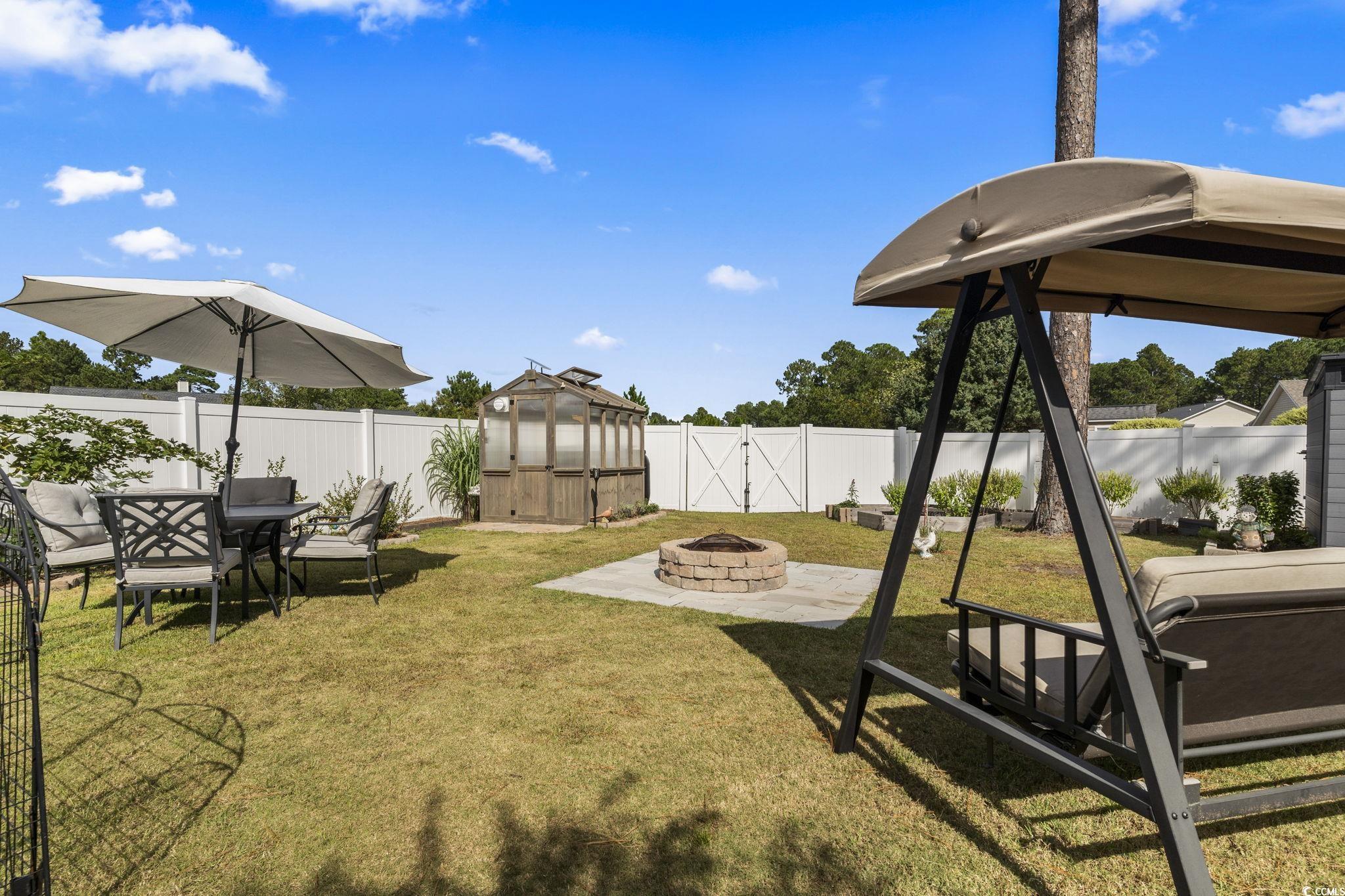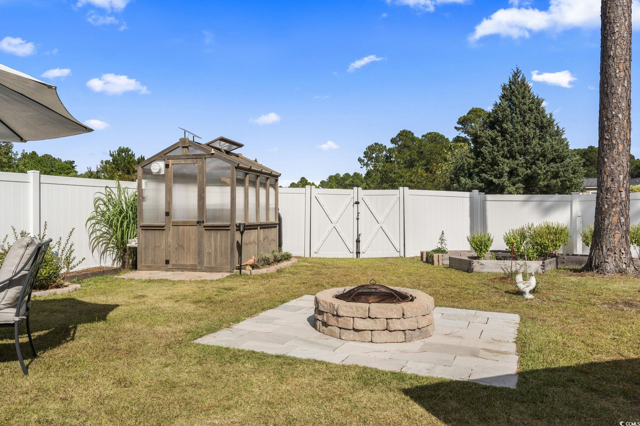 Welcome to this beautiful 3-bedroom, 2.5-bath home nestled in the highly desirable Southgate community of Carolina Forest. From the moment you arrive, this meticulously maintained property welcomes you with warmth and curb appeal. Enjoy peace of mind with recent updates, including a new water heater 2025, new carpet and roof 2023, washer and dryer 2023 and lot's of storage. Love the outdoors? This backyard is your personal oasis. Step outside to find a greenhouse, storage shed, firepit, and raised garden beds perfect for gardening, entertaining, or simply relaxing. Open the gate of your privacy-fenced yard to unwind by a serene pond, where you can sit and watch the ducks. Located just minutes from top-rated schools, shopping, dining, and only a few miles from the beach, this home offers the perfect blend of comfort and convenience. There are too many extras to list. Call today to schedule your private showing and see everything this amazing home has to offer.