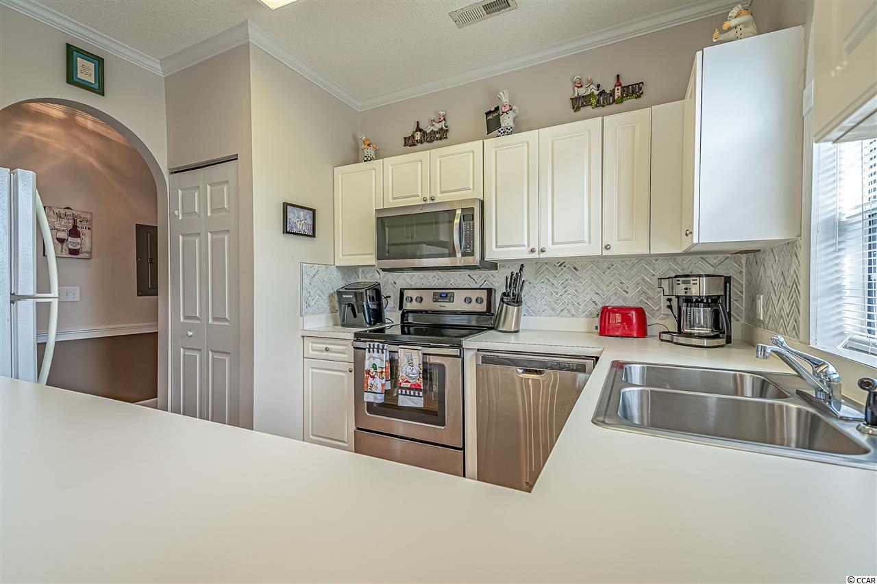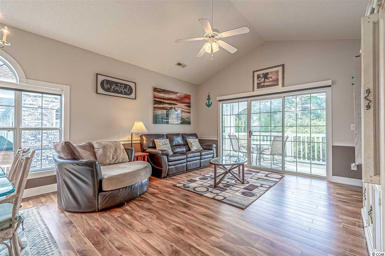 Furnished end unit at Magnolia Place. Laminate floors, carpet replaced in bedrooms 2019. Stainless appliances except refrigerator. Big balcony! Excellent location. Lots of natural light with large window with this end unit. Custom screen/shade over side window and sliding doors. Back splash in the kitchen recently installed. Third floor unit with vaulted ceilings! Make sure you see this one!!
