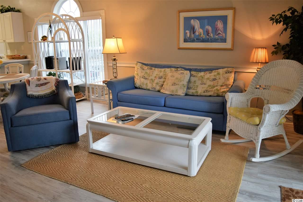 Beautiful 2 bedroom 2 bath end unit in Magnolia Place. Lots of natural light enters this unit from the kitchen window, large family room window, and rear balcony sliders. This unit is being sold furnished and is in excellent condition with new flooring. The screened in balcony overlooks a large community area with outdoor grills, picnic tables, and a beautiful pool area. The balcony can be accessed from the living room or master bedroom and it also has an outdoor storage closet. Magnolia Place is centrally located about 2 miles from the beach and very close to the popular Broadway At The Beach which has entertainment, shopping, golf, restaurants, and much more.