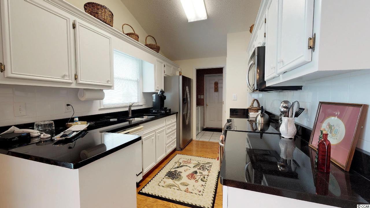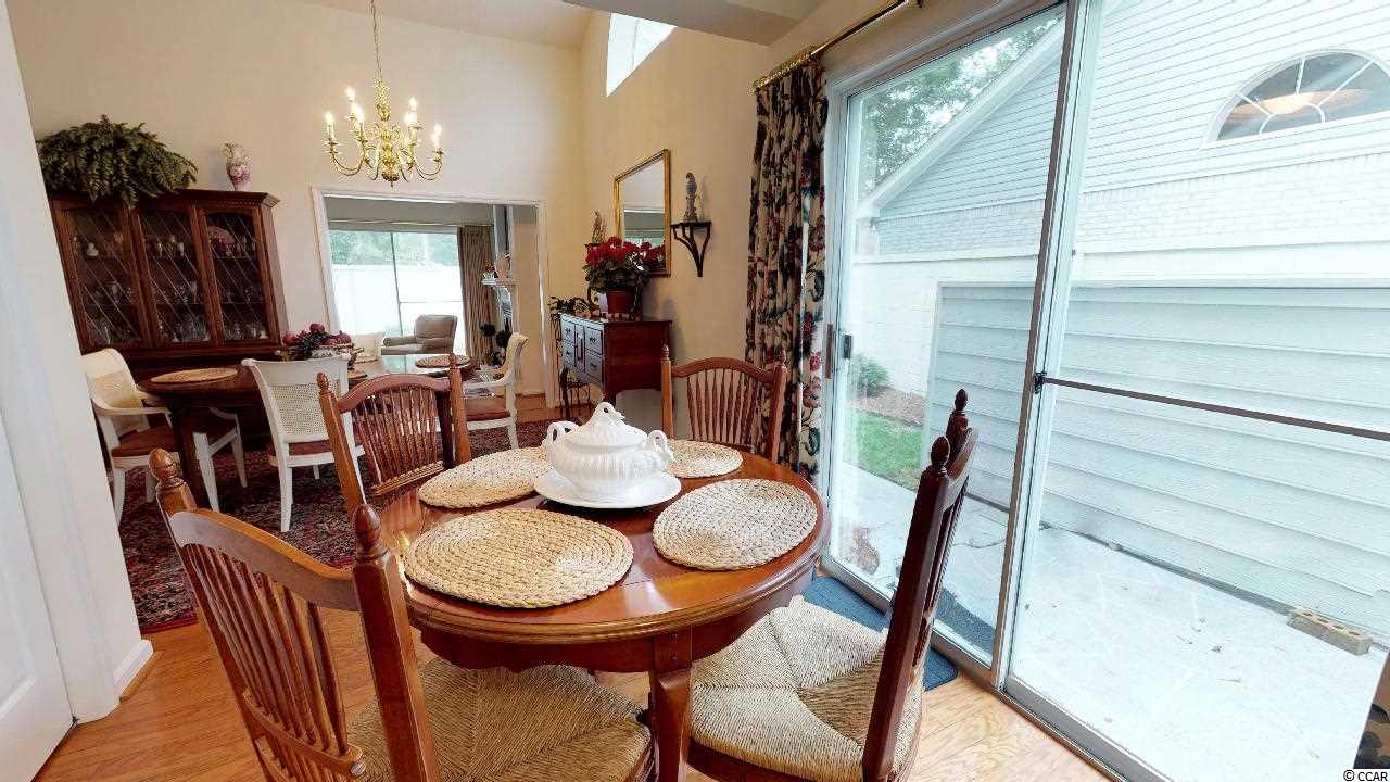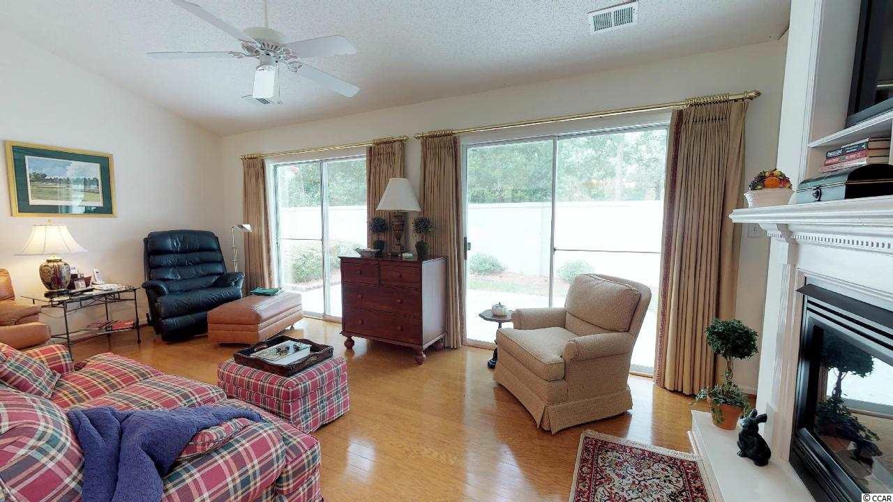Presenting this captivating 3 bedroom 2 bath home nestled in the quiet and popular Park at 48th Avenue community. This prestigious and open concept home has hardwood, tile & carpet flooring, vaulted ceilings, an abundance of natural lighting, ceiling fans, palladium windows, relaxing Carolina room with fireplace and built-ins, breakfast nook, granite counter tops, stainless steel appliances; side by side refrigerator with ice & water door dispenser, smooth flat top range, and built-in microwave, tile back splash, master bedroom with office niche, master bath with dual sinks, make-up vanity, garden tub and walk-in shower, sliding glass doors that open up to the painted flagstone patio & walkway, attached outside storage, enclosed backyard privacy wall, and a two car attached garage. This home provides you close proximity to all the attractions and amenities of Myrtle Beach, with fine dining, wonderful world-class entertainment, fishing piers, and exciting shopping experiences on the Grand Strand. Just a short drive to medical centers, doctors offices, pharmacies, banks, post offices, and grocery stores. Check out our state of the art 4-D Virtual Tour.