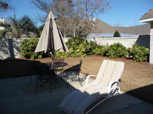 Awesome location in central Myrtle Beach only about 3/4s of a mile to the beach in a peaceful community. This brick home has an open floor plan. The dine-in kitchen boasts newer appliances, refreshed cabinets, newer counter top, tile, back splash, desk and pantry. The family room and dining room are open for entertaining with high ceilings and tons of natural light. The family room, master bedroom and second bedroom all open to a large patio and walled back yard ideal for pets, hot tub, or outside living with privacy. The master bath features a jetted tub and a shower. The home sits on a corner home site and features a newer roof. There is also a large community pool. Low utilities as well.
