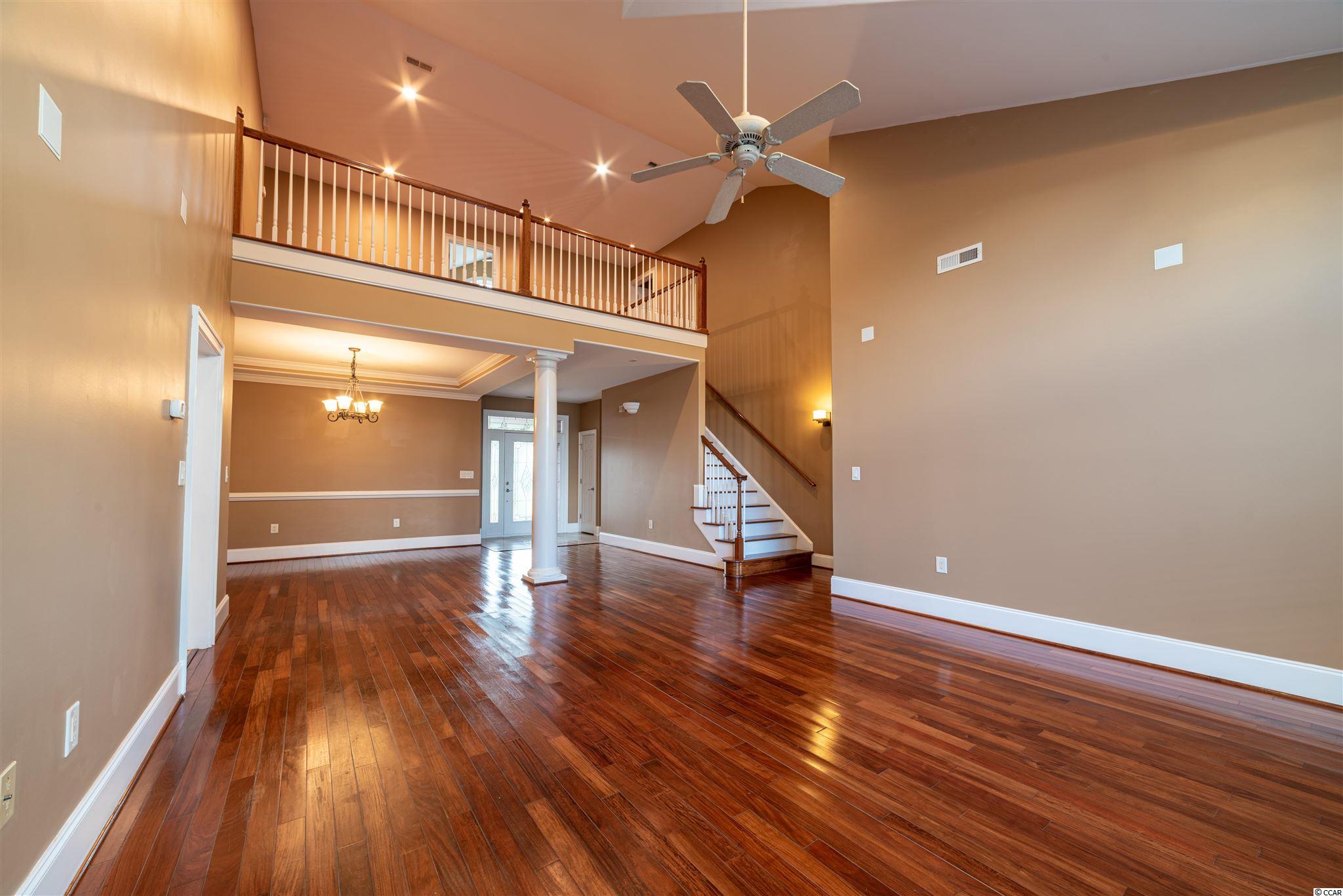 This meticulously cared for and upgraded 5-bedroom, 3-bath home with an additional 12x21 bonus/media room is truly a must see. Arched and custom windows provide the nuance of natural lighting throughout the home. The warm glow of wood flooring, stunning stair well, and the great room fireplace give the home a feeling of elegance and coziness. The bright and open kitchen boasts warm wood cabinetry, granite countertops, ample counter space and stainless-steel appliances. The first floor Master bedroom suite features trey ceiling, walk-in closet, and a large master bathroom with double vanity sinks, custom tiled walk-in shower and whirlpool tub. The landscaped backyard with lake views features two seperate outdoor spaces. A screened in porch with hot tub located off of the master bedroom and a covered patio off of the kitchen - perfect for relaxation or entertaining. Located in the desired Waterford Plantation golf course community, call to schedule yourshowing today!