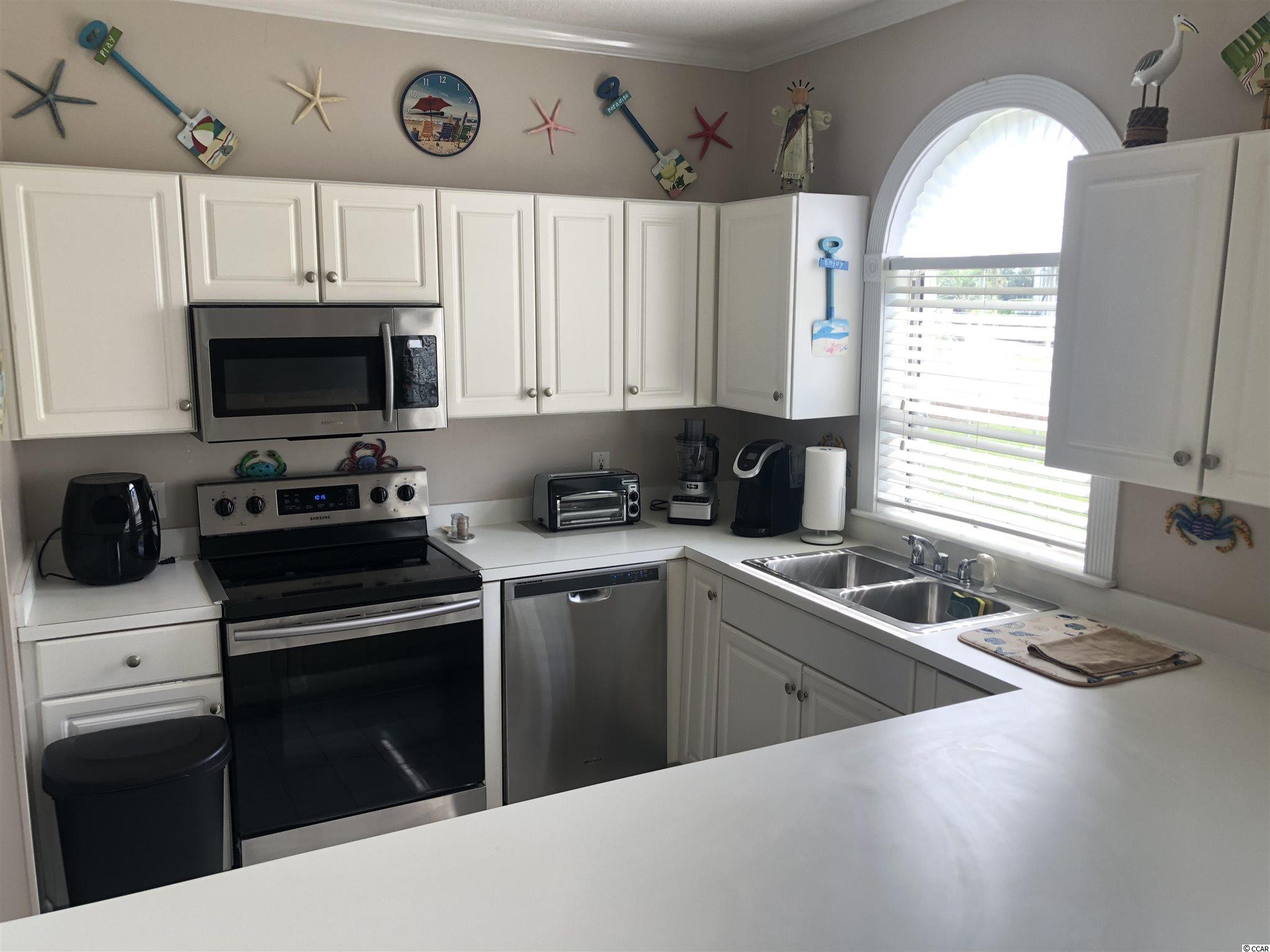 Investor alert! Vacation home alert! Look at this lovely FURNISHED 1st floor 2 bedroom 2 bath end unit condo with a screened porch in Myrtlewood! No stairs here.. just walk straight into your condo and you can see the natural light and the white kitchen with mostly stainless steel appliances. From the kitchen you are overlooking the living room and dining space which is plenty big enough for a sectional and a recliner to kick back and relax after a long beach day. The bedrooms are a good size and the bathrooms are too. The master bedroom connects to the screened porch... perfect to enjoy the weather and miss the bugs during the evening. There is a walk-in closet as well as your ensuite bath. On the way to the second bathroom and bedroom, you will see a small wet bar sink in the living room for your convenience. This condo is spacious and has easy access to Myrtle Beach's sandy shores, 5 mins from schools, 1 min from 17 bypass and easy access to 31 & 501. This central location and being in turnkey condition makes it a hard deal to pass up. Contact your agent for a showing ASAP! This one won't last long. All info is deemed accurate and not guaranteed. Buyer to verify any and all measurements and information including but not limited to schools and HOA etc.