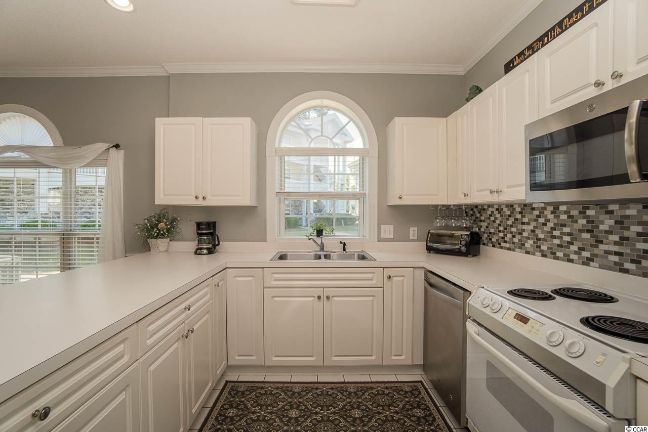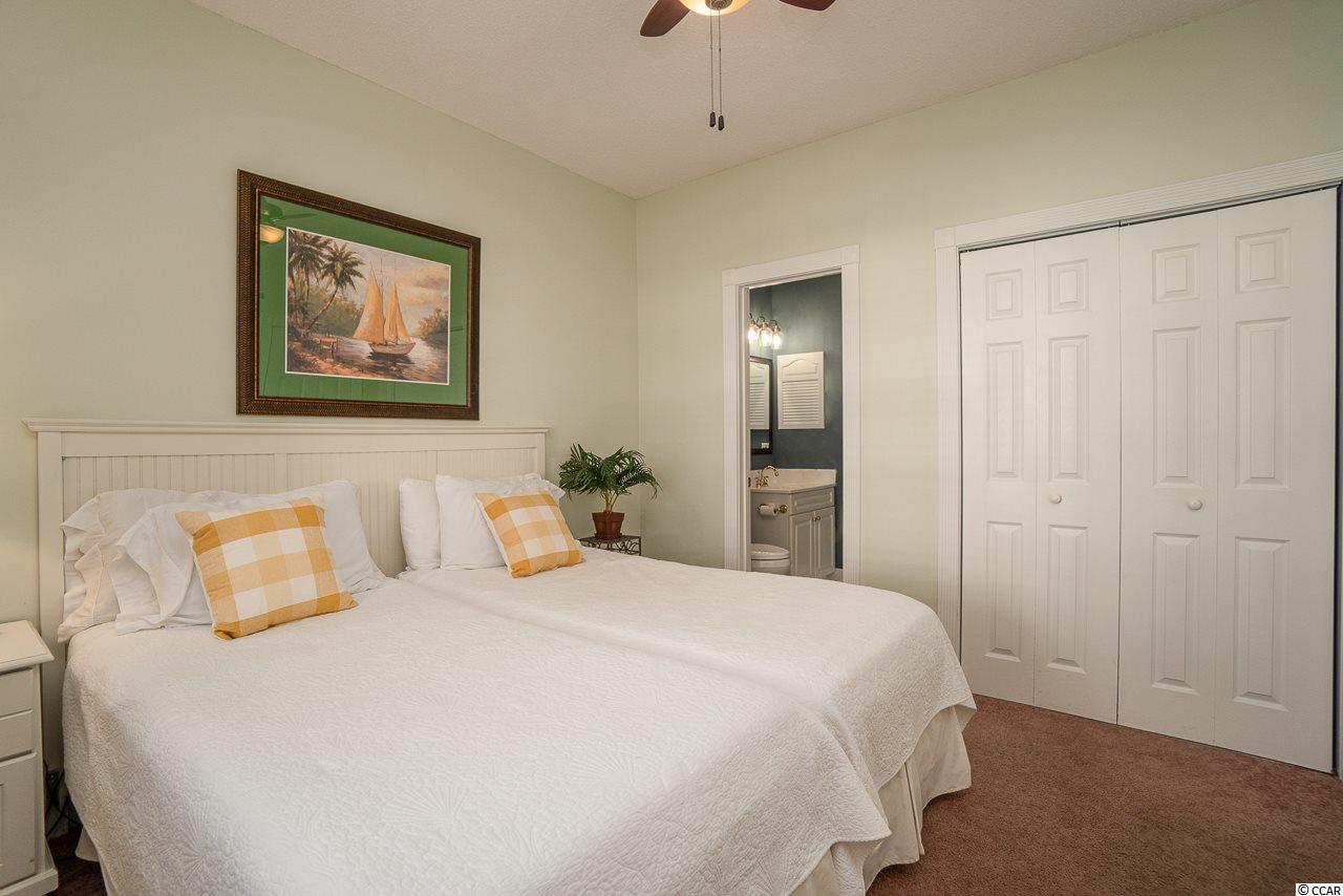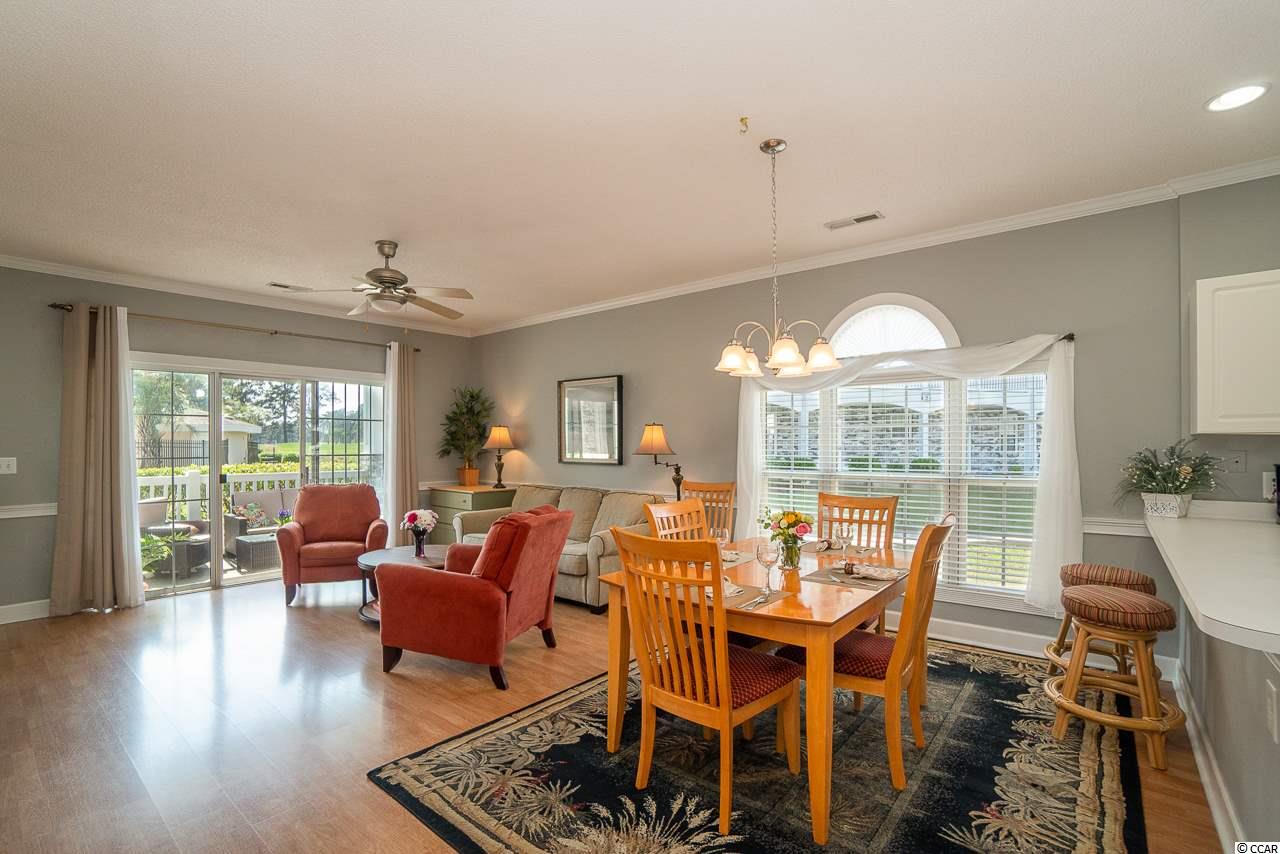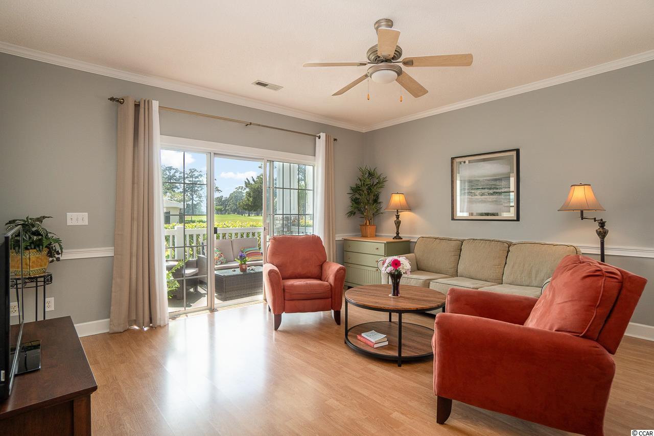 Welcome Home! That's the feeling you get as soon as you enter this beautiful first floor end unit. Neutral colors throughout give a fresh, bright designer look. Crown moldings and chair-rail add a finishing touch. 2 bedrooms each with private bath and good separation. Your own washer & dryer is conveniently located inside unit. Wood look vinyl flooring through living area, carpets in bedrooms, and tile in wet areas. As you walk outside through your sliding glass door you have a private ground level covered patio surrounded by mature shrubs overlooking the pool, golf course and amazing sunsets. 15' feet from your car to the front door eliminates having to deal with stairs or elevator.