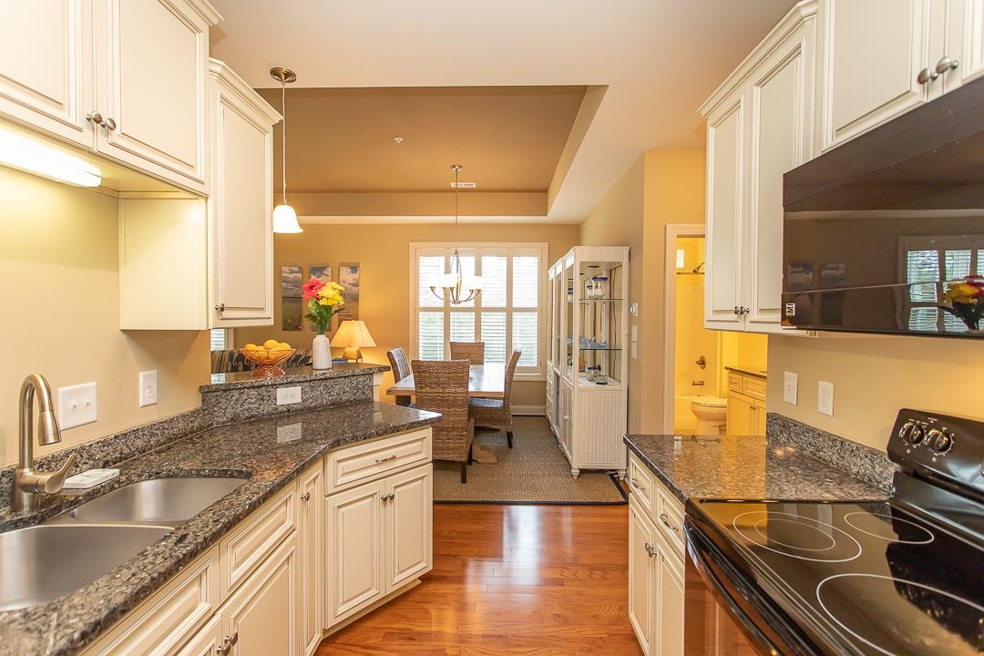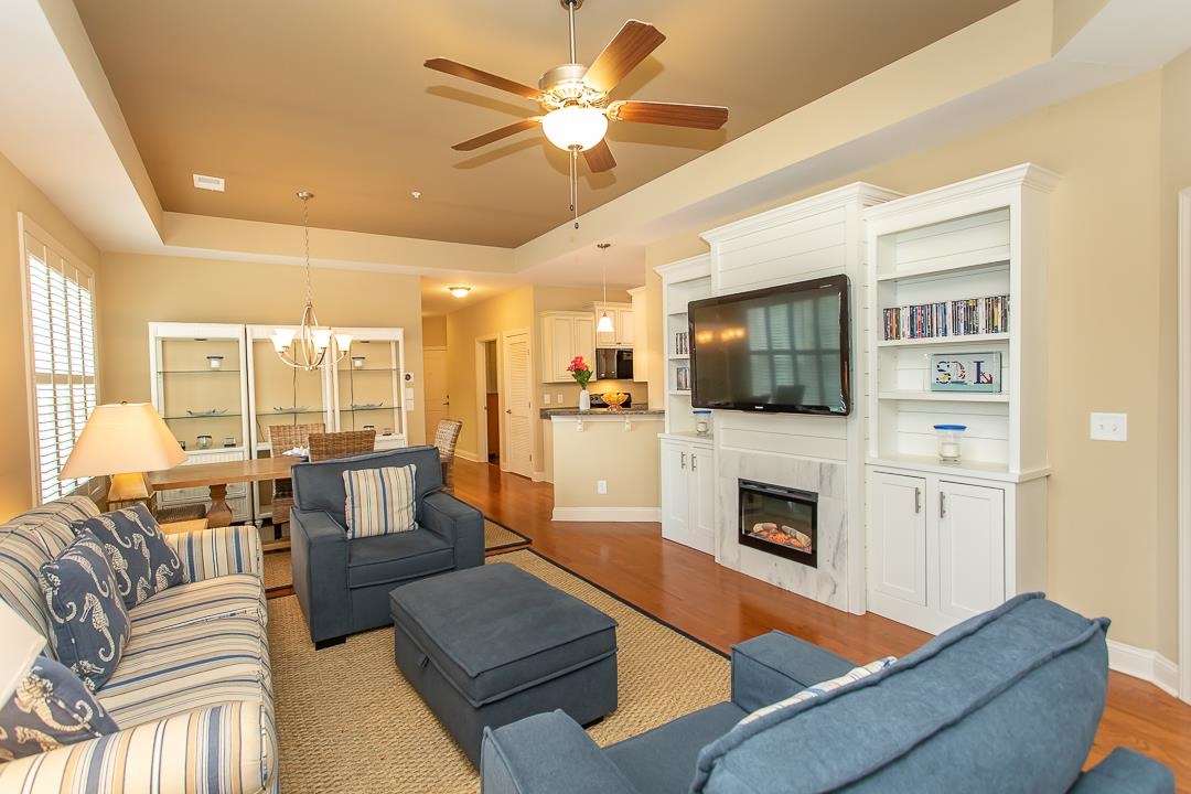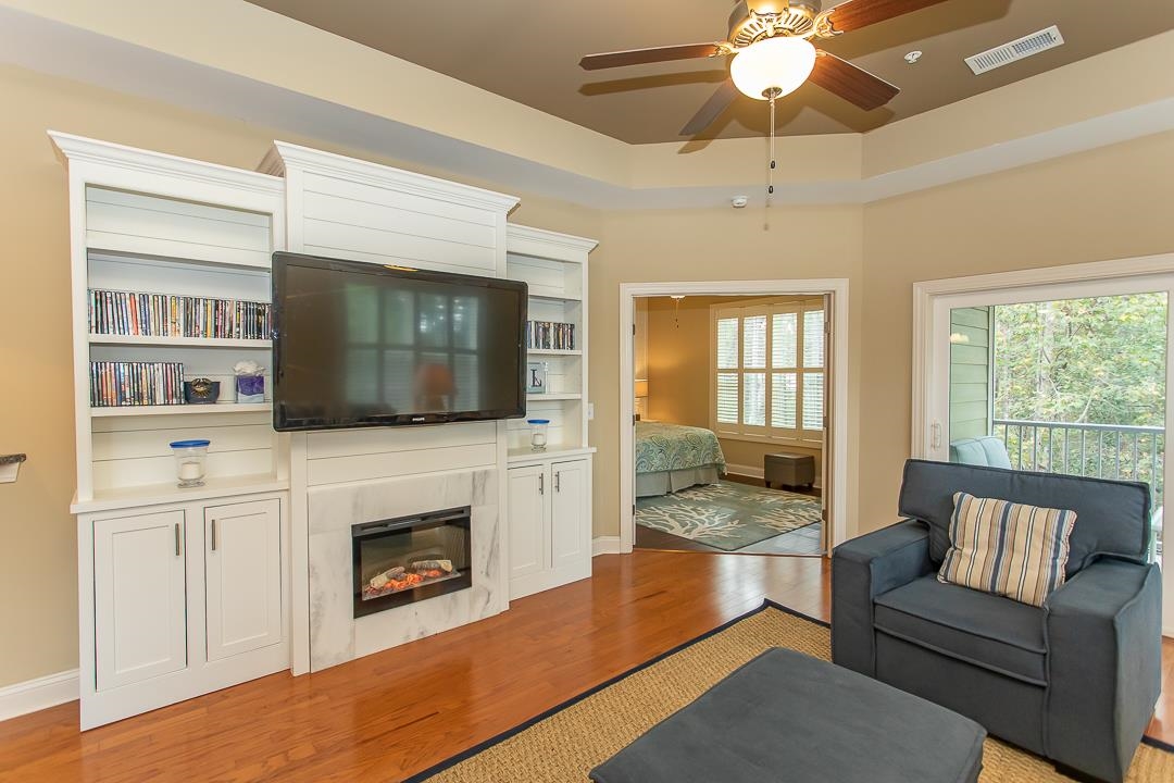 Welcome to the Village at Mingo in Pawleys Island. This is a top floor, corner unit and with a beautiful foyer entrance and hardwood floors throughout. The galley kitchen has granite countertops with Kenmore Elite appliances. Upgrades include a trey ceiling across the dining and living area, and plantation shutters in every room of the home. The family room offers an oversized custom entertainment center with an electric fireplace. A fully screened balcony overlooks a wooded area perfect for your morning coffee or afternoon reading. The large master suite has double doors with a shiplap accent wall, two walk-in closets, and an ensuite bath with large vanity. The laundry room has a Kenmore Elite washer & dryer. More storage is just down the corridor from the unit in a private locked storage room. The building has an elevator and Hardie Plank siding, and a community pool with a grilling area. The home also has a brand-new Nest Thermostat to help control your energy bill. The HOA includes exterior pest control, water and sewer, landscaping, pool, elevator and building maintenance, along with building insurance. This property is walking distance to multiple dining establishments, close to the public library and a short ride to the beach. All measurements and square footage are approximate and not guaranteed. Buyers should verify.