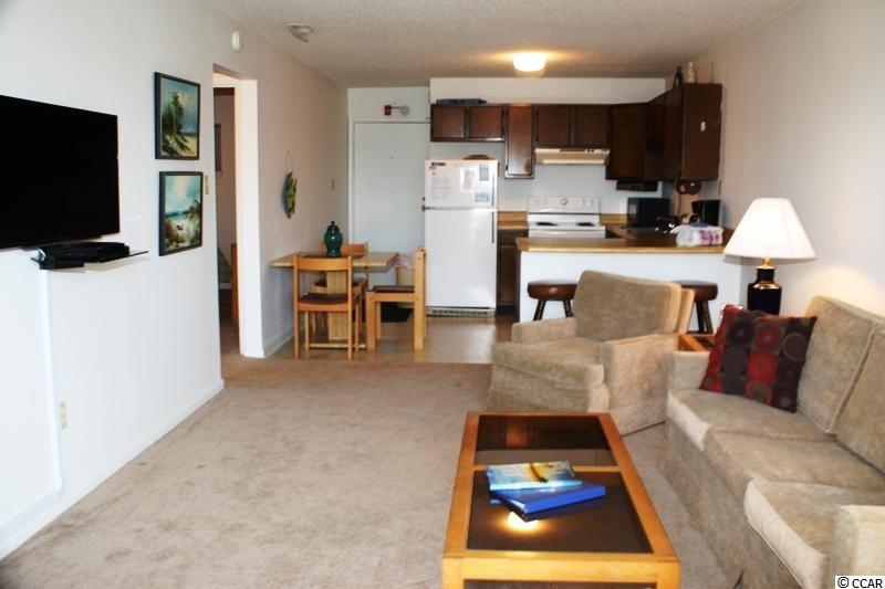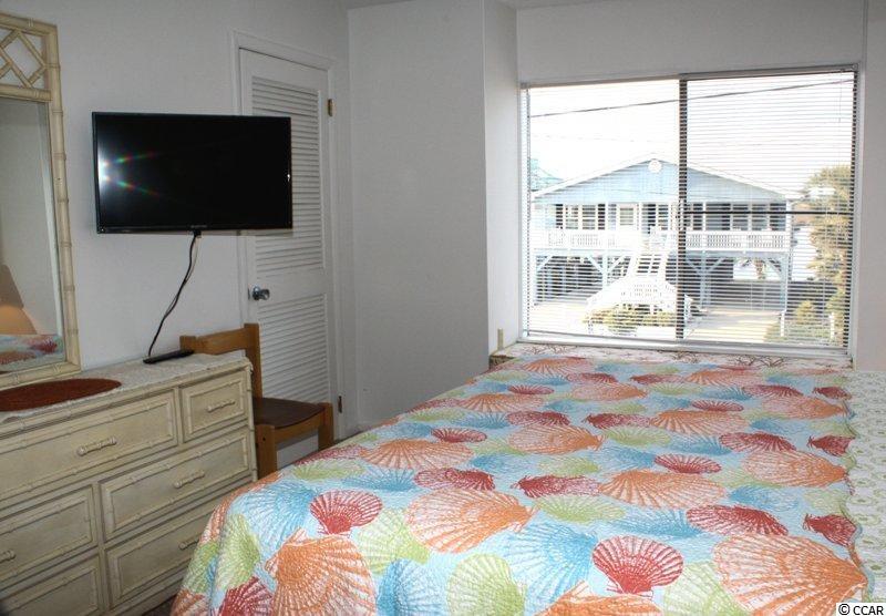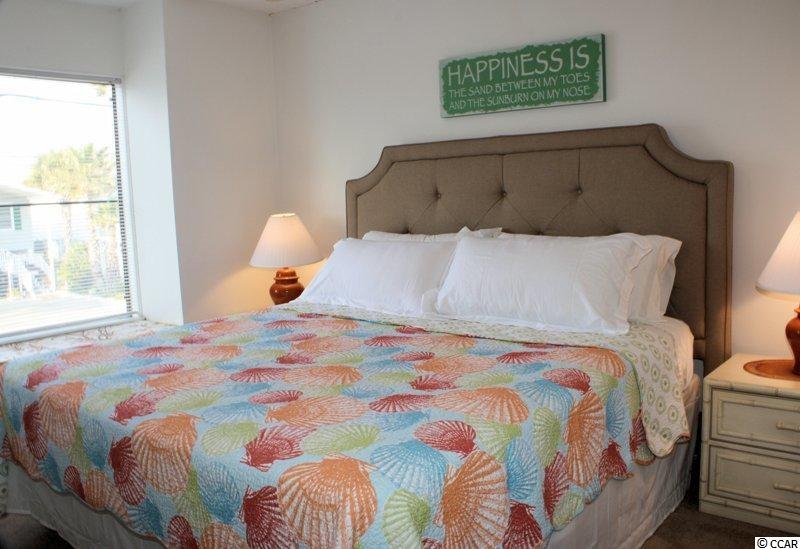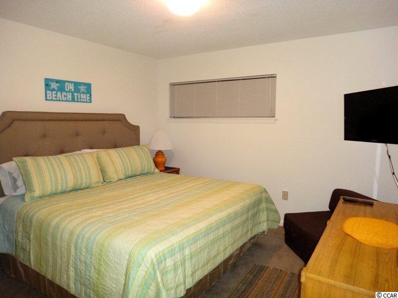 Located in quite Cherry Grove section of North Myrtle Beach. Short walk across the street to the Ocean! Swimming pool, poolside sundeck, a charcoal grill for cookouts, and a coin-op laundry facility. Conveniently located to the Heritage Preserve, Hog Inlet Boat ramp and Salt Marshes with walking paths. Cherry Grove Pier for dining, fishing and bird watching. 2 bedrooms. King in each. Sleeper sofa. 1 full bath. 1/2 bath. 2nd row. No view of ocean. Flat screen TV in each bedroom and living room. Master bedroom has 1/2 bath. Full bath in hallway. Pool On-site laundry facility. Don't miss out on this great BUY!