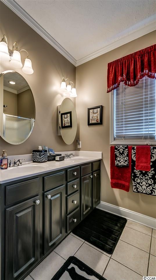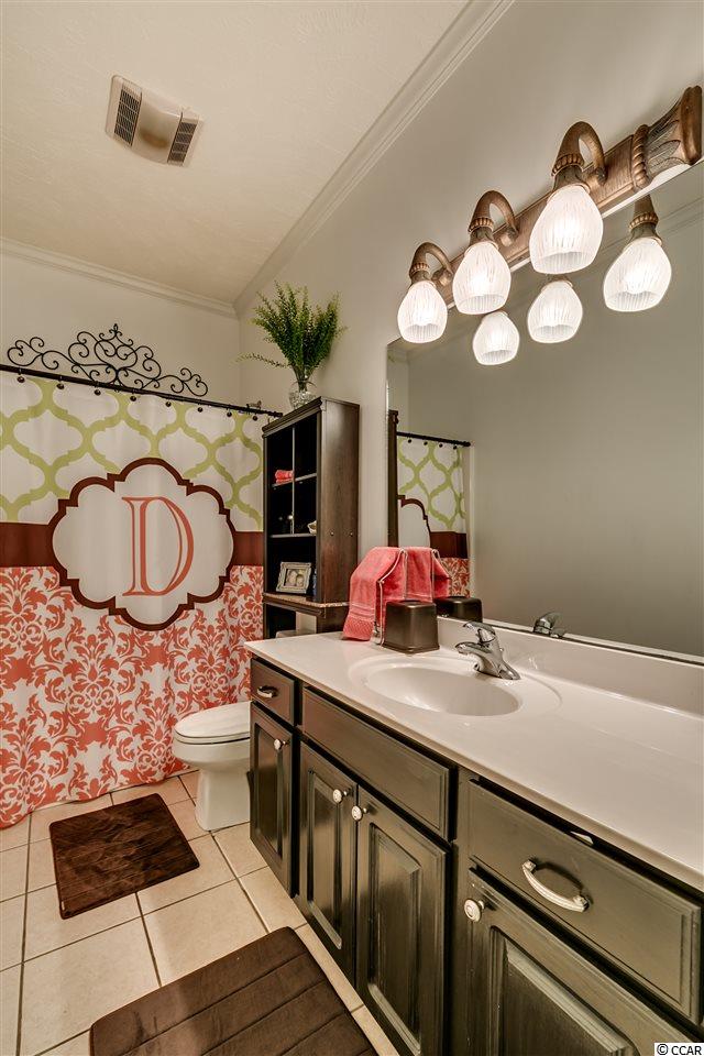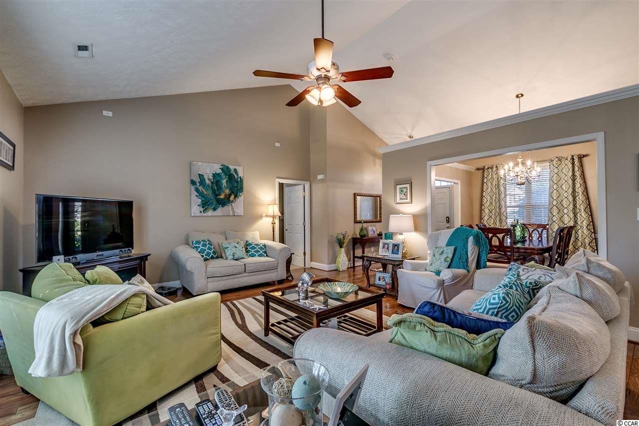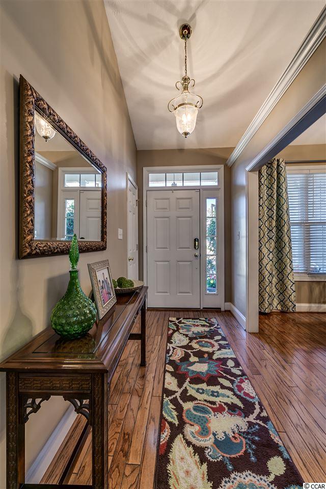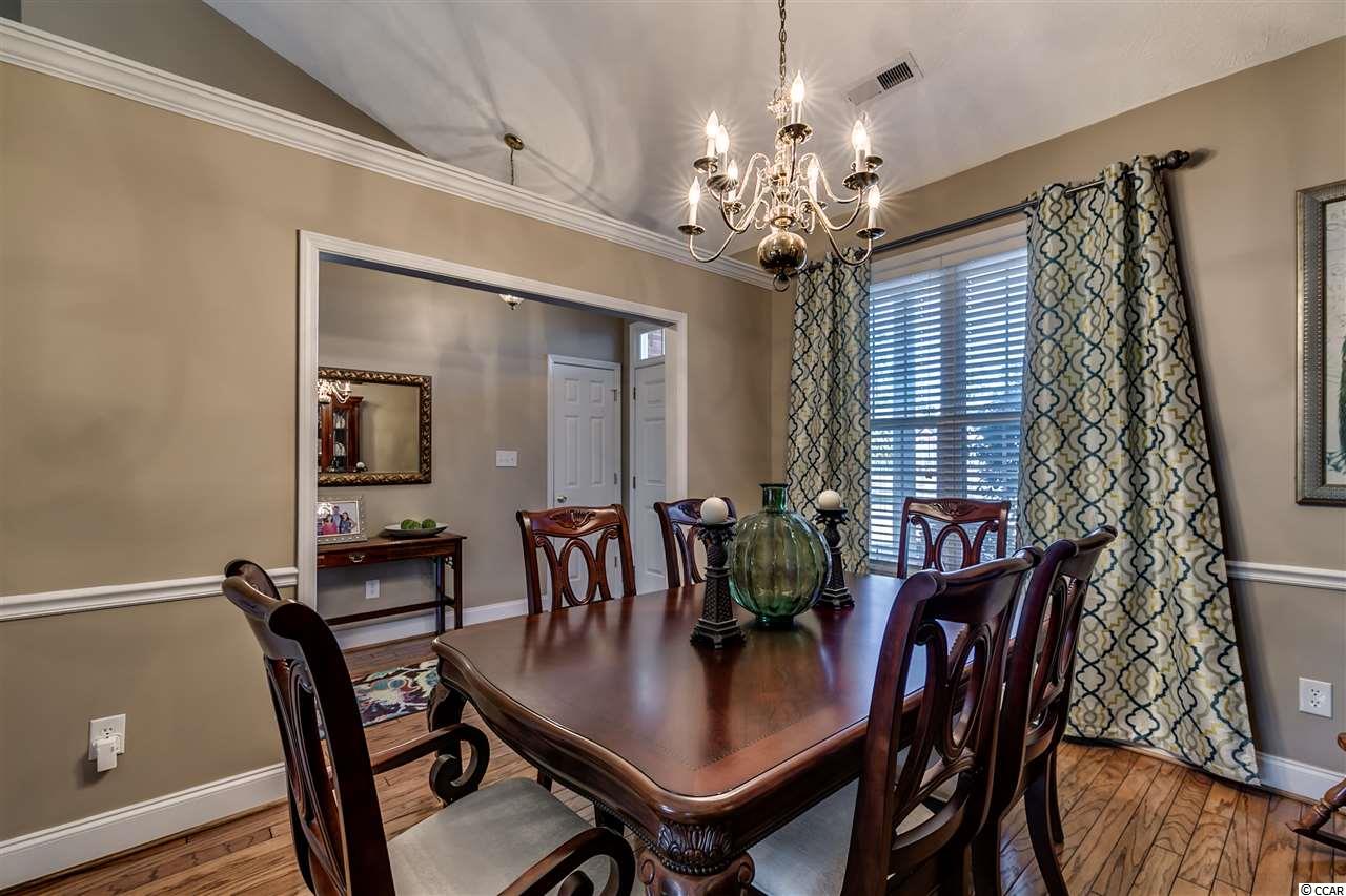 This 4BR/2BA home located in the super desirable community of Waterford Plantation within Carolina Forest is in excellent condition and ready for it's new owner. This open floor plan has many features such as hardwood floors, large cabinets, crown molding throughout almost the entire home, formal dining room, spacious great/living room with cathedral ceilings, and split bedroom plan, a large bonus room(fourth bedroom) over the garage, beautiful landscaping, irrigation system, covered front porch, and a fenced in back yard that does not back up to another home with a private patio. Enjoy a large kitchen with an island, and breakfast nook for your whole family. The spacious master suite and bath features a tray ceiling, shower, double sinks, whirlpool tub, and two large walk-in closets. Both guest bedrooms are separate from the rest of the home, one with direct access into the guest bath. With access from the bonus room, enjoy an easy walk-in attic with tons of storage. Waterford Plantation offers award winning schools, a fantastic recreation area and pool for it's residents, and a quiet community feel.