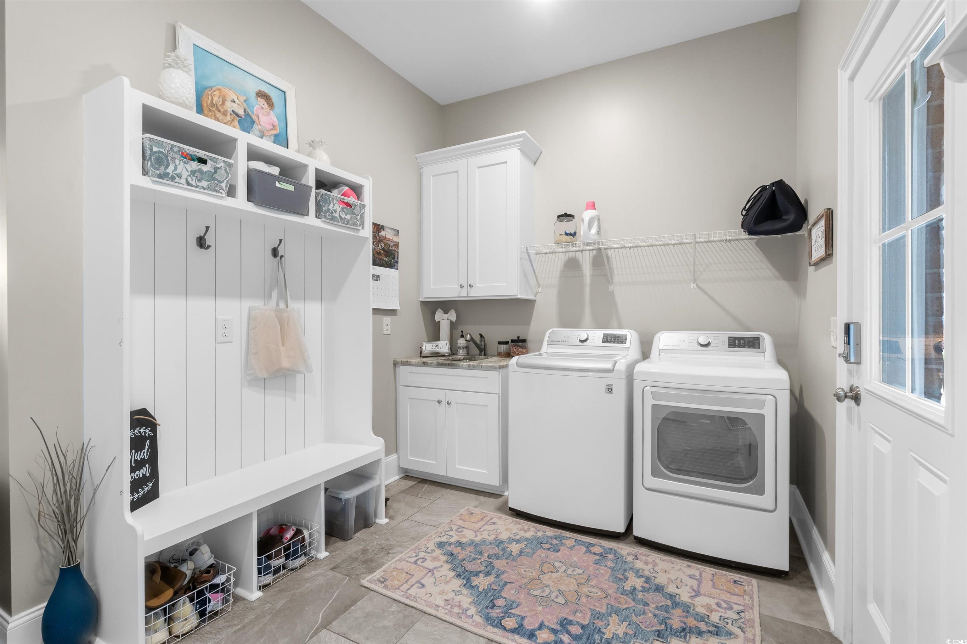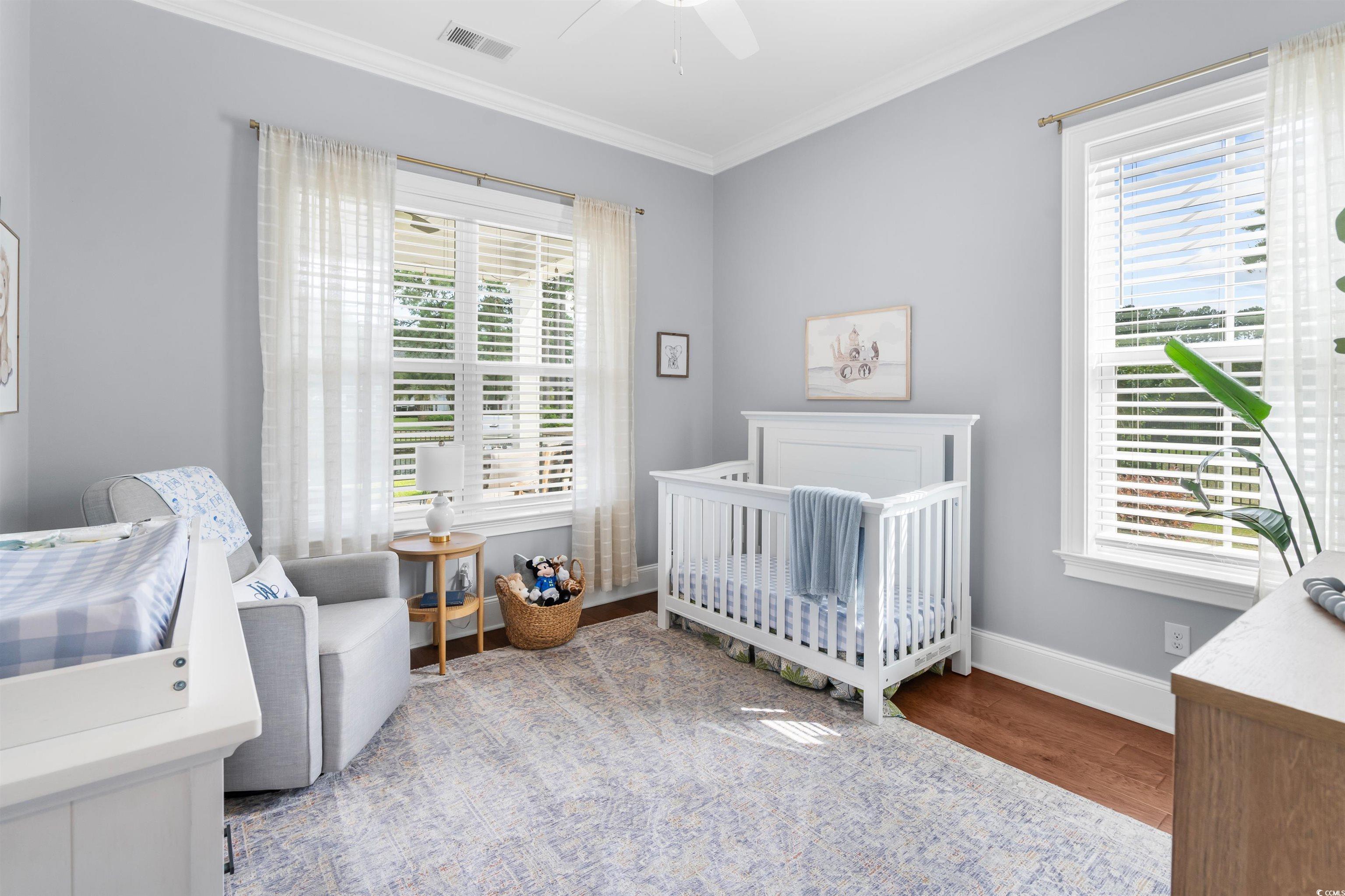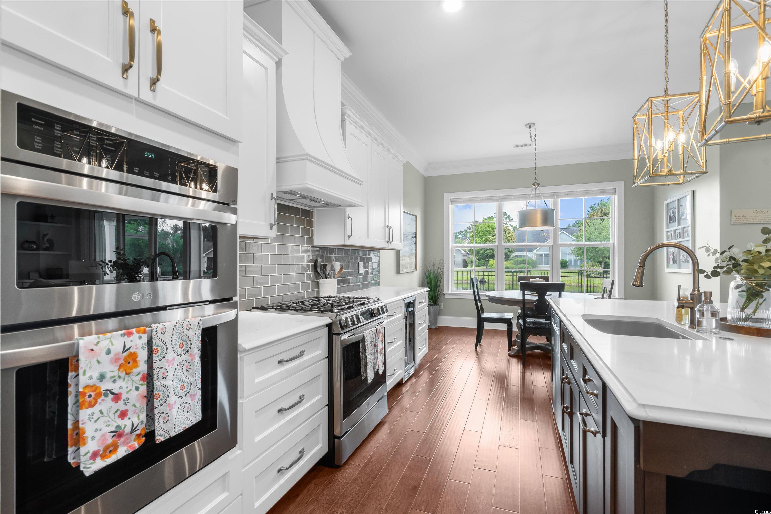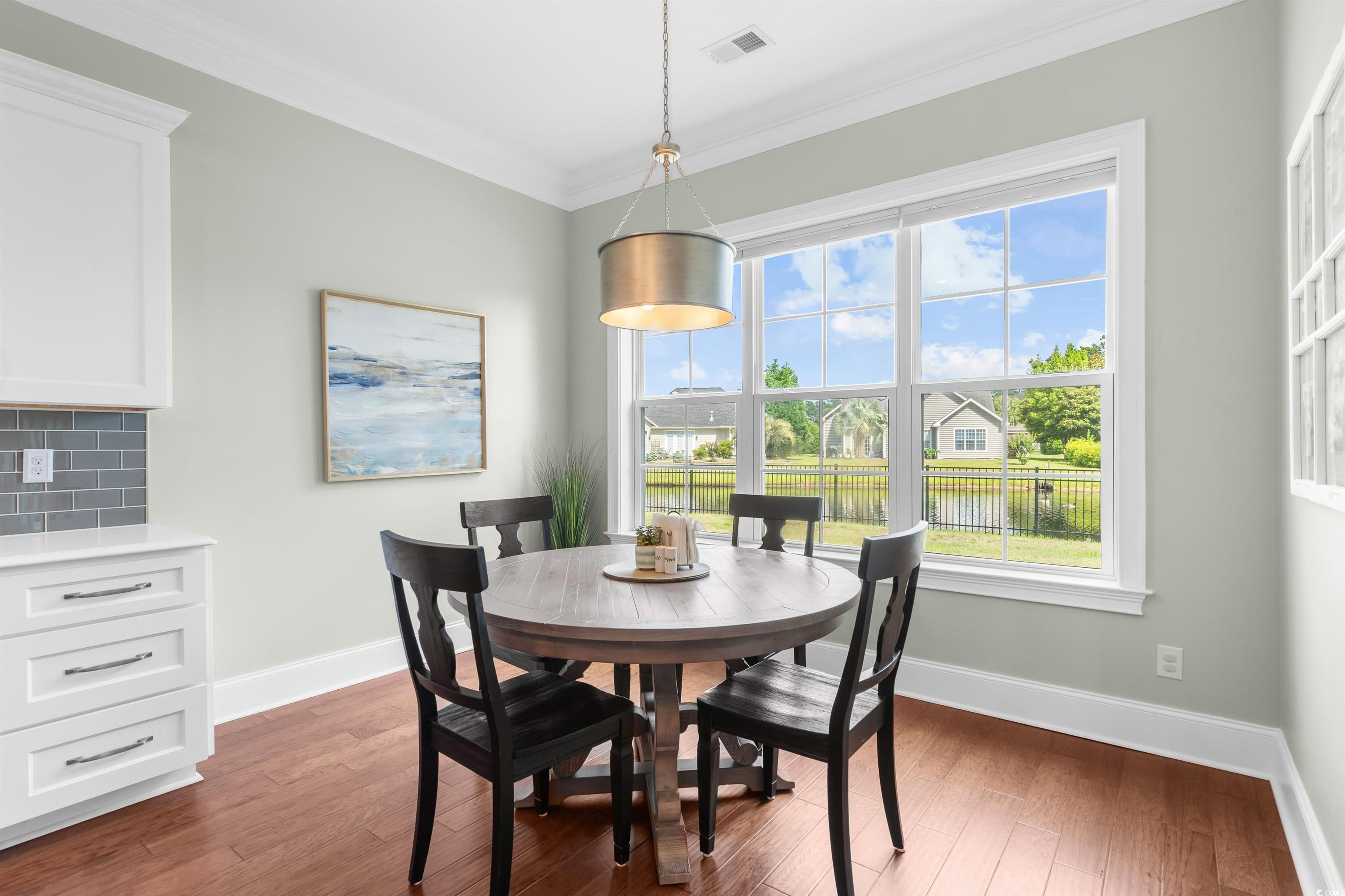 You cant ignore the curb appeal of this one of a kind CUSTOM built better than new home in Waterford Plantation. Home is on a cul-de-sac featuring spacious brick front covered porch, carriage style side car garage, professionally landscaped yard with river rock and slate borders along with an abundance of trees and shrubs. The driveway allows for ample parking off the street and features tabby concrete driveway adding Southern charm and character to this lovely home. This immaculate open floor plan has many details to list with wood floors throughout, crown molding, wide base moldings, coffered ceiling in living room, brick fireplace, built in wall units with storage, a massive attic for more storage, 9ft. sliding glass doors leading to screened in Carolina Room with a gorgeous slate floor leading out to the covered patio with pavers, summer kitchen, fenced in backyard overlooking the lake in the backyard. The interior kitchen is a chefs dream featuring large dining area, white cabinets, inviting large center island in a warm gray/brown cabinet featuring additional storage and accommodates seating for 4, premium upgraded quartz countertops, subway tile backsplash, stainless steel gas burning stove and wall oven, pantry, designer lighting that elevate the kitchen to another level to make this kitchen a dream to entertain and enjoy with family and friends. Master Suite with tray ceiling, crown molding, slider doors to walk out and enjoy coffee on additional back patio overlooking lake, double sink vanities, water closet, large tile shower, walk in custom designed closet. Two additional 1st floor bedrooms feature wood floors, crown molding and ceiling fans. Hall bathroom features a large tub and tiled shower walls and floor. The laundry room/mud room can be accessed through a second entry door on the front porch leading to the garage. Some features include porcelain tile floor, sink with granite countertops, washer and dryer, large closet and a built-in stop and drop rack for storing and organization. From this room is the entrance door that leads upstairs to a large bonus room featuring a full size bathroom. Also upstairs you will be amazed at the EXTRA LARGE storage rooms featuring shelves allowing for personal items to be easily accessible in the home at any time. The painted oversized two car garage has epoxy painted floors, painted walls, trimmed casement windows, additional large storage closet and additional cabinets. You will appreciate the convenient location of Waterford Plantation to the beach, shopping, hospitals, dining, golf course and airport. Waterford Plantation is a beautiful community with plenty of mature trees, sidewalks, amenity center, pool, gym, playground, tennis court, pickleball, nature trail and it backs up to the Man O War and Wizard golf courses.