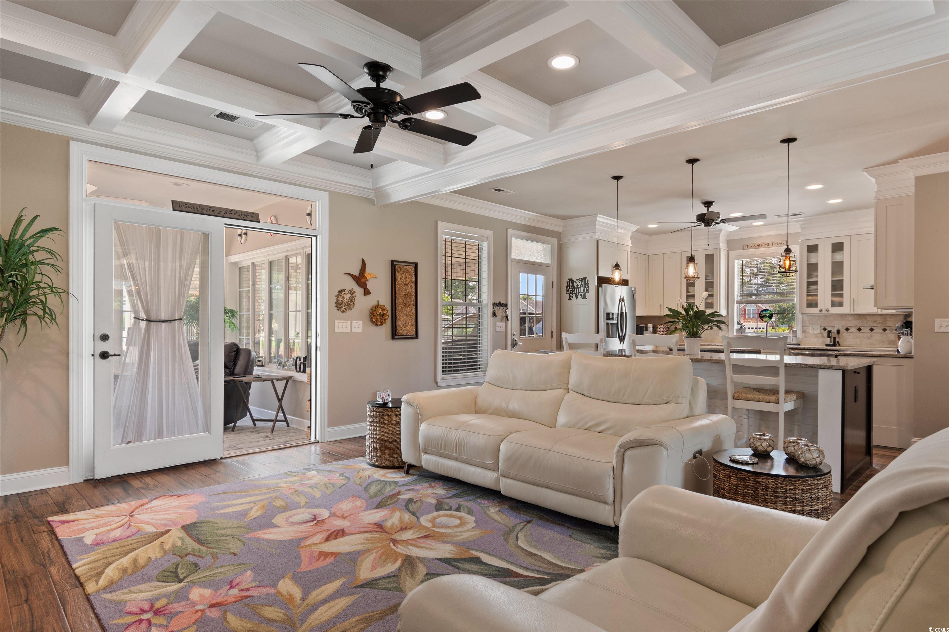 Welcome to 4826 Keet Ct., a stunning 3-bedroom, 3-bath all-brick home located on the 17th hole of the Man O War golf course, in the highly desirable Waterford Plantation community of Myrtle Beach. Situated on more than 1/2 an acre, this property stands out for its expansive lot sizeoffering extra space, privacy, and potential in an already incredible location. This luxurious residence offers exceptional curb appeal and refined interior finishes, including crown molding and recessed lighting throughout. Step inside to find a bright and open main living space that flows seamlessly into a formal dining roomperfect for hosting gatherings. The kitchen is a chefs dream, featuring a large breakfast bar, sleek stainless steel appliances, and beautiful cabinetry, all designed with both function and style in mind. The spacious master suite is a true retreat, boasting a massive walk-in closet and a spa-like ensuite bathroom with a large tiled walk-in shower and dual sink vanity. Two additional bedrooms and bathrooms are equally impressive, with elegant tilework and thoughtful design throughout. A sunny Carolina room provides the perfect place to unwind or enjoy a morning coffee while overlooking your private outdoor paradise. The true showstopper of this home is the backyard oasis. The beautifully landscaped yard surrounds a sparkling private inground pool, ideal for hot summer days or evening entertaining. With over half an acre of land, youll appreciate the added space and freedomsomething rarely found in such a desirable golf course community. Whether youre lounging poolside, hosting a BBQ, or simply soaking in the peaceful ambiance, this space is your personal slice of paradise. The backyard also includes an attached storage area and covered carport, perfect for keeping all your outdoor essentials organized and easily accessible. Waterford Plantation offers top-tier amenities, including a community pool, tennis courts, and basketball courts, all nestled within a tranquil, tree-lined neighborhood. Between the large lot, prime community, and ideal Myrtle Beach location, this home combines luxury, comfort, and convenience. Dont miss your opportunity to own this exceptional home in one of Myrtle Beachs most sought-after communities. Schedule your private showing today!
