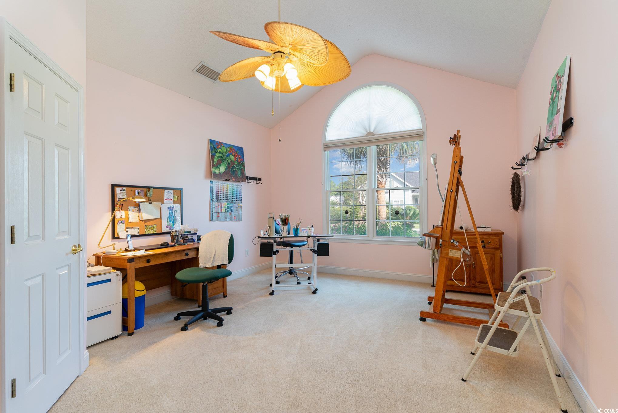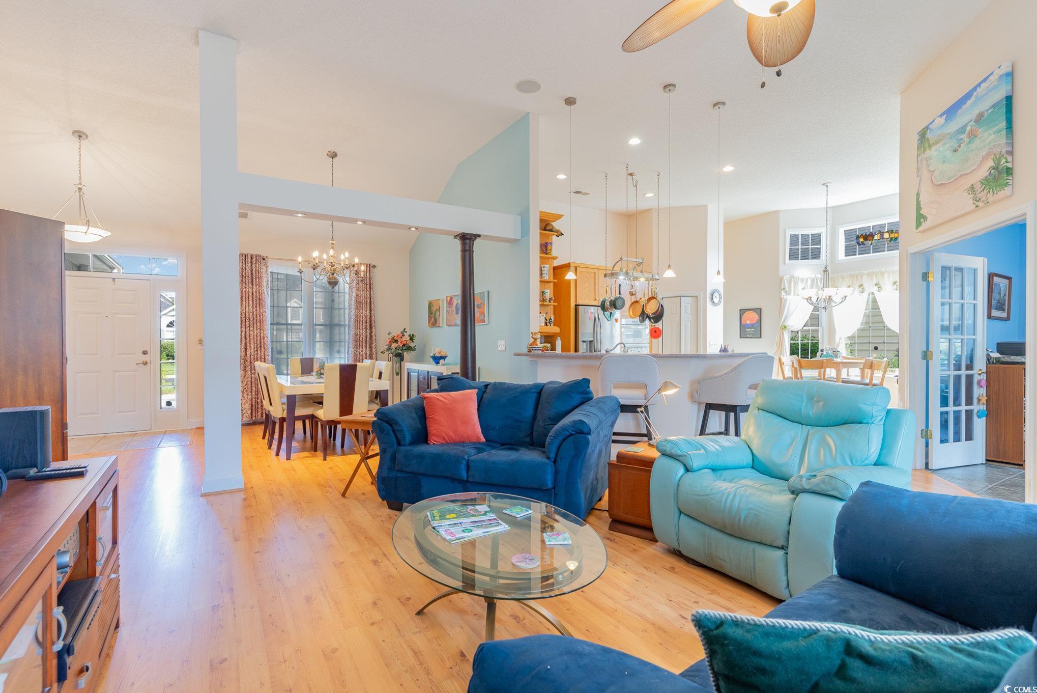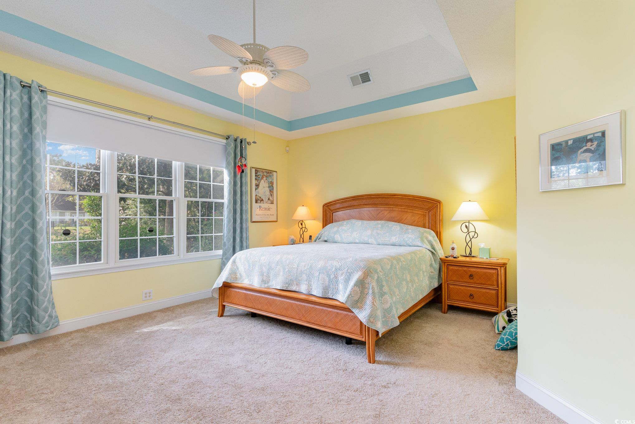 Stunning 3-bedroom, 3-bath home is nestled in the prestigious Waterford Plantation community. This beautifully crafted home offers serene lake views from the living room and the first-floor master suite, along with a meticulously landscaped backyard that adds to its charm. The home has been thoughtfully updated with modern upgrades, including LeafGuard gutter protection (2024), a stainless steel refrigerator (2024), new kitchen flooring (2023), and a new oven (2023). Inside, you'll find soaring vaulted ceilings, elegant lighting, ceiling fans throughout, and a kitchen designed for the home chef. The first-floor master suite offers privacy and comfort, while an upstairs guest bedroom provides a perfect space for visitors or extended stays. Whether you're looking for a permanent residence, vacation retreat, or investment property, this home offers comfort, convenience, and lasting value. Waterford Plantation residents enjoy access to fantastic amenities, including a swimming pool, hot tub, fitness center, tennis and bocce courtsall with low HOA fees. Just minutes from top-rated golf courses, shopping, dining, entertainment, and the beautiful Atlantic shoreline.