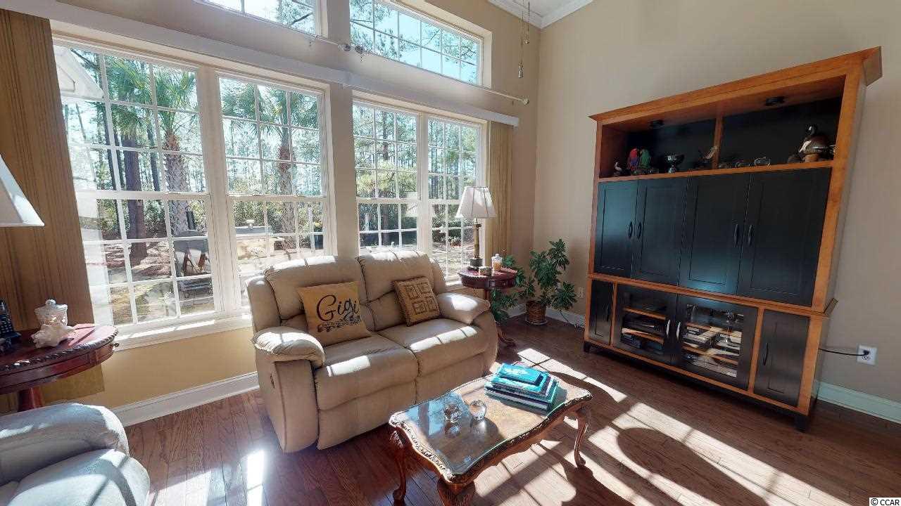 Enjoy the incredible location and peaceful living of this enchanting 3 bedroom 2 bathroom home. Magnificent floor plan and luxurious upgrades blend perfectly together to create a warm, Welcome Home environment. Spacious open floor plan with 9ft ceilings is perfect for entertaining friends and family. Home boasts handsome Tongue & Grove hardwood flooring, crown moulding, an excellent split bedroom floor plan, a delightful Carolina room with fireplace, and a 2-car side load attached garage. The elegant chef's kitchen offers stainless steel appliances, side by side refrigerator with ice & water door dispenser, smooth flat cook top with chimney style hood, sophisticated tile countertops, beautifully tiled floor, upgraded Dove Tail Self Closing kitchen cabinets, breakfast bar & nook, kitchen pantry, and a practical kitchen island. Master bedroom retreat offers double door entryway, large walk in closet, private access to the master bath featuring single sink vanity, enclosed step-in shower, garden tub and a comfort station. This home is completed with two additional bedrooms, a full guest bath, and a laundry room. You will love spending afternoons enjoying the Carolina breeze from the comfort of your back yard with tranquil lake views. Waterford Plantation offers a community pool as well as a tennis & basketball courts. This home affords you easy access to the beach and golfing along with all of the other activities and happenings in Myrtle Beach including fun eateries, award winning off-Broadway shows, public fishing piers, and intriguing shopping adventures along the Grand Strand. Conveniently located to your everyday needs, including grocery stores, banks, post offices, medical centers, doctors offices, and pharmacies. Check out our state of the art 3-D Virtual Tour.