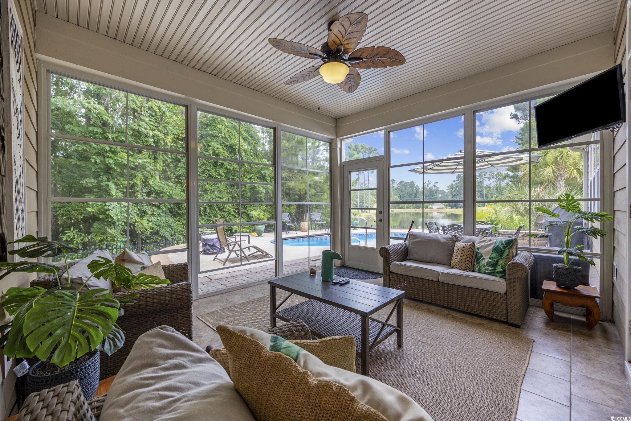Welcome to your private oasis! This stunning home is nestled on a quiet cul-de-sac in a peaceful neighborhood. The moment you walk in the door you feel at home; luxury vinyl planking throughout; quartz countertops in the kitchen and baths. The porch was enclosed with easy breeze windows AND your own private retreat outdoor space with a saltwater pool, woods, water and golf course view is incredible. This home has a whole house generator, plantation shutters, and for your comfort the pool has a heater/chiller! Nothing needed or to do in this home; just simply pack your bags and call this home yours!