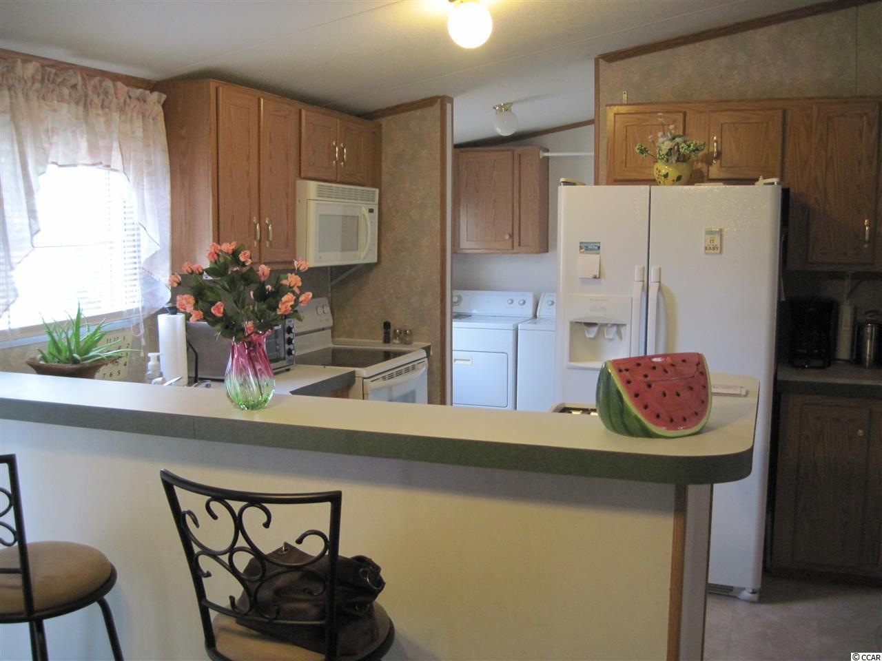 2003 Oxford, 3 BR 2 BA manufactured home in Captain's Cove, a quiet community for folks 55 & older, located in Murrells Inlet, approx. 15 miles South of Myrtle Beach, SC. Community has a clubhouse & pool, and lots of activities for residents who wish to participate. Near Murrells Inlet's famous sound front restaurants & close to Huntington Beach (Oceanfront) State Park & beautiful Brookgreen Gardens. Also near lots of golf courses & many other types of entertainment. Only minutes from a modern hospital & doctors' offices. This is a well kept home in a great location. It has a 10x16, professionally built, attached sun room, plus a small deck in back. It is a split bed room plan with bedrooms & baths at each end of home, allowing for privacy when you have guests. It has a breakfast bar, and a separate formal dining room. It's being sold with kitchen appliances, washer & dryer, and o/s storage building. This is a beautiful, above average home, actually one of the newer homes in the community, one you should definitely see.