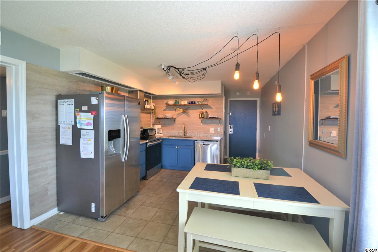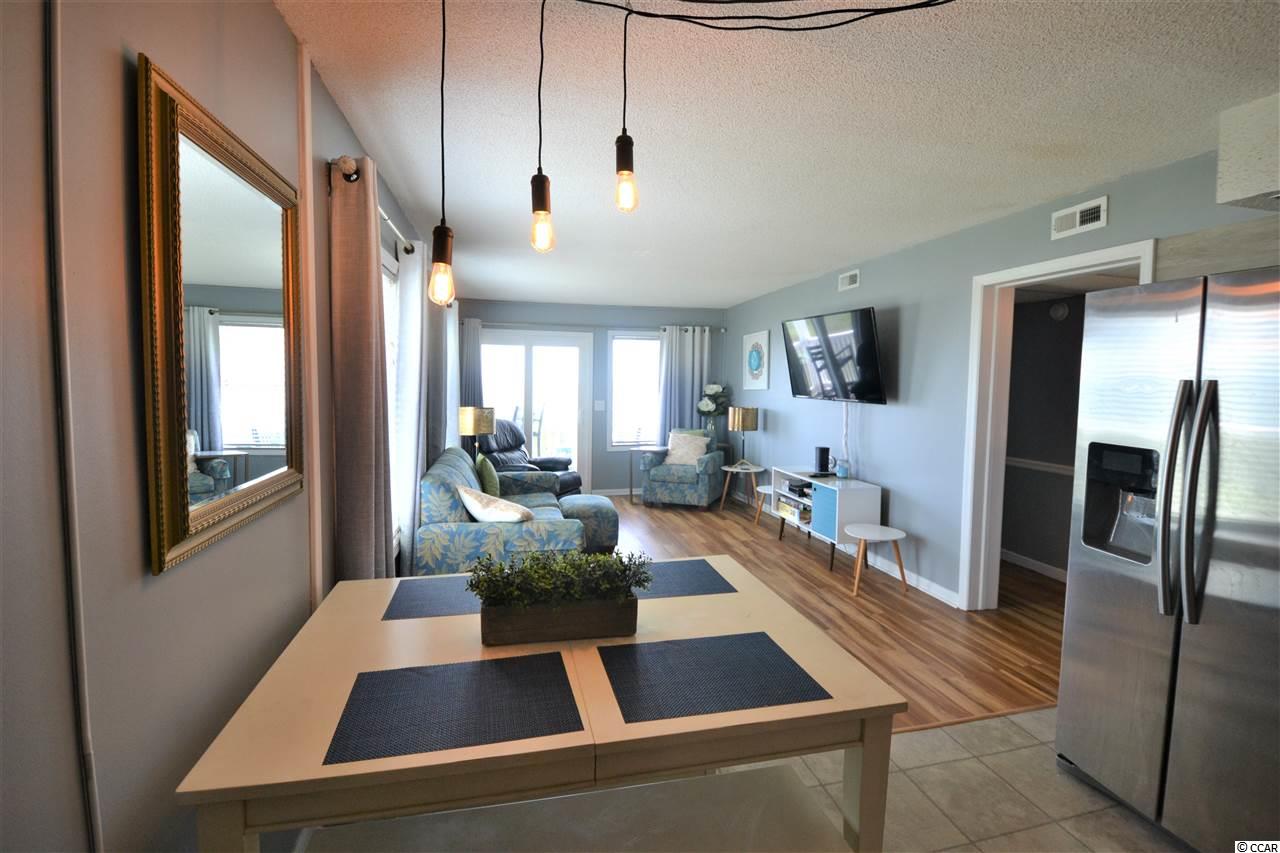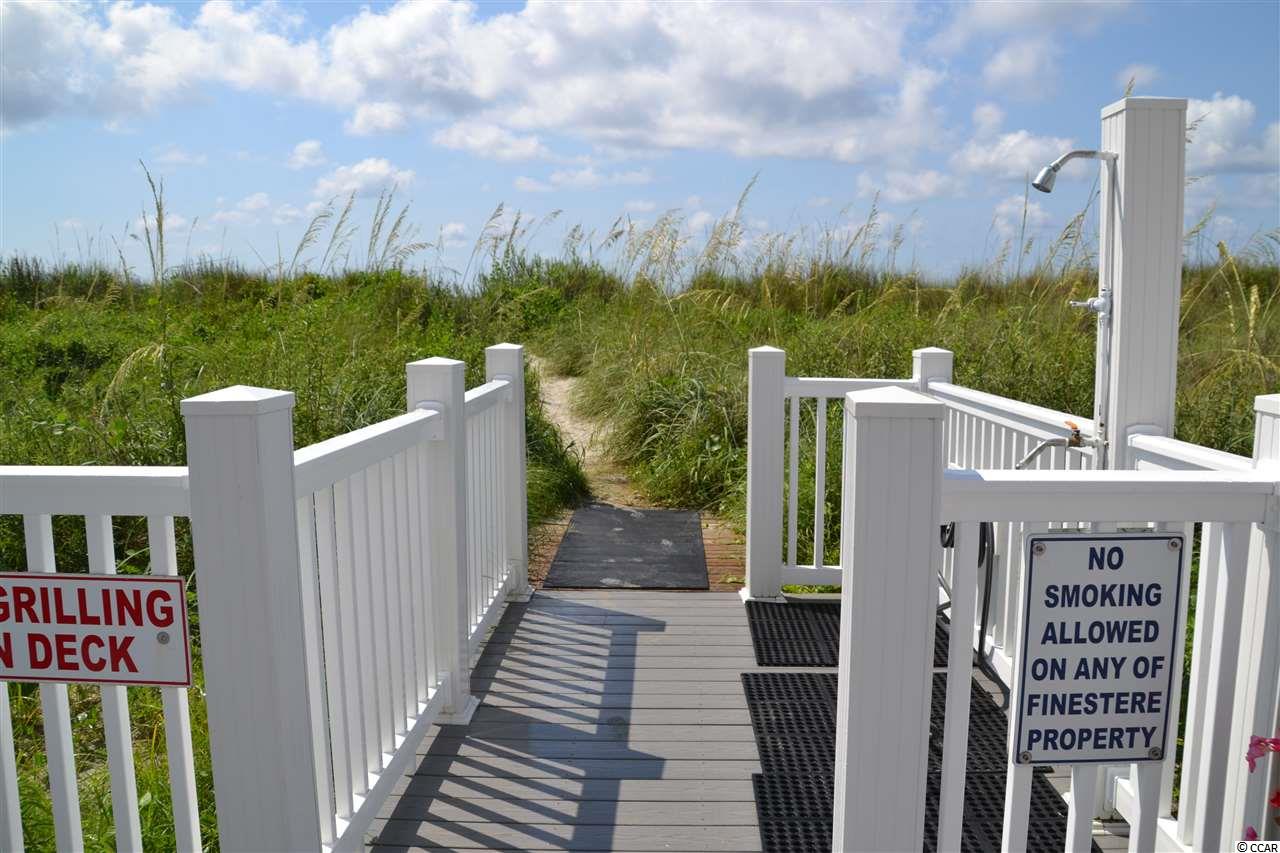 Renovated Oceanfront Condo with Excellent Views. Welcome to this lovely 2nd floor condo in the Finestere Condo complex in Cherry Grove North Myrtle Beach. Walk into the open floor plan featuring the kitchen with new granite counter tops with waterfall end, stainless steel appliance, open shelving and dining area that lead right into the living room. Enjoy the views of the ocean and the beach from all the windows in the living room that also features laminate wood floors. Master bedroom features laminate wood floors, views of the ocean from the window and a private full bathroom with a barn door and walk in shower. 2nd bedroom also features laminate wood floors. 2nd full bathroom in the hallway. Relax or entertain on the balcony off the living room with direct views of the beach, ocean and community pool. Community also has a large oceanfront sun deck with picnic tables, a shower area and private direct access to the beach.