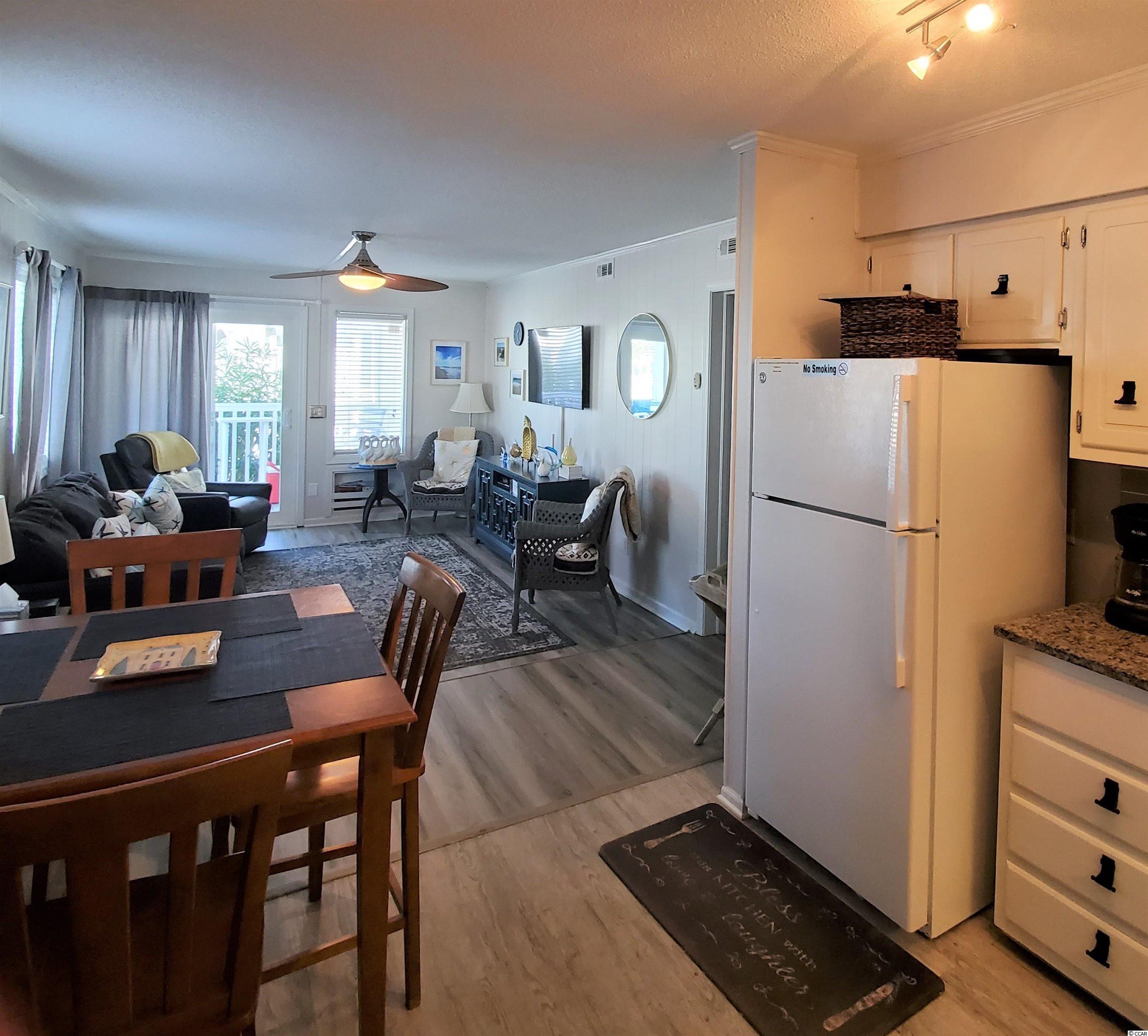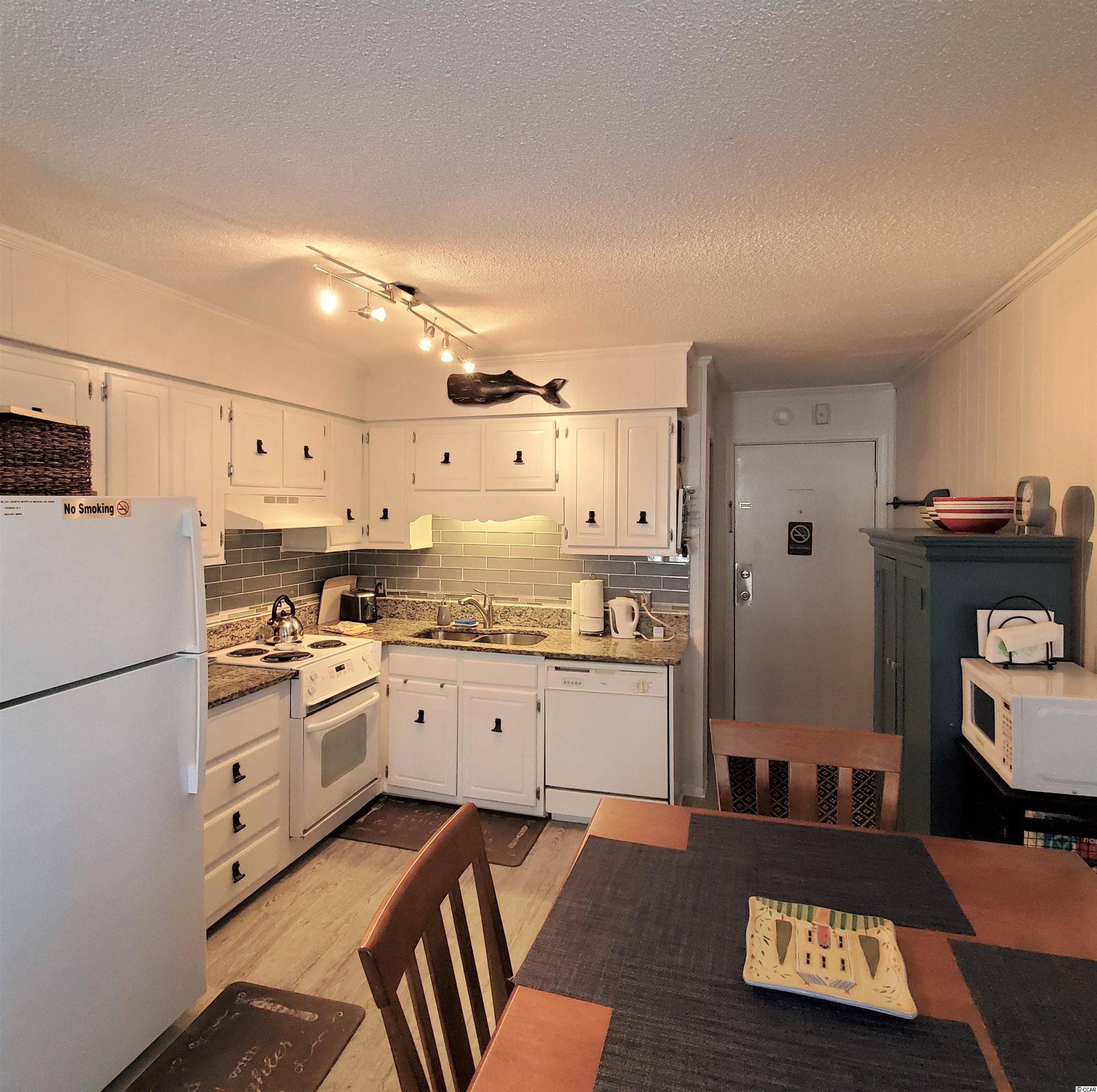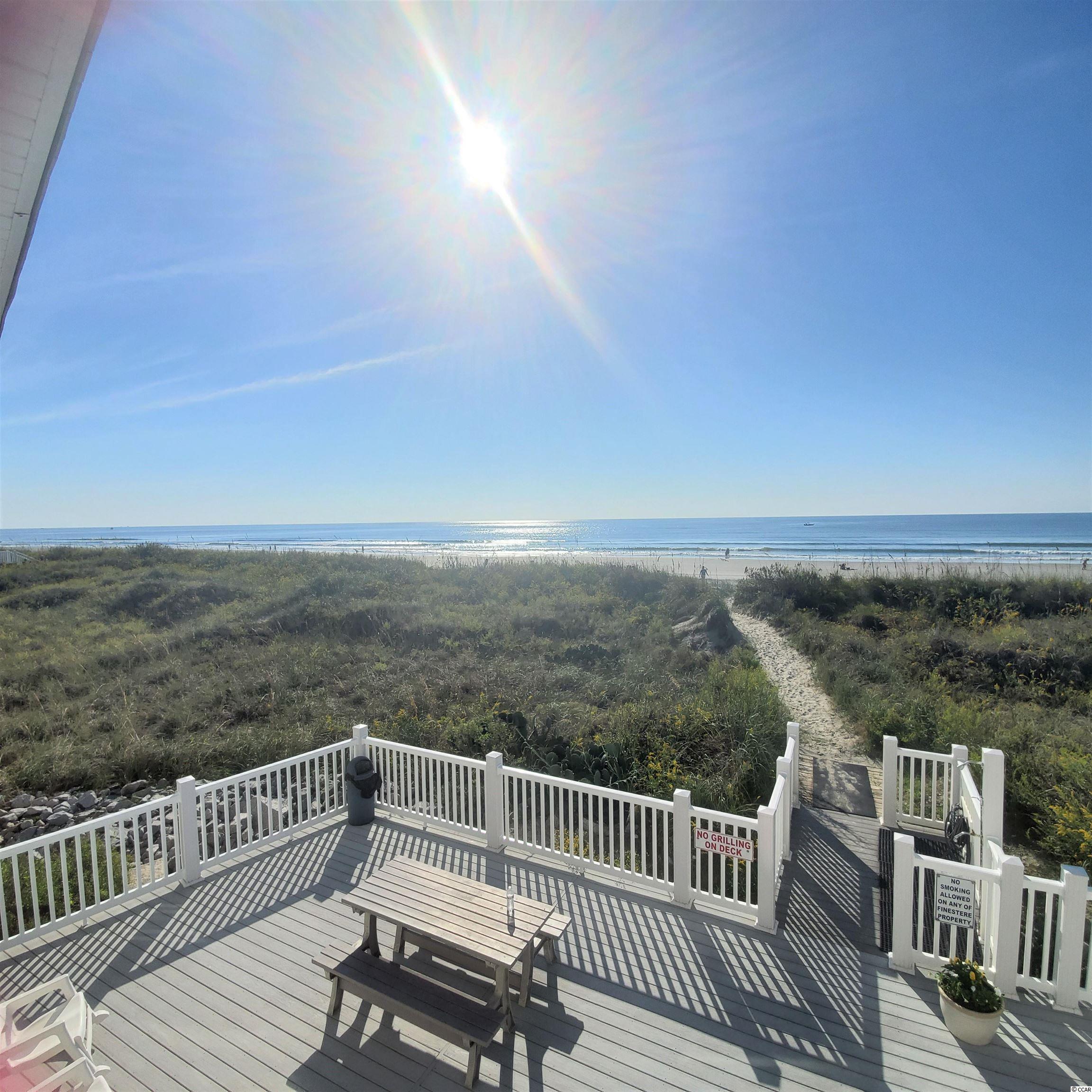 Looking for the convenience of a ""true"" ground floor condo? If so, this is it! Only 3 steps to climb, making this the easiest in and out location within an oceanfront building, yet it is simply steps to the beautiful Atlantic Ocean. Located in Cherry Grove Beach with easy access to the marsh and waterway, this beautiful, bright condo is located in the desirable oceanfront building, Finestere. The building was remodeled in 2019 - 2020 with new roof, gutters, balconies, siding, and windows! The condo has been freshly painted and has new luxury vinyl plank flooring throughout with the exception of the hall bathroom. Very tastefully decorated and comes fully furnished. There are granite countertops and tile Backsplash in the fully stocked kitchen as well as a utility room with washer and dryer. A storage area for your beach chairs and pool toys is located outside the front door. So just bring your bathing suit, toothbrush and flip flops! All the conveniences of living in an ocean front building may be yours today!