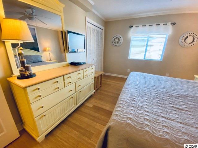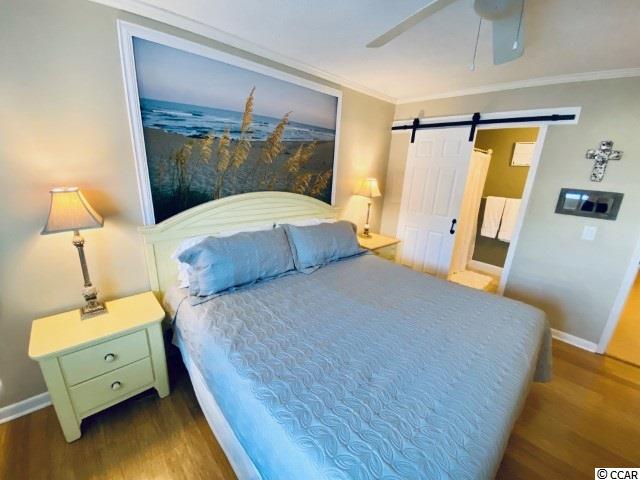 Upgraded condo with ocean views! Brand new vinyl siding, brand new balcony, and brand new storm-proof glass door, and storm-proof windows! Feel confident knowing your new place at the beach is protected and will stand the test of time. Beautiful and beachy location in the desired family-friendly Cherry Grove section of North Myrtle Beach! There is only one set of stairs leading up to second floor views. Private beach access on the property. Updated with white cabinetry in kitchen and in the bathrooms. There are granite counter tops in kitchen, and the kitchen has all major appliances with plenty of storage. The master bedroom has a great view of the ocean, and check out the barn door to the master bath! The second bedroom is freshly painted down to the molding and doors, with bunk beds for the family. Crown molding in living area and bedrooms, and bamboo wood flooring in main living area and master bedroom. The sleeper sofa has a new 3 inch memory foam topper to keep guests comfortable, and all new bedding and sheets for every bed in the condo. Washer and dryer in the unit, and three TVs and Roku. New electrical switches and receptacles in 2018. New heat pump installed in 2018 with a coastal coating to prevent rust. Roof is less than two years old. HOA fee includes: water, cable, wifi, insurance, pest control, trash, recycling, pool and grounds keeping, insurance. This is a great investment or second home.