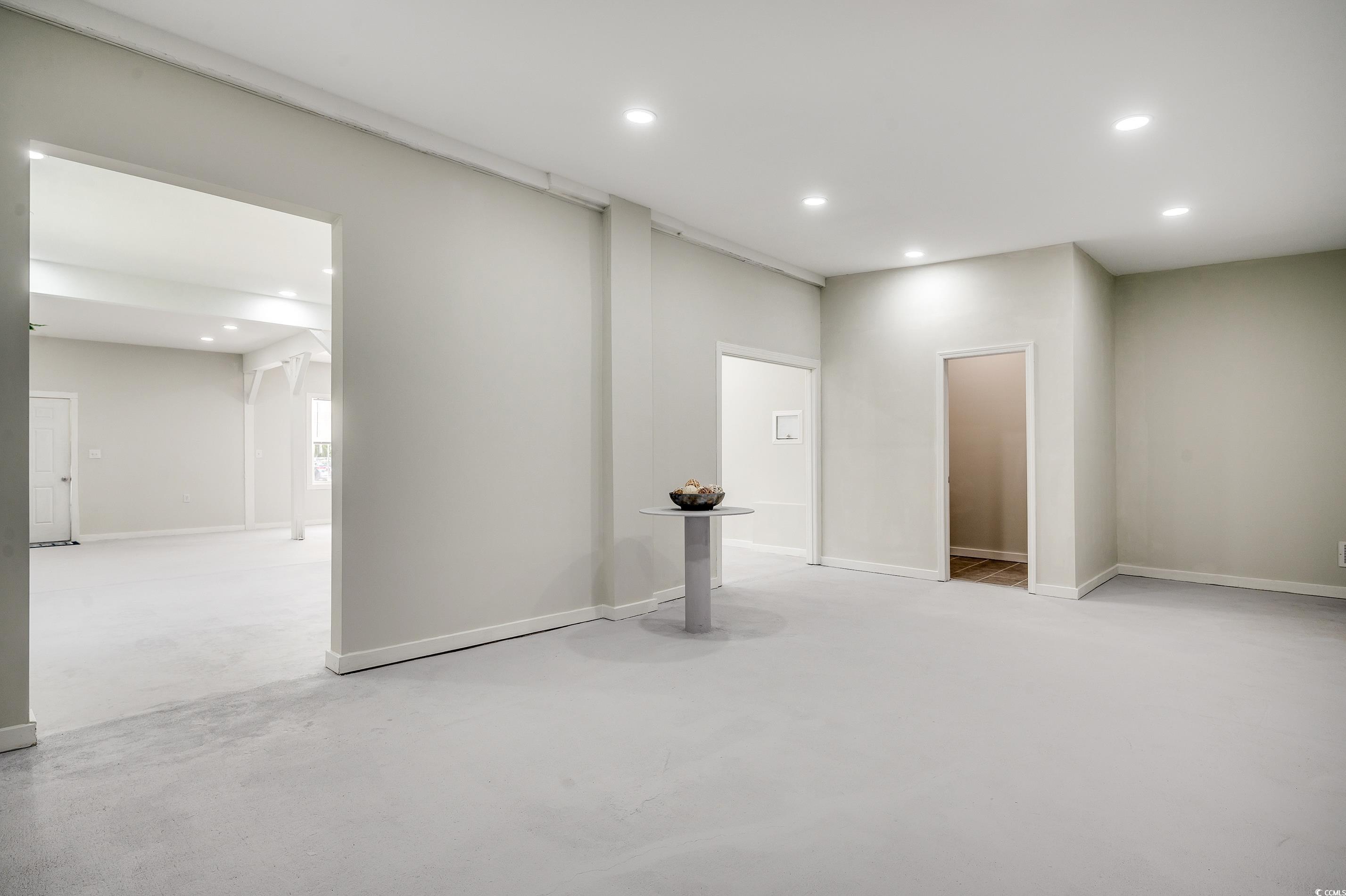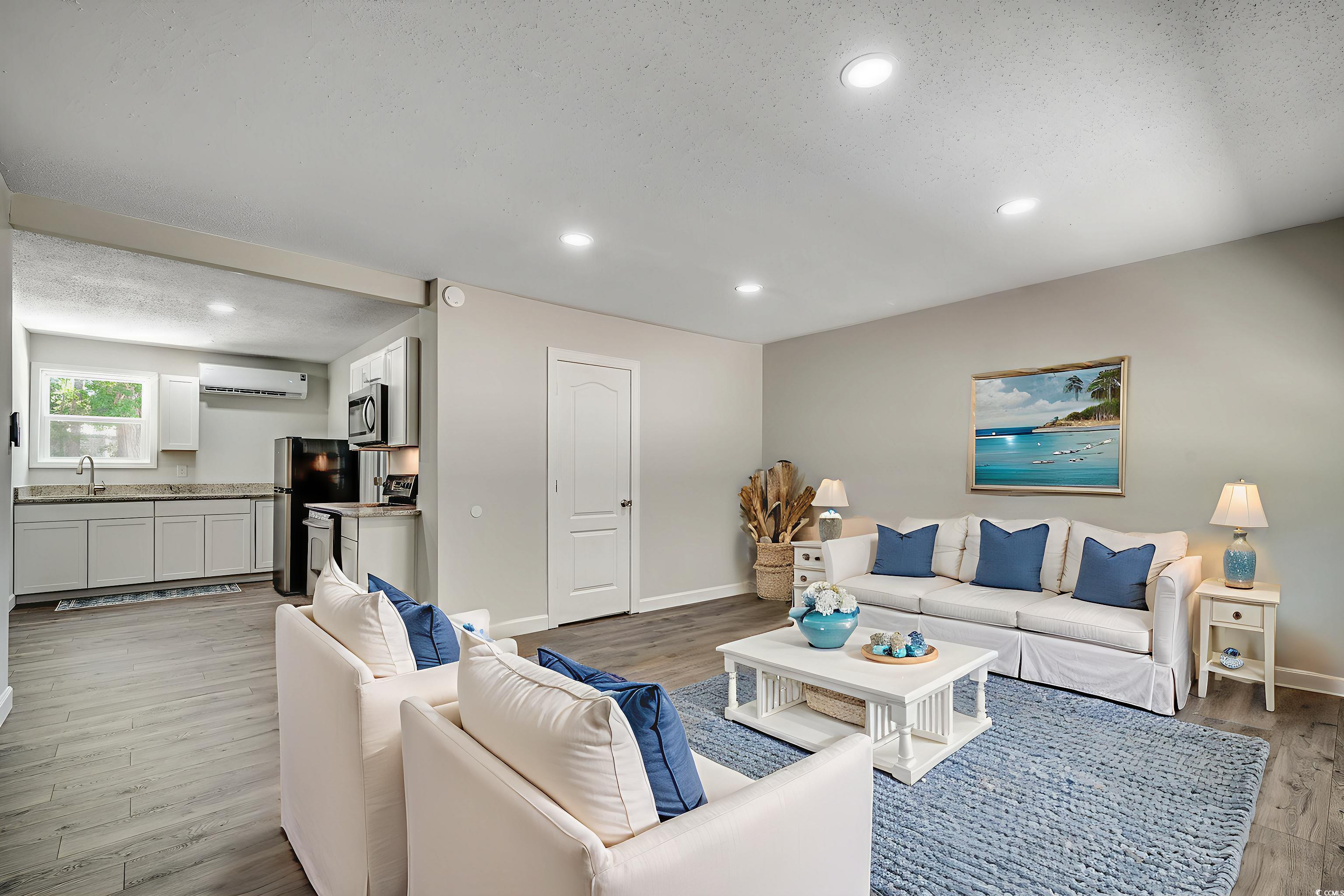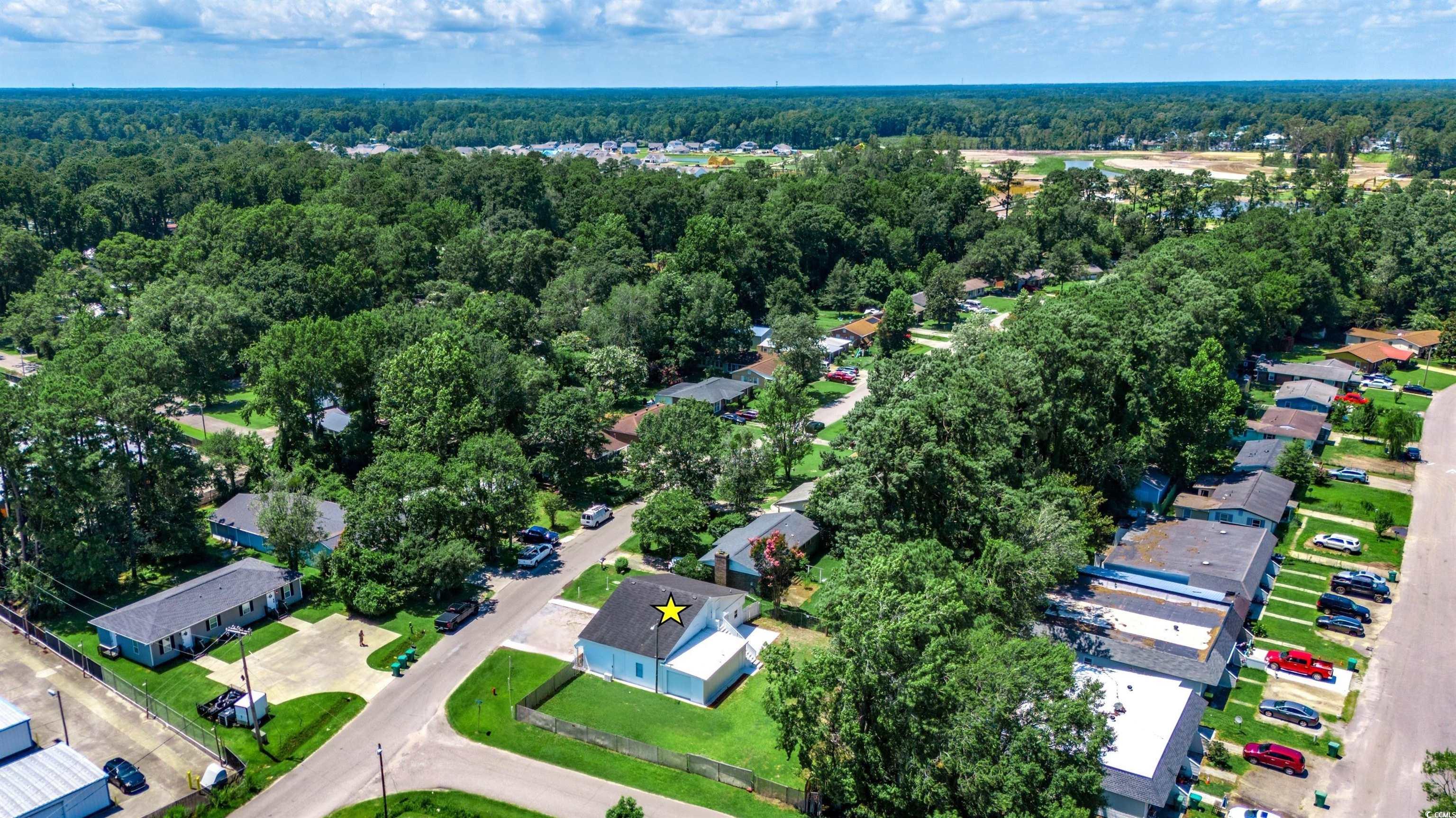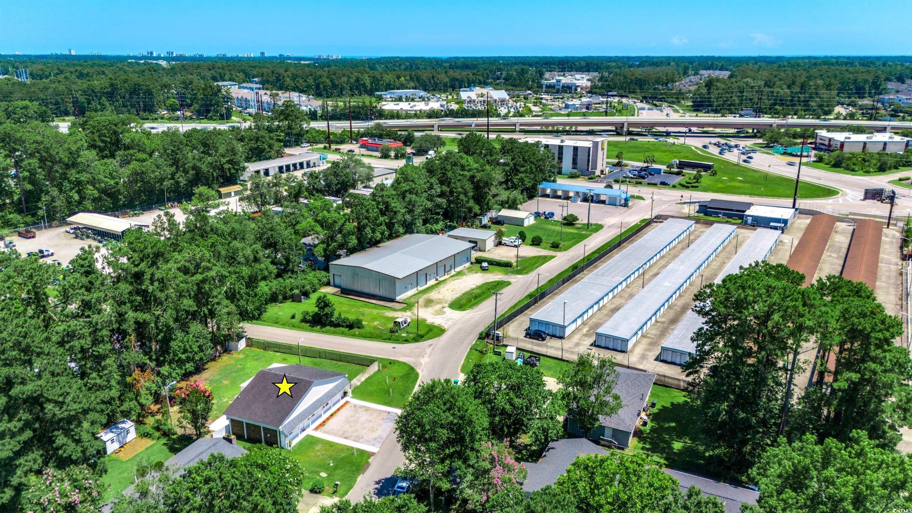 Come live and work from home! This remarkable property sits on a corner lot with over a quarter of an acre right down the street from Market Common! There's NO HOA so you can live the life that you have always wanted on your own terms. This super rare home is located in the neighborhood retail district, which means that you can run a business here. There are endless possibilities! It's currently zoned RE 1 which allows boutique shops, medical clinics, banks, salons, fitness centers, health spas, dry cleaners, bait shops, social organizations, and specialty schools with conditional exceptions for restaurants, bars, and veterinary offices. It could even be your own personal art studio or you could use some of this space for a workshop. This property is truly one-of-a-kind. It is located outside of the city limits and there are no restrictions stopping you from having your boat, RV, golf cart, or motorcycle. So, come bring all your toys and enjoy the freedom of having no hoa! Short-term rentals are allowed, which means that you can rent this home out on Airbnb and VRBO. It would make a great primary residence, second home, or vacation rental. This versatile single-family home has a big southern-style front porch and each side has its own entrance with separate exits. As you enter through the left door, you will see an open floor plan with a large 15x17 living room. There are two spacious bedrooms with a full-size bathroom which has a custom tile walk-in shower. Everything you need is on the ground level, which provides easy access. The kitchen features new stainless steel appliances along with granite countertops, a farmhouse sink, and lovely white cabinets. This entire home has been freshly painted, high-quality laminate flooring has been installed, and LED lights were added. A new hot water heater was put in this year and all of the windows on the residential side have been replaced. Two 22,000 BTU mini-split hvac systems have been professionally installed this year. They can both be controlled remotely with wifi and warranties will be provided. There is a transferable termite bond along with a 2-10 warranty that's being offered for extra peace of mind. The 8x10 laundry room has extra space for a pantry and there's a 30x30 attic upstairs, which can be used for extra storage or you could possibly finish it off. The commercial studio side has about 1,056 HSF and includes a 14x22 garage along with a half bath. This side has its own separate breaker box. This is the perfect space to run your own business! The driveway can currently accomodate 6 cars, but there's plenty of room for an additional parking lot. The fenced-in yard is huge and there are some trees in the back which provide some extra privacy. This is a great place to let your pets run around and play! There is a nice patio where you can relax and grill out with friends. The garage is a side load and the fence has a sliding gate. There are two industrial size exterior lights that automatically come on at night. This unique property is conveniently located to everything that the Grand Strand has to offer! There are several top-notch golf courses nearby, the best fishing spots, numerous delicious restaurants, bars with awesome live music, and tons of places to go shopping! Plus, the beach is only about 10 minutes away! You don't want to miss out on this opportunity to come live the coastal dream life! Schedule your showing today and don't forget to check out the 3D virtual tour! Some photos in this listing have been virtually staged. Not all bedrooms are conforming; contact agent for full bedroom details. Square footage is approximate and not guaranteed. Buyers responsible for verification.