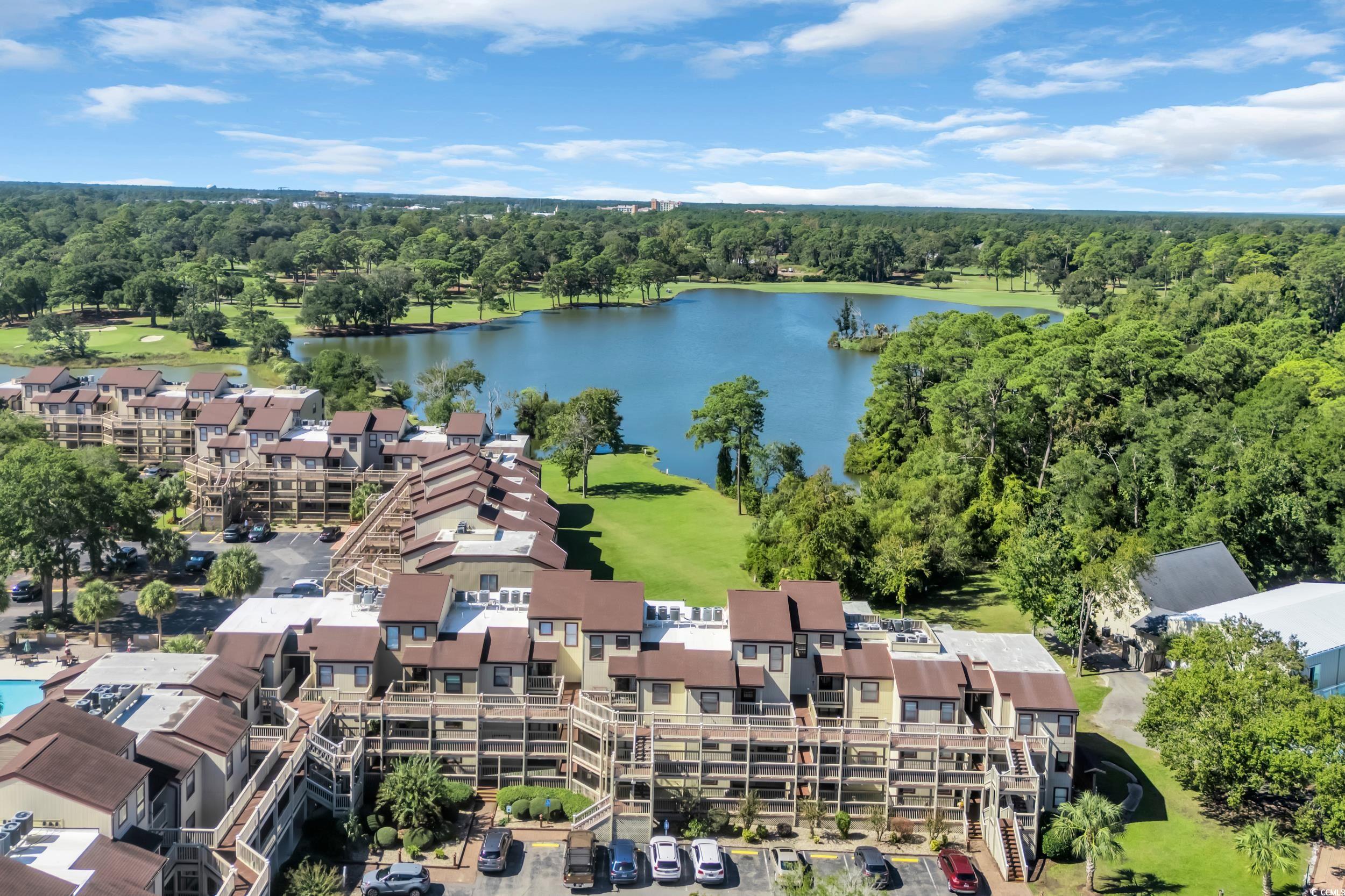 Welcome to this spacious 3 bedroom 2 bath Condo in Dunes Pointe in the highly desired Shore Drive area of Myrtle Beach. This community is tucked away from the traffic and noise while still being just under half mile to some of the best beaches around. The Primary bedroom has its own private full bath as well as access to the large wrap around screened porch. The Lake views are amazing from this unit and being top floor, there's no upstairs neighbor noise or obstructed views. The Living area is spacious with vaulted ceiling and offers natural light from the patio doors leading to the porch. The dining area easily seats 6 with additional seating at the breakfast bar. There is also a convenient wet bar to store your seashell collections, wine glasses or beach decor. The kitchen has granite counters, upgraded cabinets, full size stainless appliances with convenient access to a large pantry. The first floor guest bedroom is spacious and has access to the full bath with upgraded vanity and shower/tub combination. Take the stairs to the spacious third bedroom with large closet and overlook into the living area. This room could also make a great den, office, or recreational room. There is a stackable washer and dryer in the hallway and a good amount of closet storage throughout, something that can be hard to find in Condos in our area. Wood floors in main living spaces, carpet in bedrooms, vinyl tile in bathrooms. The Dunes Pointe community allows short and long term rentals making this a viable investment option or a wonderful full time residence, The amenities include tennis courts, indoor and outdoor pools, hot tub, outdoor eating and gilling areas. The Apache Pier is right down the street, as well as many favorite Restaurants and Bars such as Ocean Annies, Flip Flops, and Finn McCools. It is just a few miles to the Tanger Outlets, Broadway at the Beach and some of the best Restaurants in our area.