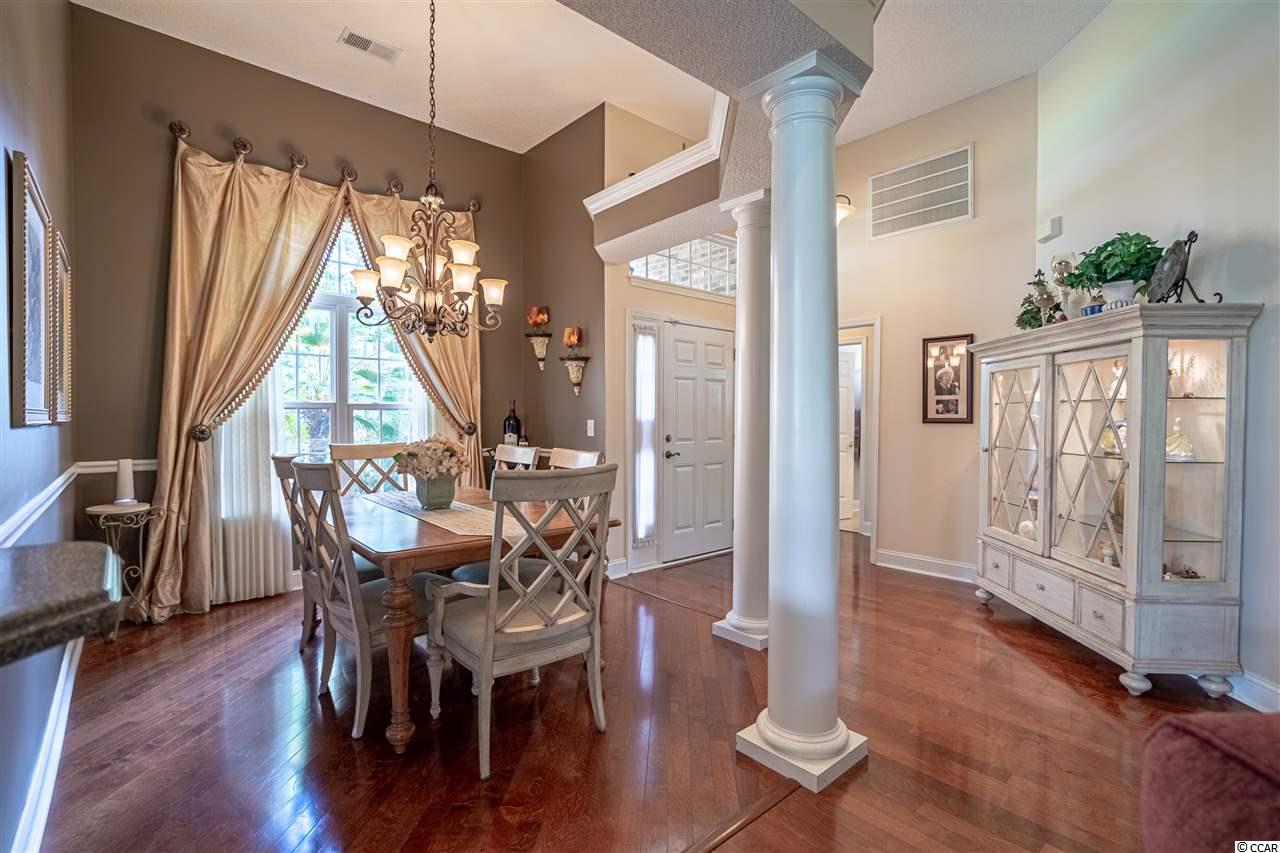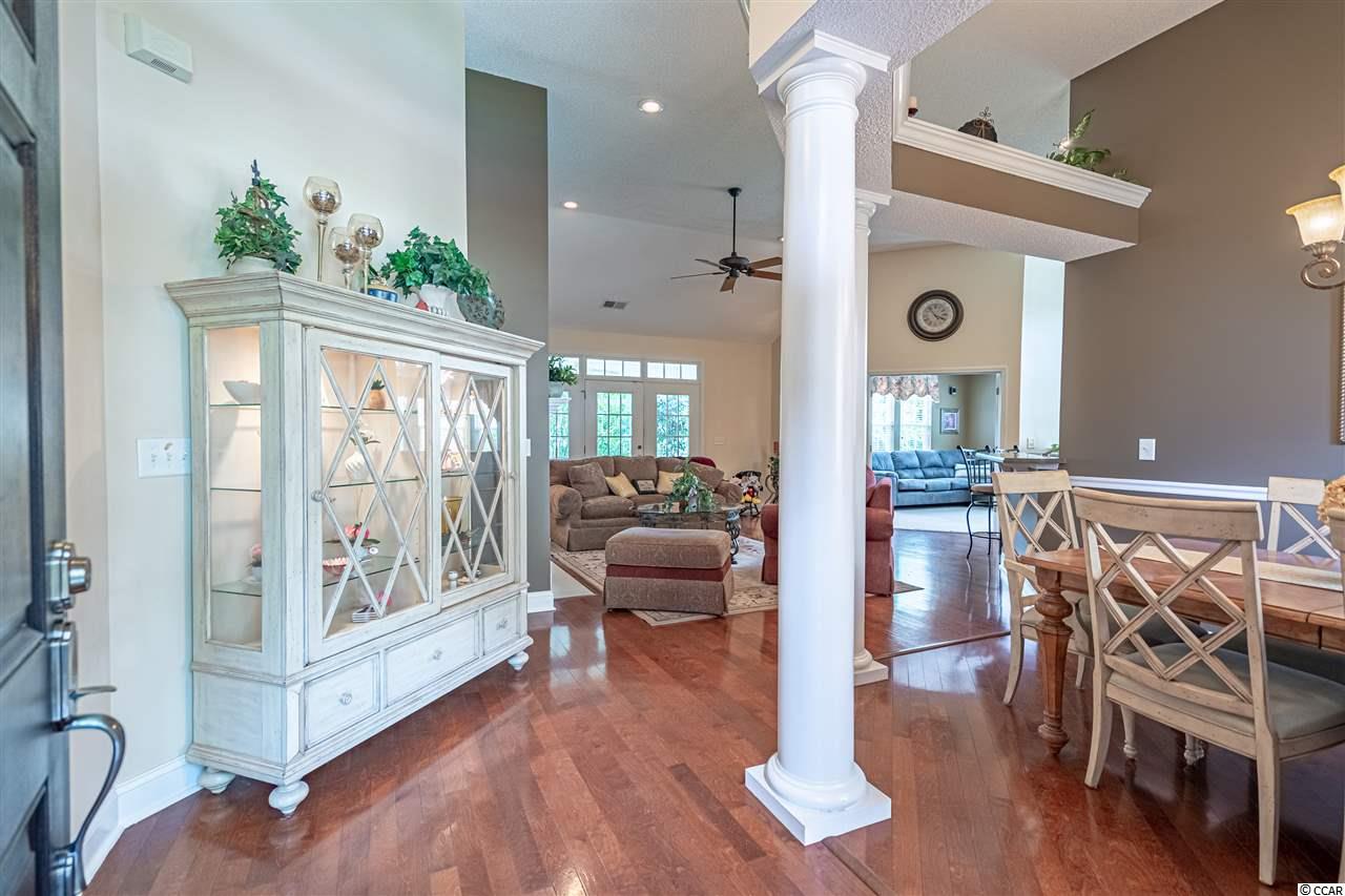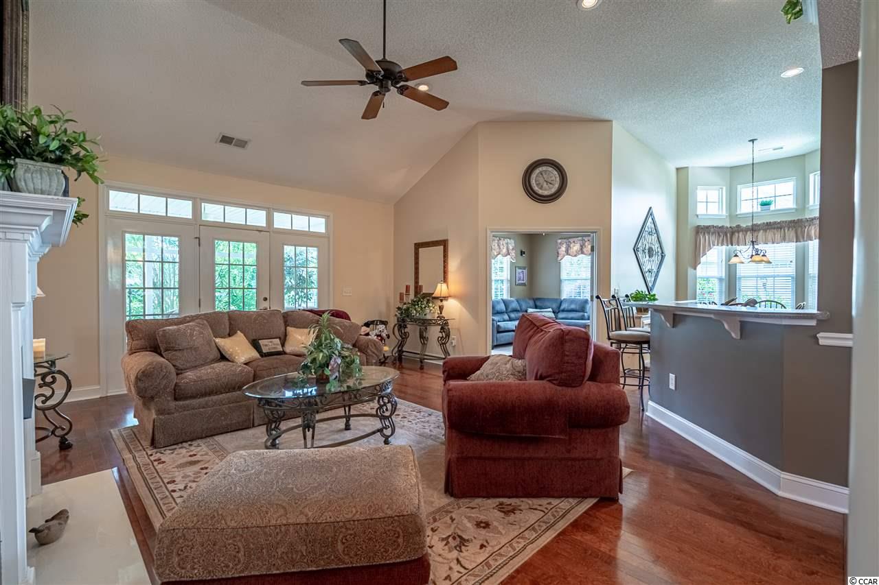 Welcome to Waterford Plantation in the coveted Carolina Forest section of Myrtle Beach, SC. While driving through this neighborhood you will see it is well established and well maintained. The wide variety of home styles add to the beauty that surrounds you. This meticulously cared for and professionally landscaped 4 Bed 3 Bath home sits on a corner lot opposite a park like green space complete with gazebo. The home looks as good as it did the day it was built! Upon walking through the front door you'll be greeted by an open concept living area complete with entry Foyer, Formal Dining Room, Eat-In-Kitchen & Great Room, all with engineered hardwood flooring & 15 foot ceilings. Entertaining will be no issue here with additional seating at the counter height breakfast bar, you will have plenty of room for parties of all sizes. Staying on the main floor and designed with welcoming French Doors and cozy carpeting is the Family Den or Office Space. The owner's suite is also located on the main floor with a sizable walk-in closet which also has pull down attic stairs making it so easy to hide the kid's birthday and holiday presents from now on. The attic also has custom shelving for all of your storage needs. Two Guest Bedrooms are located on the other side of the gas fireplace with a shared hallway and Full Bath. As we walk out through another set of French Doors we're met with an extra large outdoor screened porch and additional concrete patio complete with a gas line ready for your grilling or outdoor pleasure. The backyard is fully fenced in and surrounded by professionally maintained greenery. The current owner is a local PGA Professional and has worked on some of the best courses in the area, so it's easy to see where he draws his inspiration from. You could enter the home through the side load garage as well to bring your groceries in without a worrying about the weather. There is also a side door that could be used as a private entrance with direct access to the bonus room above the garage. This is easily used as the home's 4th bedroom which is also has it's own Full Bathroom. A perfect spot for older children or family members where privacy is important. Waterford Plantation is conveniently located off of Carolina Forest Blvd in a golf course community and close to all shopping, great schools, Doctors and just a short car ride to the beach!