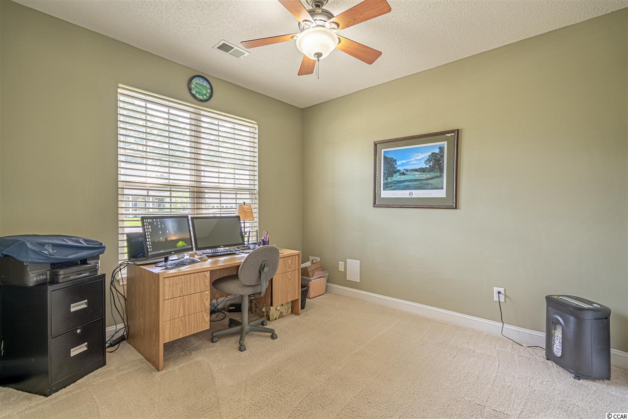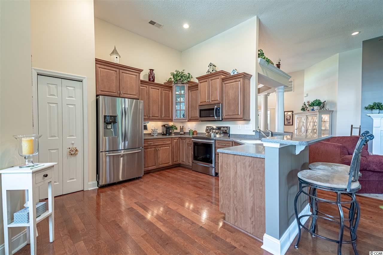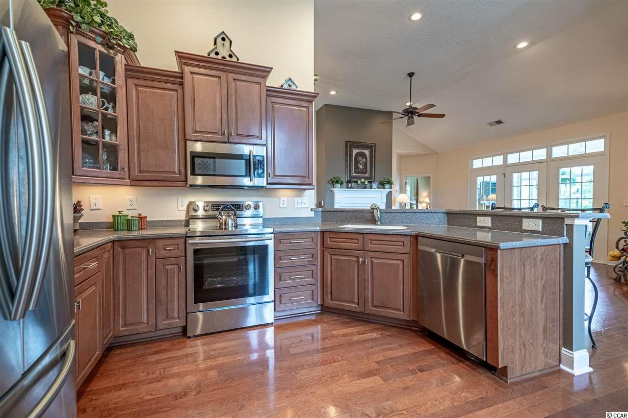 Welcome to Waterford Plantation in the coveted Carolina Forest section of Myrtle Beach, SC. While driving through this neighborhood you will see it is well established and well maintained. The wide variety of home styles add to the beauty that surrounds you. This meticulously cared for and professionally landscaped 4 Bed 3 Bath home sits on a corner lot opposite a park like green space complete with gazebo. The home looks as good as it did the day it was built! Upon walking through the front door you'll be greeted by an open concept living area complete with entry Foyer, Formal Dining Room, Eat-In-Kitchen & Great Room, all with engineered hardwood flooring & 15 foot ceilings. Entertaining will be no issue here with additional seating at the counter height breakfast bar, you will have plenty of room for parties of all sizes. Staying on the main floor and designed with welcoming French Doors and cozy carpeting is the Family Den or Office Space. The owner's suite is also located on the main floor with a sizable walk-in closet which also has pull down attic stairs making it so easy to hide the kid's birthday and holiday presents from now on. The attic also has custom shelving for all of your storage needs. Two Guest Bedrooms are located on the other side of the gas fireplace with a shared hallway and Full Bath. As we walk out through another set of French Doors we're met with an extra large outdoor screened porch and additional concrete patio complete with a gas line ready for your grilling or outdoor pleasure. The backyard is fully fenced in and surrounded by professionally maintained greenery. The current owner is a local PGA Professional and has worked on some of the best courses in the area, so it's easy to see where he draws his inspiration from. You could enter the home through the side load garage as well to bring your groceries in without a worrying about the weather. There is also a side door that could be used as a private entrance with direct access to the bonus room above the garage. This is easily used as the home's 4th bedroom which is also has it's own Full Bathroom. A perfect spot for older children or family members where privacy is important. Waterford Plantation is conveniently located off of Carolina Forest Blvd in a golf course community and close to all shopping, great schools, Doctors and just a short car ride to the beach!
