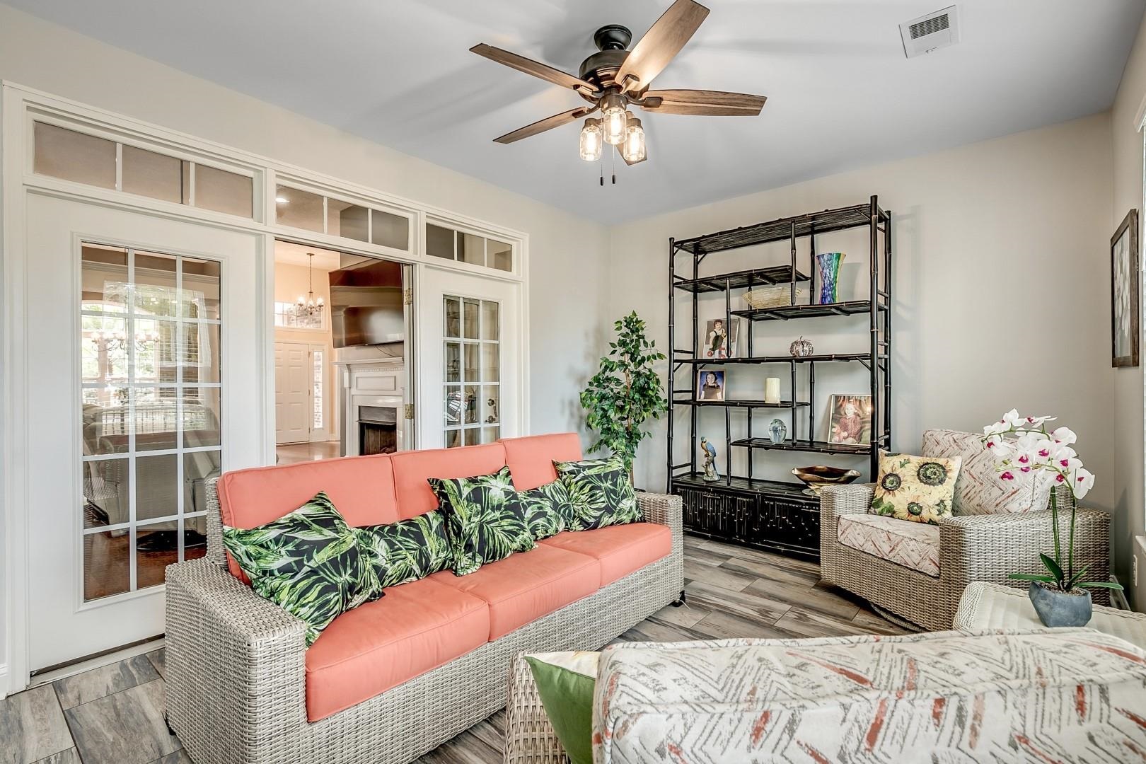 Come venture into this lovely home located in the established community of Waterford Plantation. This elegant home sits on a corner lot with over a quarter of an acre. It has a side-load garage and a large driveway. There are trees across the street with a neighborhood gazebo. This is an ideal place to enjoy a good book and relax in the shade. As you enter through the foyer, you will notice real hardwood flooring, 15 ft high ceilings, and a fireplace where you can cozy up with all your loved ones. This beautiful home has an open concept with a split floor plan. The large kitchen features stainless steel appliances with a convection oven and Corian countertops along with a tile backsplash, gorgeous cabinetry, and a pantry. There is a breakfast nook with a bay window, which would be the perfect place for a window seat. There's a large bar, which would be great for entertaining, and the formal dining room has lots of natural light. This is a single-level home with a bonus room and a full-size bath above the garage. The spacious primary bedroom on the main level features a big walk-in closet, tray ceiling, and an en-suite bathroom with a whirlpool tub, dual sinks, and a separate shower along with a water closet. There are two more bedrooms towards the front of the home with another full-size bath. The laundry room is situated right next to the side door, which provides easy access to the kitchen for unloading groceries, etc. The washer and dryer will convey. The Carolina room is located on the rear of the home and it can be used as a sitting area or it could easily be converted into a mother-in-law suite. It has modern tile flooring throughout and stylish glass doors that connect to the living room. There are two other rooms next to the Carolina room that can be used as bedrooms or you could have an office and a fitness room. As you journey into the backyard, you will see an abundance of unique trees, flowers, and butterfly bushes. In the Springtime, everything will be in full bloom with azaleas, hibiscus, and lilies. This is truly an outdoor oasis! You can grill out with friends or sit back and enjoy your favorite drink under the covered porch. The entire backyard has been fenced-in and all your pets can play, even the little ones. The irrigation system has been recently upgraded as well. You can ride your golf cart to two major courses from here. The Man O' War is across the street and The Wizard is only a few minutes away. Motorcycles are allowed in this community and there is a Nature Trail where you can walk or ride your bicycle. Waterford Plantation is located close to everything that the Grand Strand has to offer, and there are a lot of amenities for everyone. You can take a dip in the pool, have a picnic at the clubhouse, or go to the playground. This neighborhood has sidewalks throughout so it's very easy to navigate. There are a couple of tennis/pickleball courts along with a sandy Volleyball court, and a huge basketball court. This area is highly desirable and it's located in the award-winning Carolina Forest school district. This one is definitely a must-see! Schedule your showing today, and don't forget to check out the virtual tour! Square footage is approximate and not guaranteed. Buyer is responsible for verification.