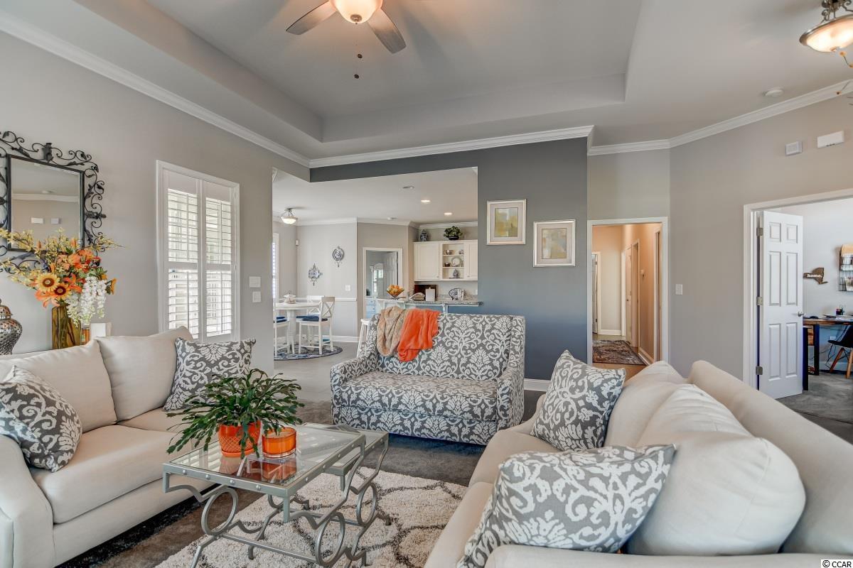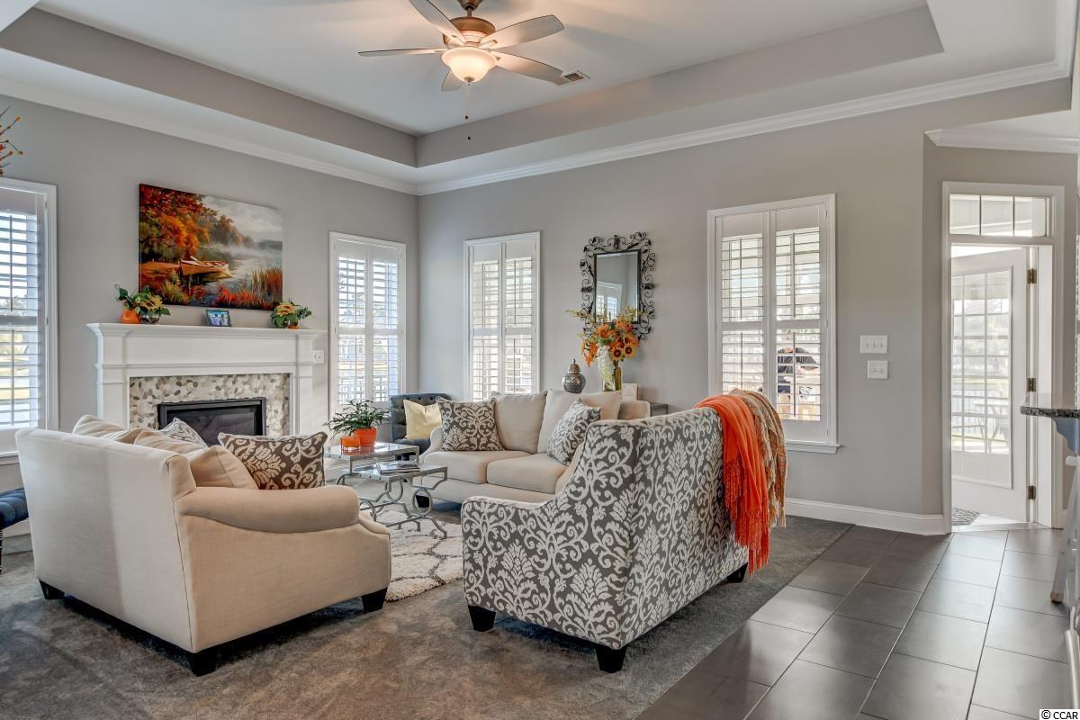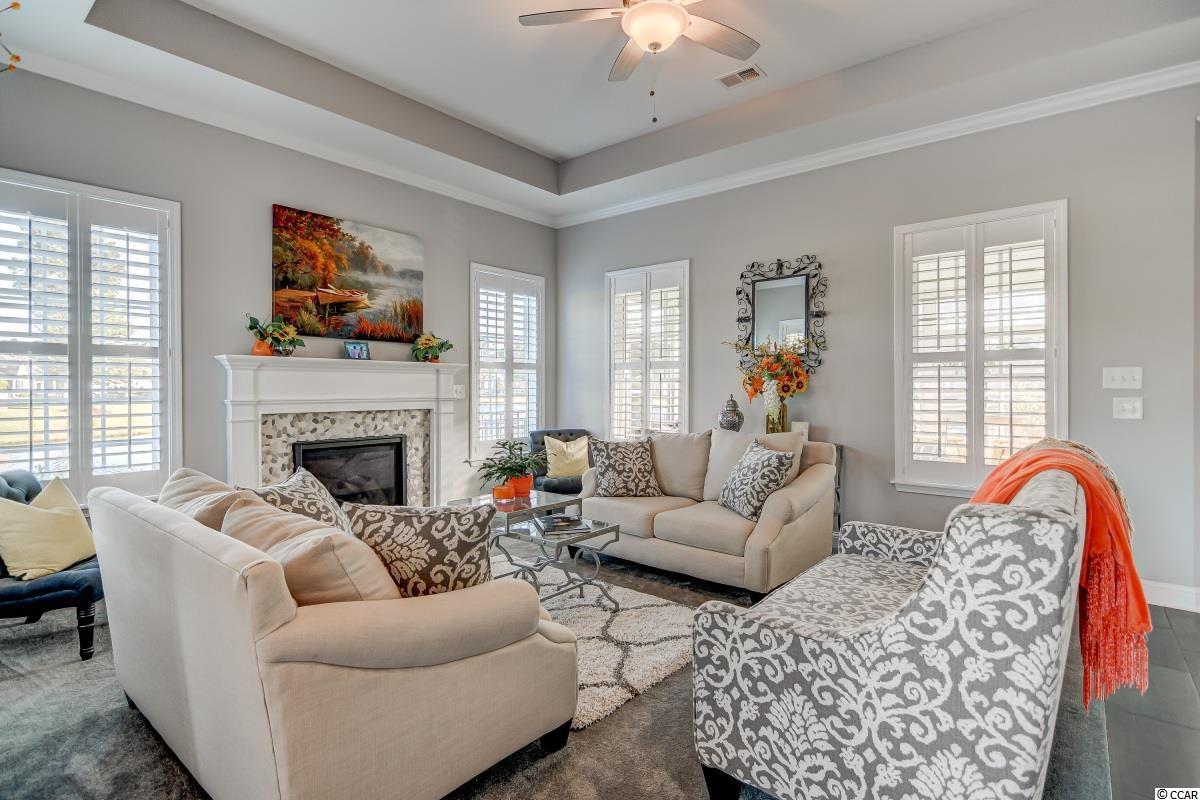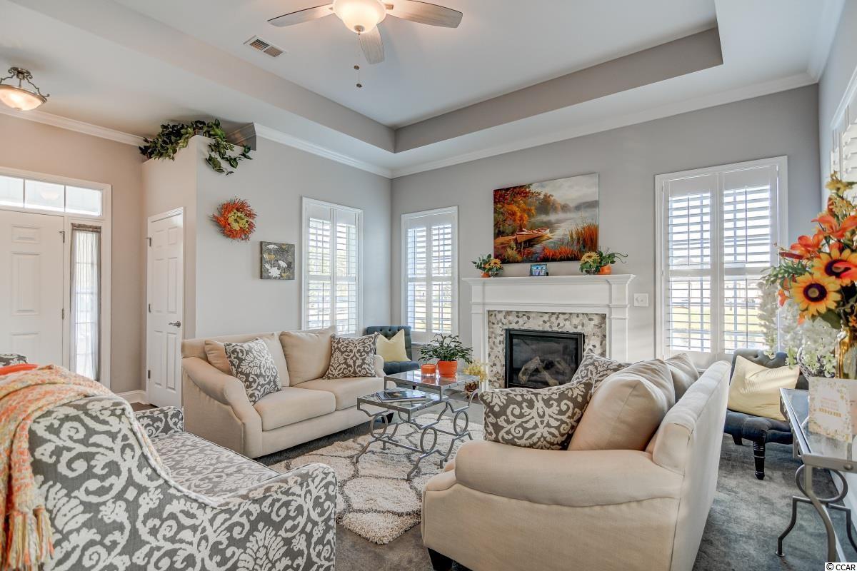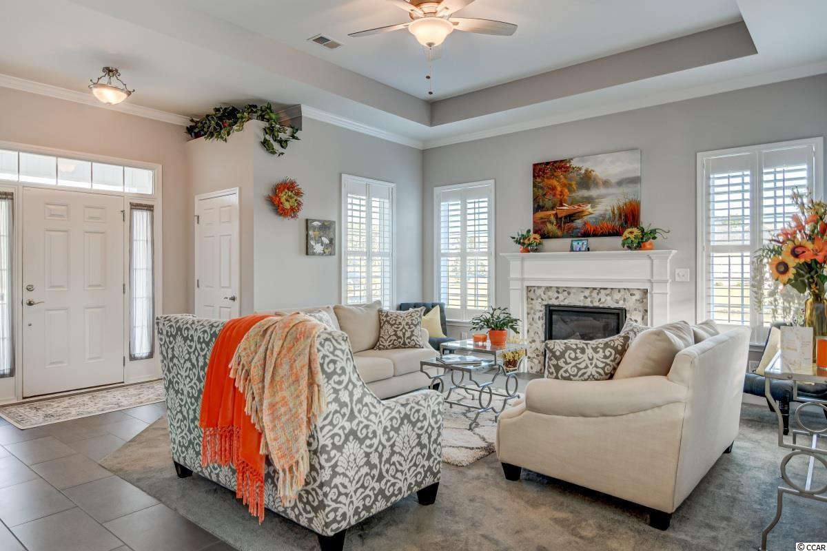 Immaculate 4 bedroom 3.5 bath with a bonus room home in the highly sought after neighborhood of Waterford Plantation! This gorgeous home has only had one owner and has been meticulously cared for since it was built in 2016! Featuring tile flooring and crown molding throughout the functional main living space, this home makes you say wow the moment you walk in! The living room offers a cozy fireplace, tray ceiling with a fan, and plantation shutters! In the kitchen you will find stunning granite countertops, white cabinets, stainless steel appliances, a breakfast bar and an adjacent dining area. The glass pane door of the main living area takes you out to the amazing Carolina Room with slider windows all the way around to take in the breathtaking pond views! The master suite is on the first floor and features crown molding, a tray ceiling with a fan, plantation shutters, a walk-in closet, a linen closet, and a private bath. The master bath has lovely tile floors, a custom tiled glass enclosed shower, and double sinks on a long granite topped vanity with extra storage. There are 3 additional bedrooms on the first floor, one of which is being used currently as an office and one that is currently being used as a second living room. There is also a second full bath as well as a half bath for guests both with granite countertops on the vanities. The whole upstairs is just the extra large bonus room with its own full bath! The bonus room is being used as another bedroom currently but it could be used as a kids playroom, an at home gym, rec room...the options are endless! This home also has a big laundry room/mudroom at the garage door entrance with a long countertop for folding and storage, upper cabinets, shelving, and a dog washing station with a hand held sprayer to get the pups clean! The attached 2 car garage has an extra bump-out to one side that adds space for storing bikes, strollers, tool boxes, you name it! This exquisite home sits on a breathtaking almost quarter acre lot that has the pond on 2 sides as there is no neighbor immediately to the left of the house, just the pond! The fenced in backyard is an oasis with a fabulous patio perfect for grilling out and entertaining! The yard has been impeccably landscaped with no detail missed! Waterford Plantation has fabulous amenities including a pool, fitness center, playground, tennis, volleyball, and basketball courts, and so more!
