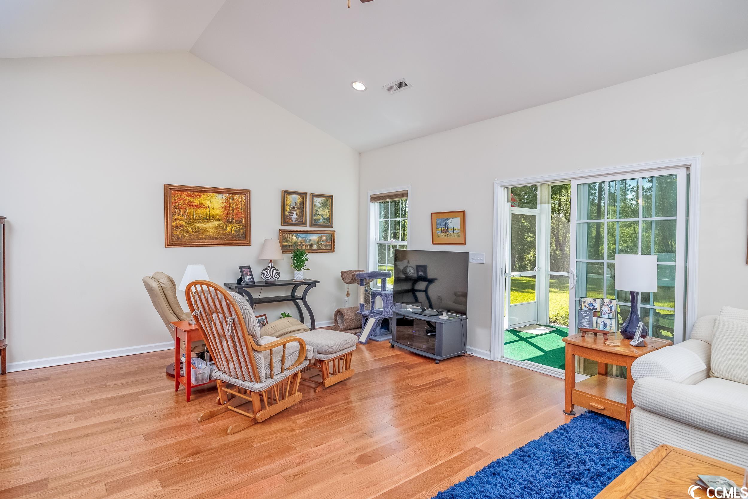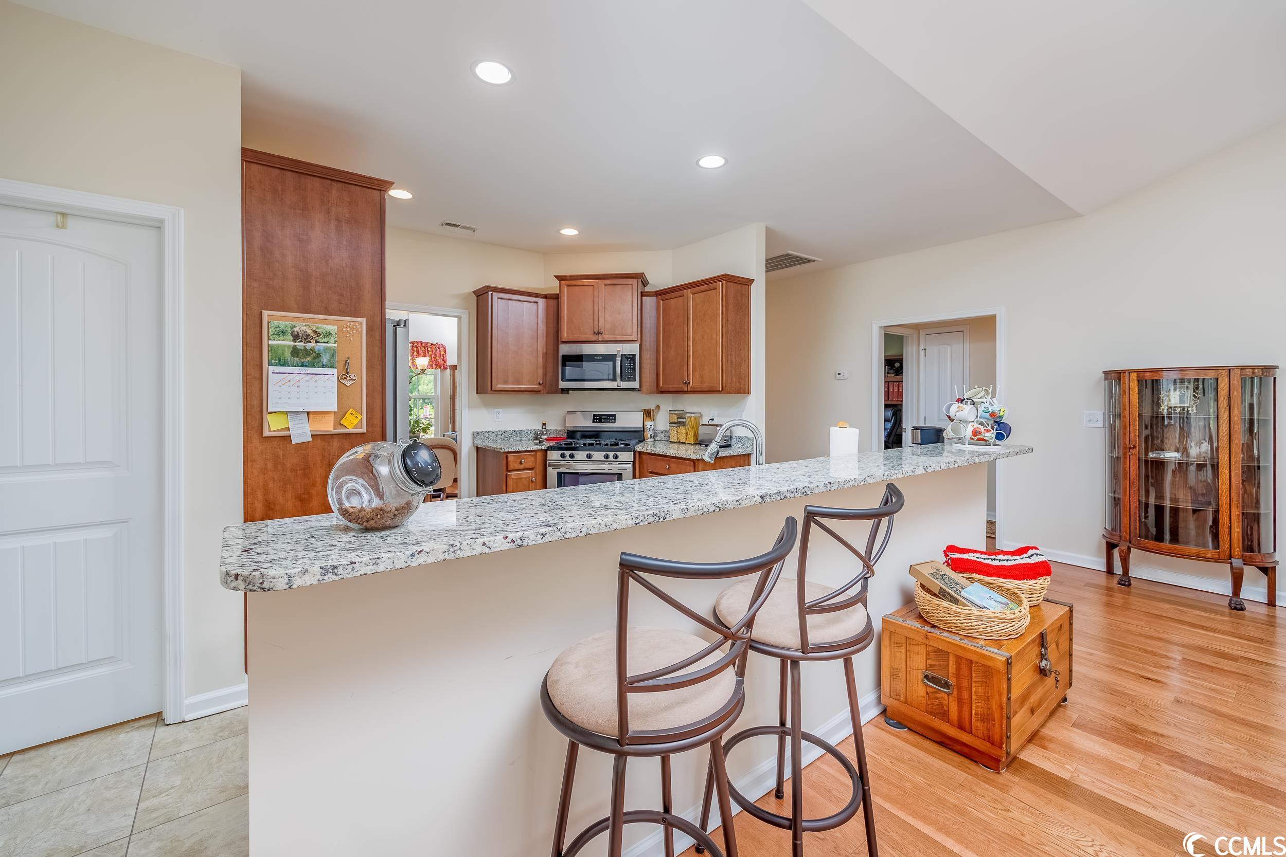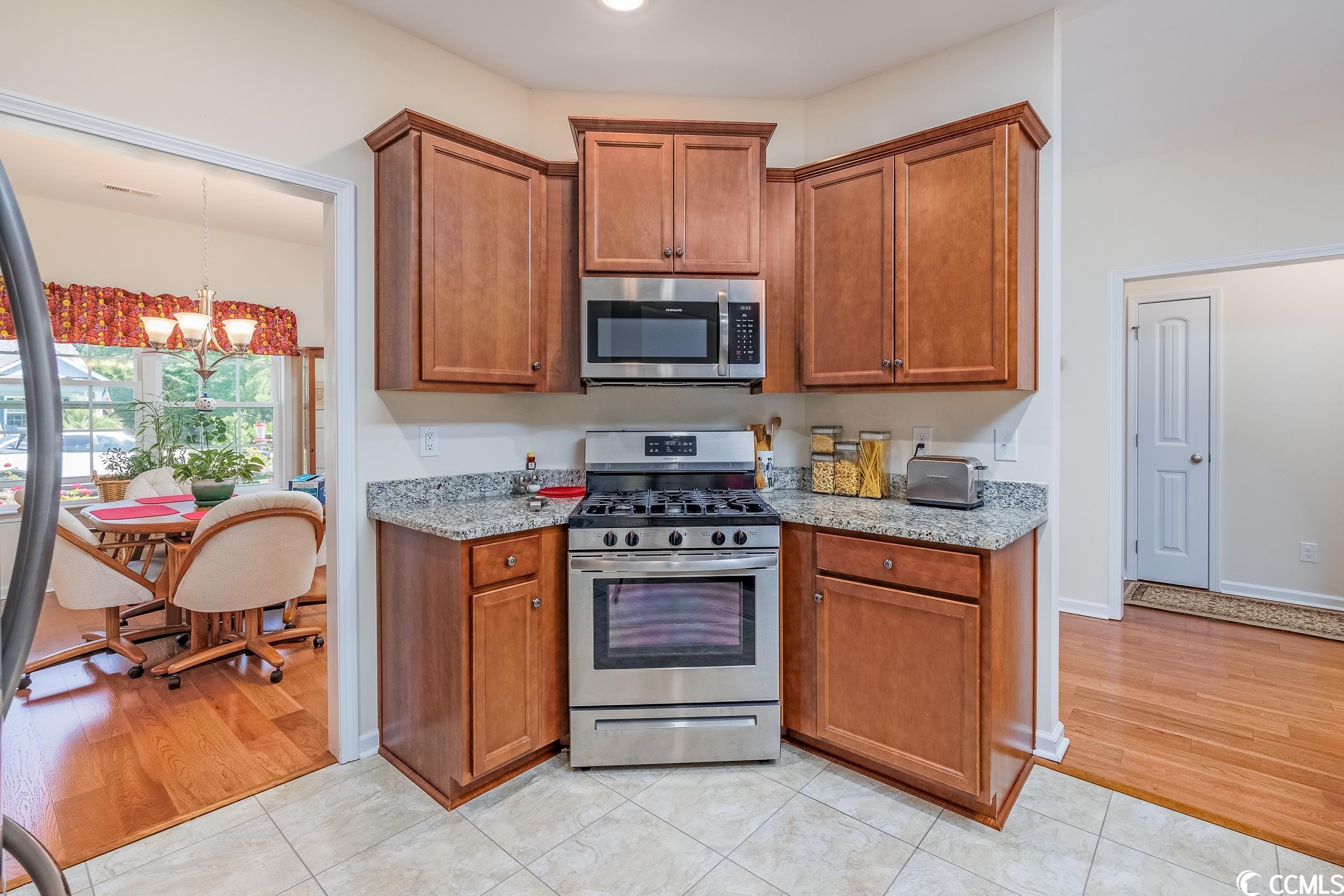 Barons Bluff North! Beautifully maintained 3BR/2BA single level home with the best floor plan in the community. The upgraded Poplar floor plan offers maintenance free exterior, upgraded Birch cabinets, cathedral ceiling in living room and tray ceiling in master bedroom, large 5' shower and double comfort height vanities in the master bath, breakfast bar, formal dining area, granite counters and stainless appliances with natural gas range, and upgraded trim package. Beautiful wood floors in the entry, living, and dining rooms. Tile in the kitchen and baths. Large two car garage with pull down attic ladder leading to floored storage space. Barons Bluff North is a natural gas community and this home features a gas range, gas heat, and a gas tankless instant hot water system. Enjoy the ample natural light from the many large windows in front and back. The screen porch and patio out back is peaceful and inviting, offering a wooded view behind the home. Barons Bluff has a community pool and clubhouse to enjoy, and is conveniently located just south of Hwy 22 off of Hwy 90.