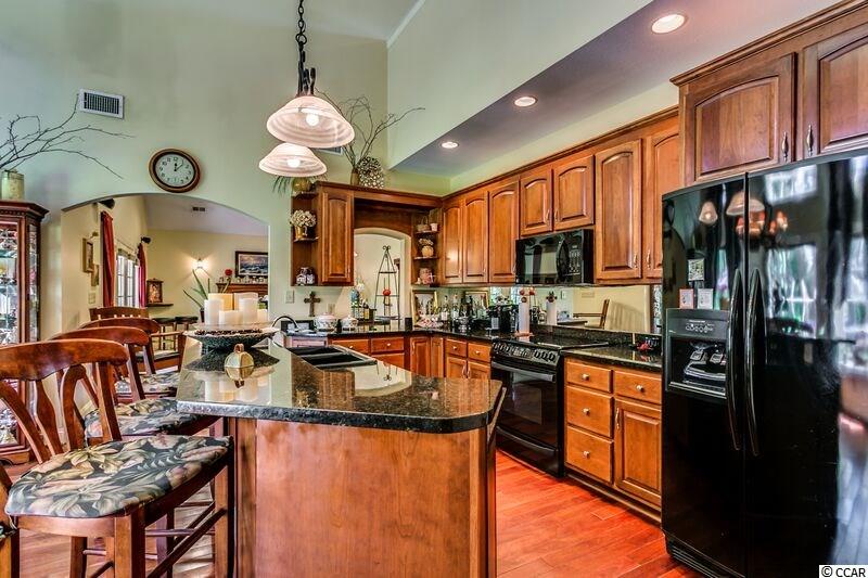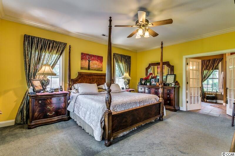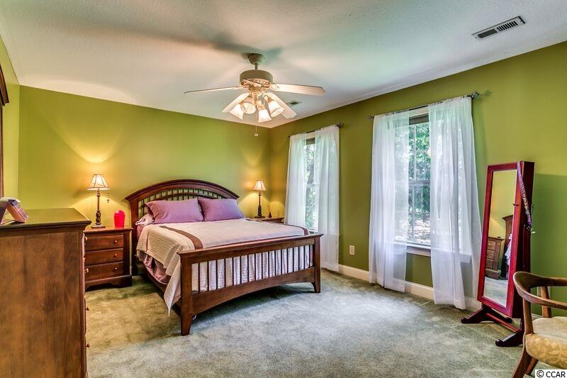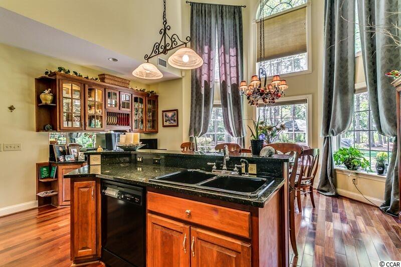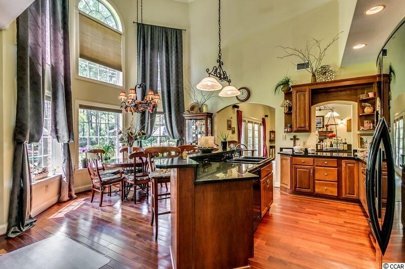 Beautiful, stately home on large wooded lot with tons of privacy. A solid oak, winding staircase welcomes you in the foyer. Large master suite with huge walk-in closet, separate dressing vanity, beautiful tile shower. Solid maple custom kitchen cabinets, rosewood hardwood floors, wood burning fireplace, wet bar and much more. Home features irrigation and security system. Patio is unbelievable with stunning views of the property. Detached workshop with insulation, sheet rock, and attic storage as a plus. Just minutes to Conway with easy access to Myrtle Beach!!