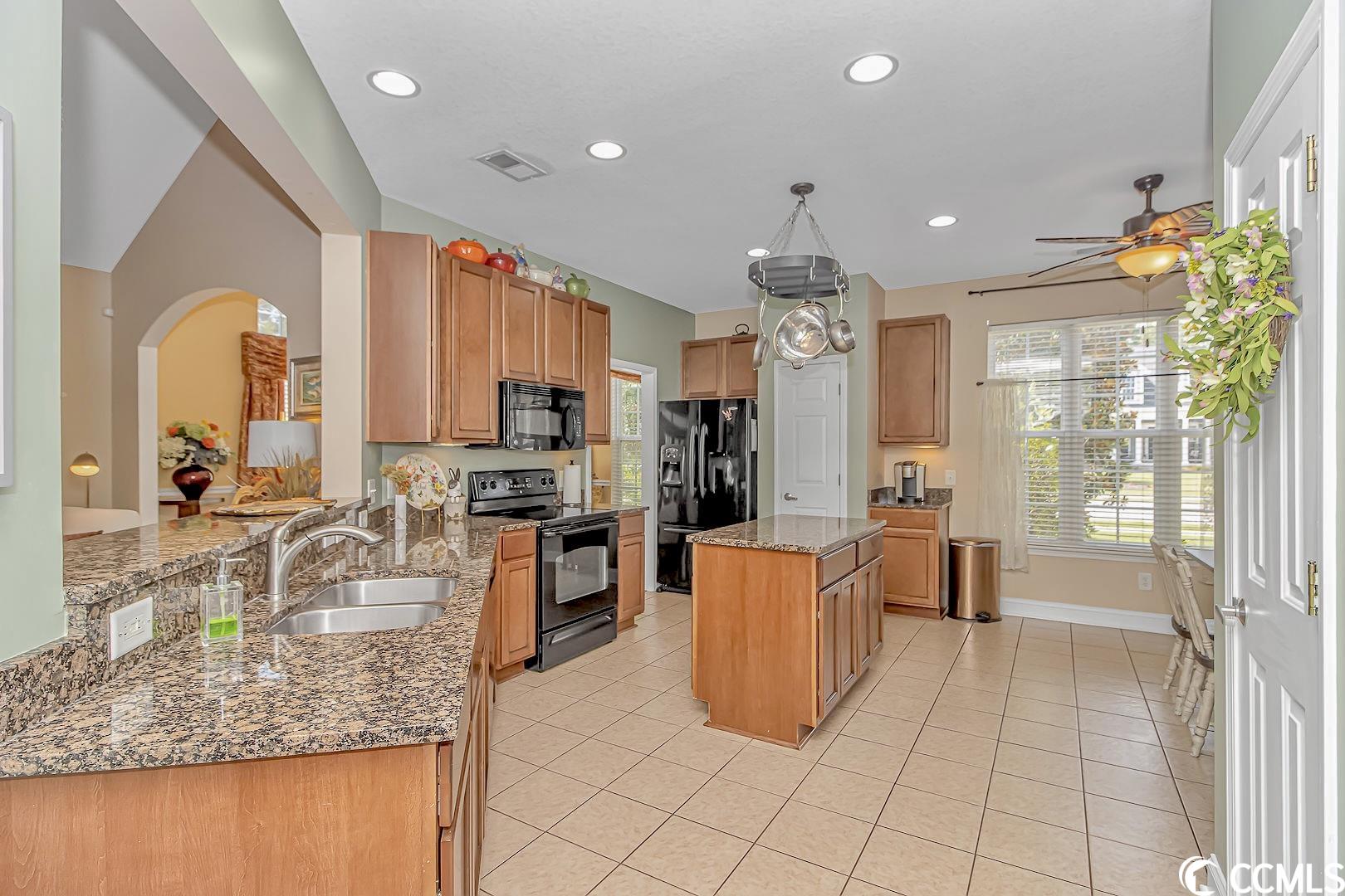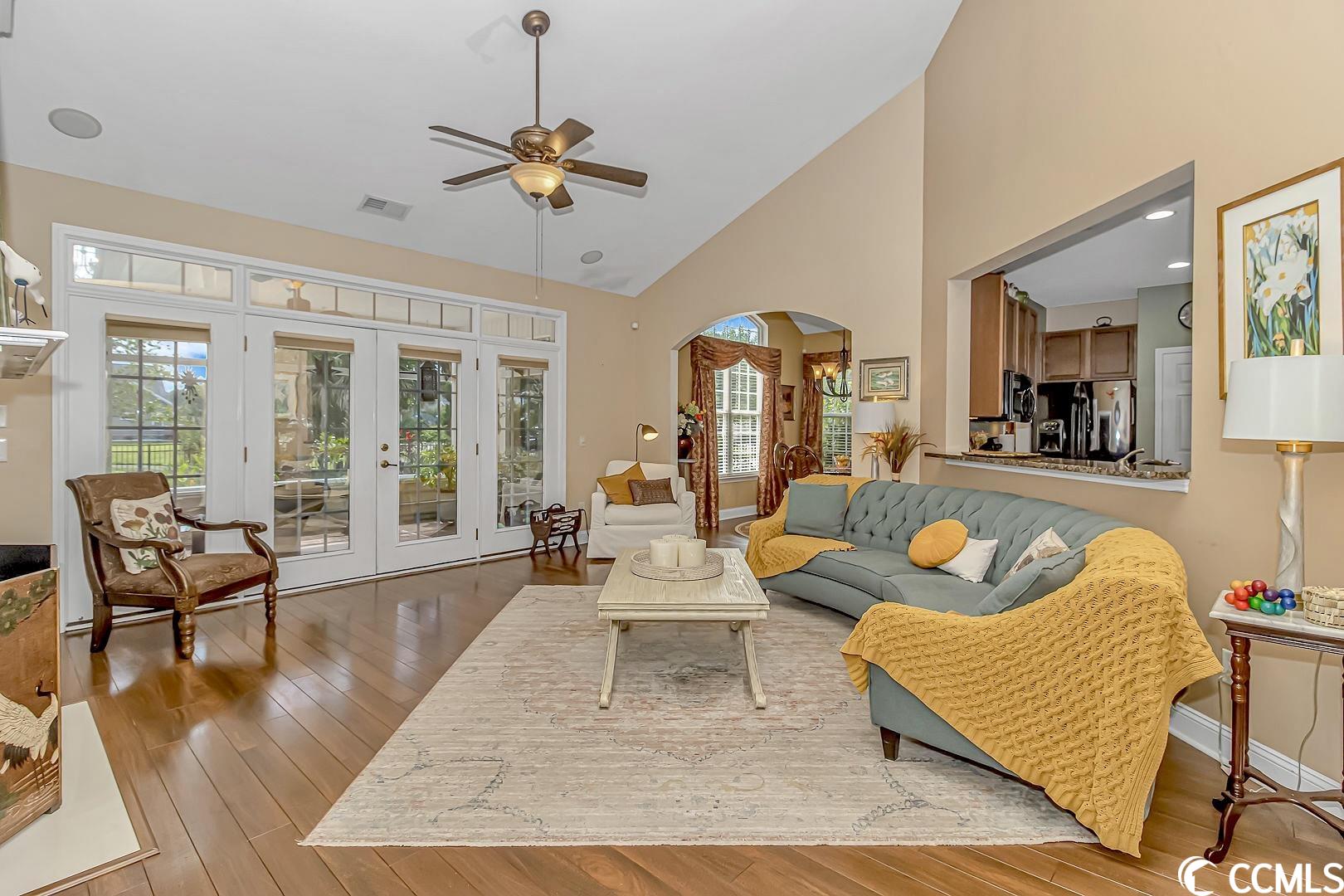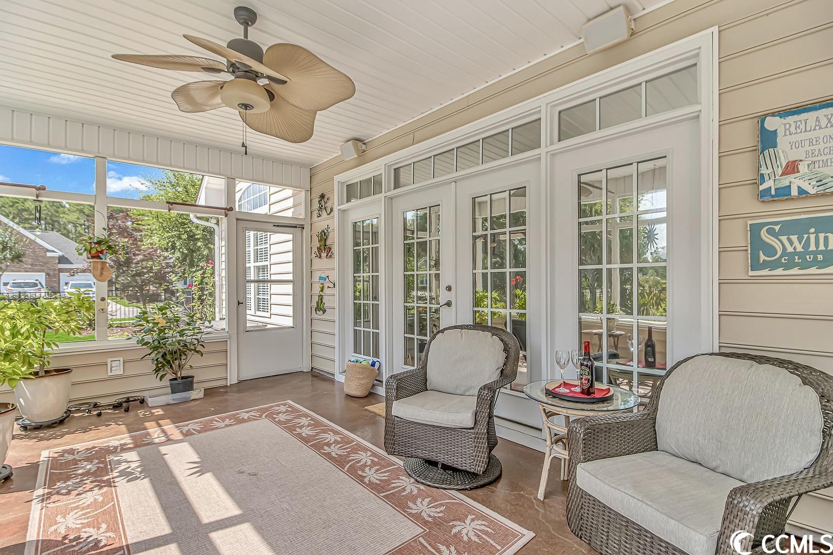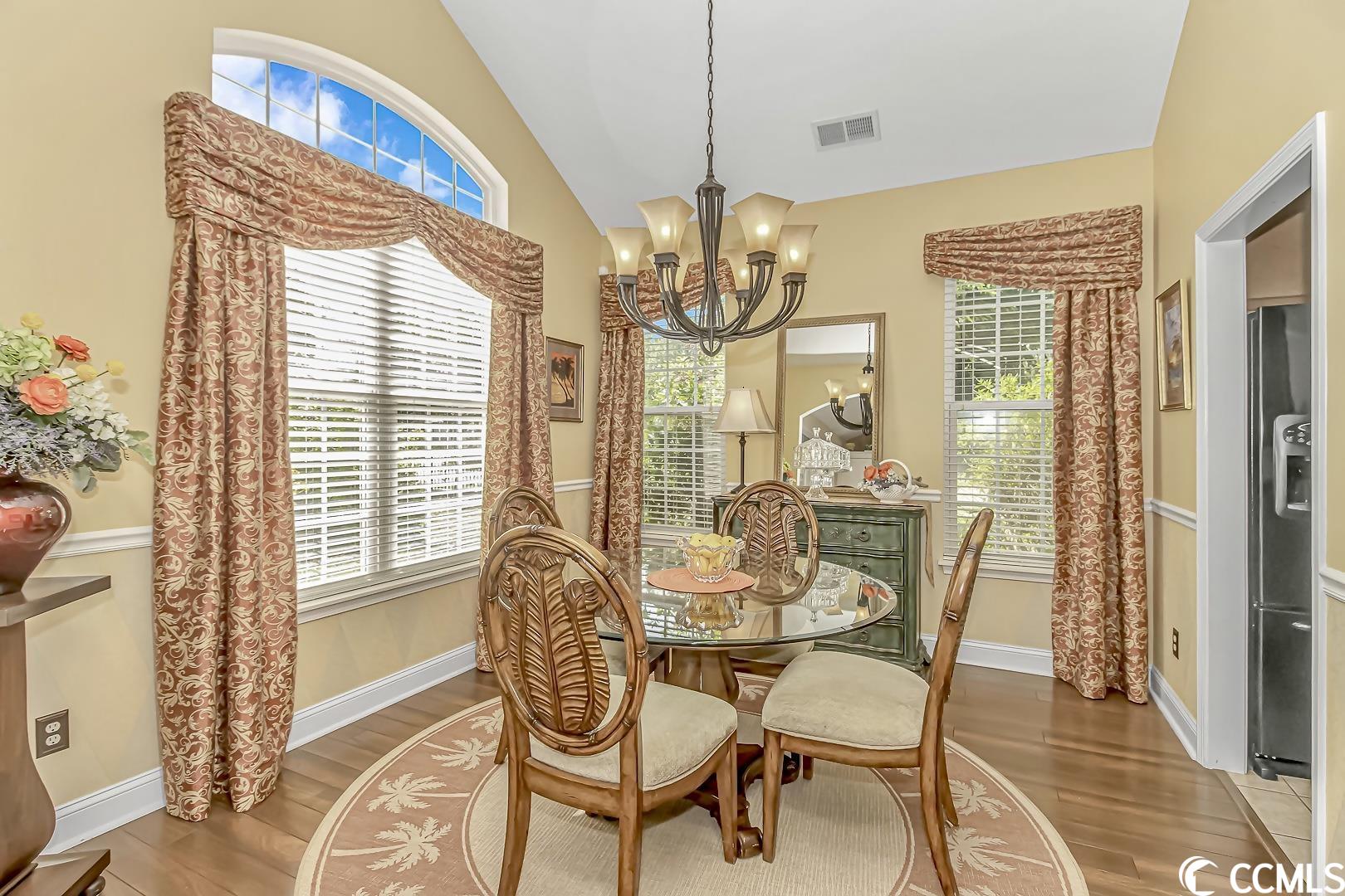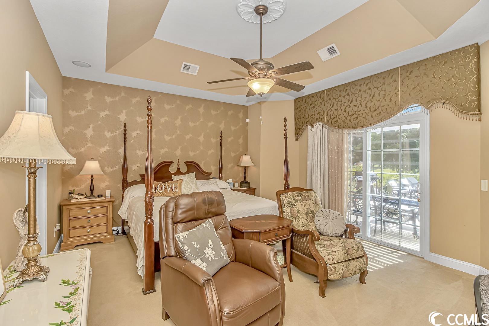 An Outside Oasis with backyard Paradise!!! Absolutely beautiful custom home with 4 bedrooms, 3.5 bath and a 3-car garage. This well appointed, peaceful home is a must see and placed on a corner lot over looking the water. Generous sized kitchen in the center of the home, created for entertaining. Serine master bedroom has a gorgeous walk-in closet with built in cherry cabinetry and is located on the first-floor. The master bath is built for relaxation with a garden tub, a separate shower, and double sinks. Move the party outside by going through the patio located off the family room. The outside is an oasis for anyone. Sit around or play in the saltwater pool and fountains after enjoying a meal under the shaded pergola or screened porch. Fans in every room inside and out to keep the air just right with a dual zone system. Enjoy your music throughout the home with the built in sound system. Sidewalks, stocked ponds, community pool, gym, basketball courts, tennis courts, bocce ball, and adjacent to golf course. Carolina Forest is the place to be with the beach and airport only 20 minutes away. Shopping, dining, community pool, and entertainment all within reach by golf cart. Just minutes to the beach!