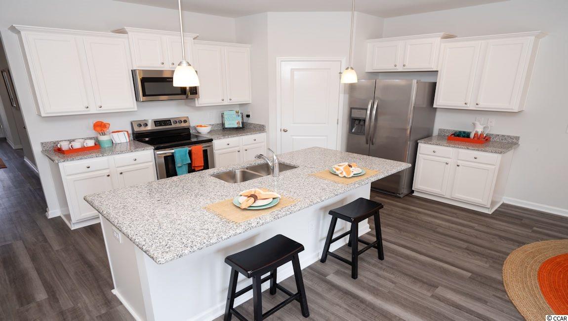 Our Cali plan is the perfect one level home with a beautiful, open concept living area for entertaining. The kitchen features granite countertops, oversized island, 36"" staggered cabinets, a walk-in pantry, and stainless Whirlpool appliances. The large owner's suite is tucked away at the back of the home, separated from the other bedrooms, with double vanity and 5' walk-in shower in the private master bath. Low maintenance laminate flooring throughout the main living areas gives the look of wood with easy care and cleanup! Spacious covered rear porch adds additional outdoor living space. This is America's Smart Home. All of our homes come equipped with an industry leading smart home package that allows you to stay connected with the people and place you value most. *Photos are of a furnished Cali model home. (Home and community information, including pricing, included features, terms, availability and amenities, are subject to change prior to sale at any time without notice or obligation. Square footages are approximate. Pictures, photographs, colors, features, and sizes are for illustration purposes only and will vary from the homes as built. Equal housing opportunity builder.)