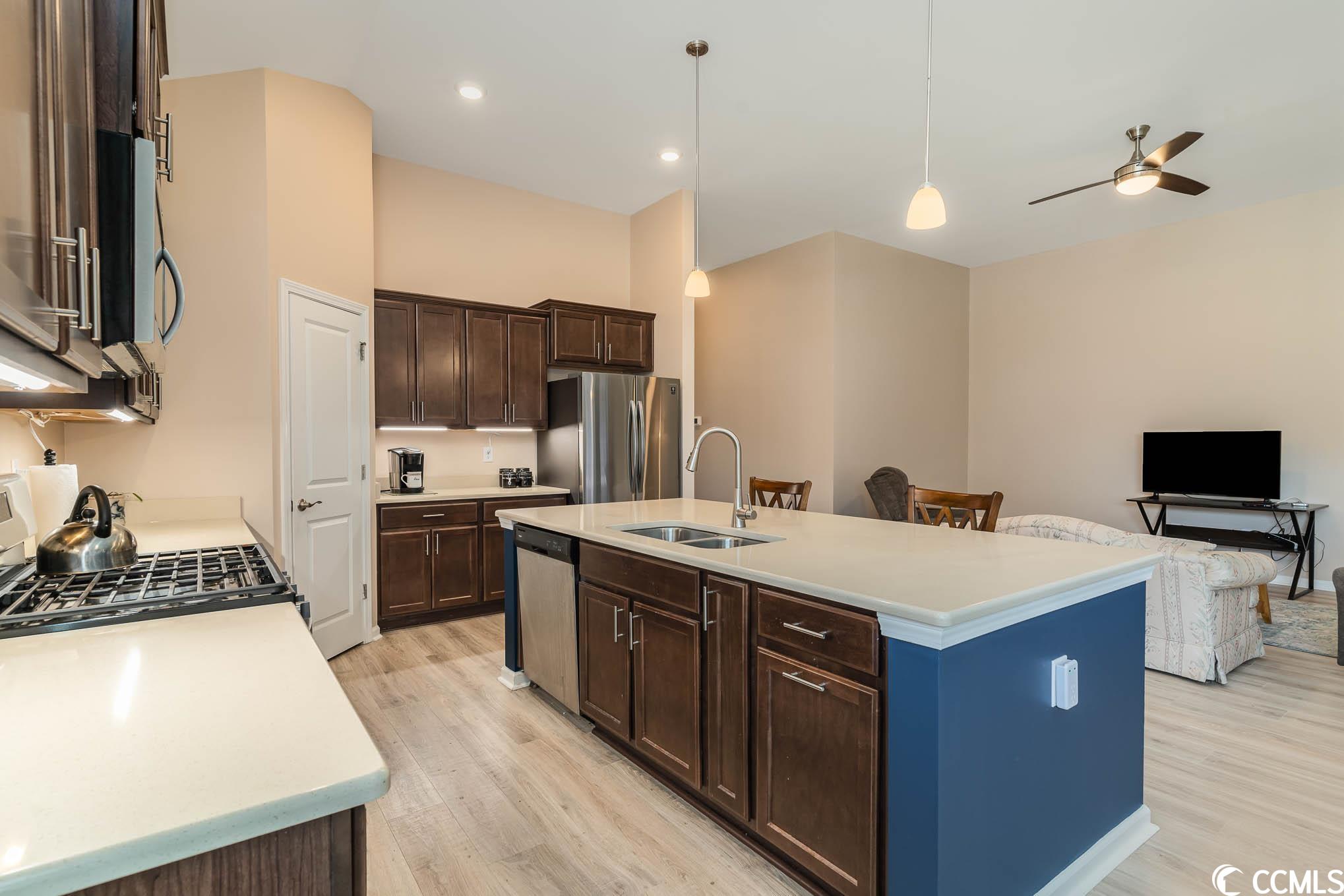 Welcome to your NEW HOME! Why wait for new construction when you can have this LIKE-NEW SPECTACULAR home with curb appeal and upgrades galore?!! How convenient that this house offers a generator, irrigation system, and a ring doorbell system! This home is a smart home and security system capable with access and control from your smartphone anywhere! This spacious 4-bedroom 2 full bath, single-level ranch style home, is nestled on a corner lot in the prestigious natural gas community of Heather Glen in Little River, SC!! This split bedroom floor plan offers so much, including 11 ft. ceilings with an open concept living area, a spacious kitchen with large island, a corner walk-in pantry, stainless steel appliances with a gas range, quartz countertops, and 36"" cabinetry with sliding shelves in lower cabinets and sliding trash and recycle drawer. Ceiling fans in all rooms, gorgeous laminate flooring throughout and tile in the wet areas. Your large private master suite is in the back of the home split from all other bedrooms in the front, and a front bedroom is big enough for a 2nd master bedroom! Plenty of closets throughout with extra shelving installed in them for your storage needs! Your master bath is a dream with upgraded double cultured marble vanities, updated brush nickel faucets, cultured marble 5 ft. shower with rain shower sliding glass doors! Two walk-in closets and a linen closet are in your primary master suite as well! Set the mood with some marvelous dimmer switches in the foyer, kitchen and master bath! And enjoy your morning coffee or afternoon beverage on your cool enclosed back porch with tinted enclosed windows and blinds for privacy! An upgraded added feature on the outside is modern shake siding on the front of the home. Heather Glen has an amenity center that is ""the talk of the town!"" It is literally a playground for everyone to enjoy with a spacious clubhouse and wraparound verandas, a huge sparkling swimming pool, fitness center, fenced dog park, playground area and gardens!! The drive into Heather Glen is a ""nature cruise"" with large old oak trees and various gorgeous shrubs, trees and plants! You are in such a unique location, as you are only minutes from the North Carolina state line, close to Calabash-the seafood capital of the world, and you are in the historical Little River-home of the popular ""Blue Crab Festival,' waterfront dining, casino boats, and the historical Vereen park (which offers walking trails, waterway decks, a recreation facility for parties and beautiful scenery)! You are close to golf courses, restaurants, shopping, AND only minutes to North Myrtle Beach! This is truly your KEY TO PARADISE, and the only thing missing is YOU! Square footage is approximate and not guaranteed. Buyer is responsible for verification.