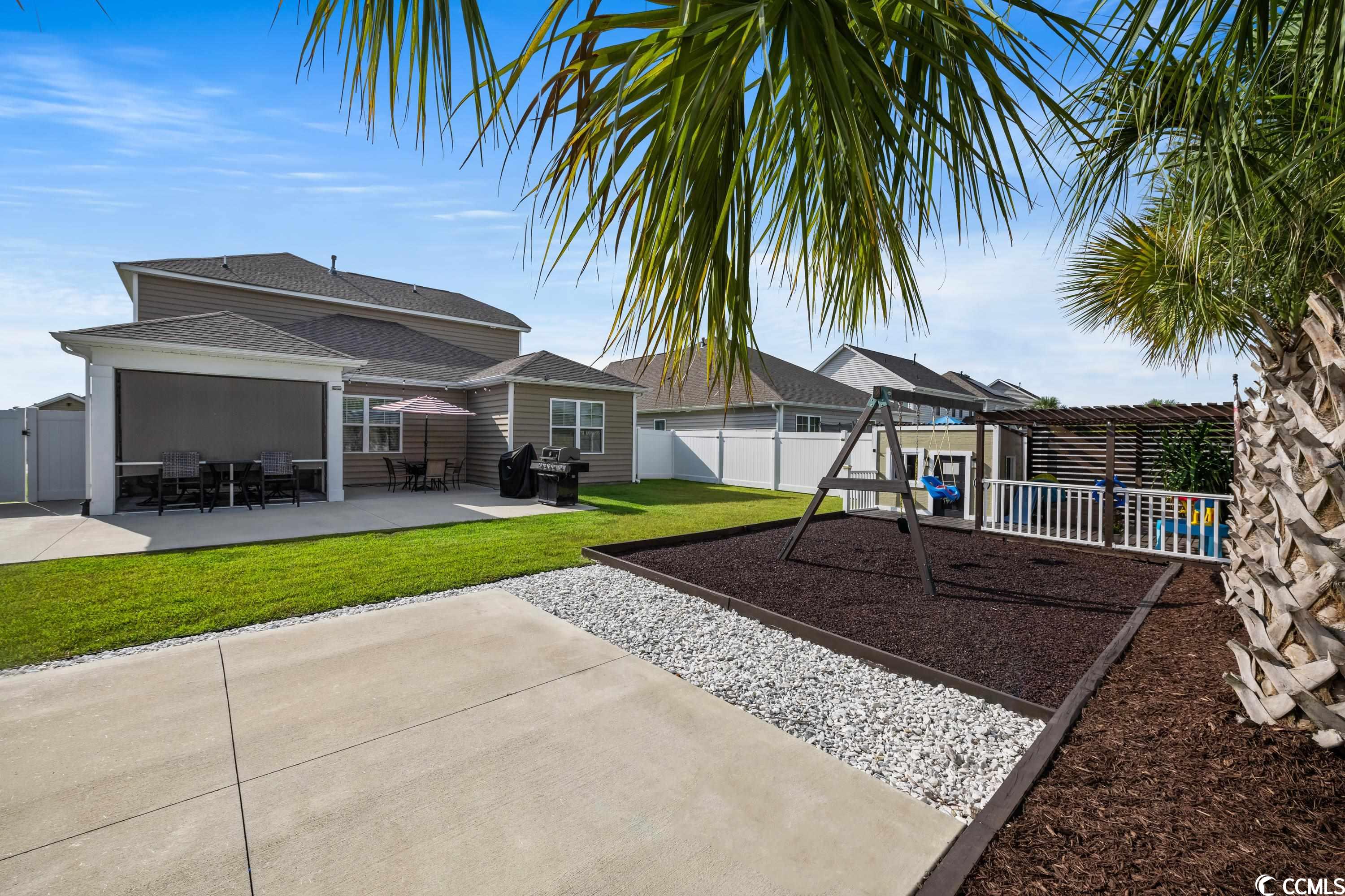 Priced to sell! Welcome to your dream home, where pristine elegance meets modern convenience! This 4-bedroom, 2.5-bathroom gem is a true sanctuary, featuring an array of incredible upgrades and amenities that will exceed your expectations. Entertaining will be a breeze with the huge extended patio, providing ample space for outdoor activities. The playground and multiple palm trees in the backyard add a touch of fun and serenity to the outdoor space. You'll love spending time outdoors on the covered back porch, ideal for sipping your morning coffee or hosting gatherings. Step inside to discover a spacious and immaculate interior. The oversized master bedroom is a true retreat, boasting an extra 120 square feet for added comfort and relaxation. You'll be delighted by the upgraded light fixtures, adding a modern and elegant touch to every room. The smart home package connects your home, allowing you to control various features remotely. The neighborhood is truly exceptional, offering many of amenities for an active lifestyle. Enjoy community pools, a serene 20-acre lake with a fishing pier, pickleball court, sidewalks with lighting for evening strolls, fitness center, community center, and not one but two playgrounds for endless fun. The natural gas community adds another layer of ease to everyday living. Plus, being close to the beach means you can enjoy coastal living whenever you desire. And the best part? Low HOA fees ensure you get all these fantastic amenities! This home truly has it all! Don't miss this opportunity to own a slice of paradise in this wonderful community. Schedule a viewing now to witness the beauty and comfort of this stunning property. Your dream lifestyle awaits!