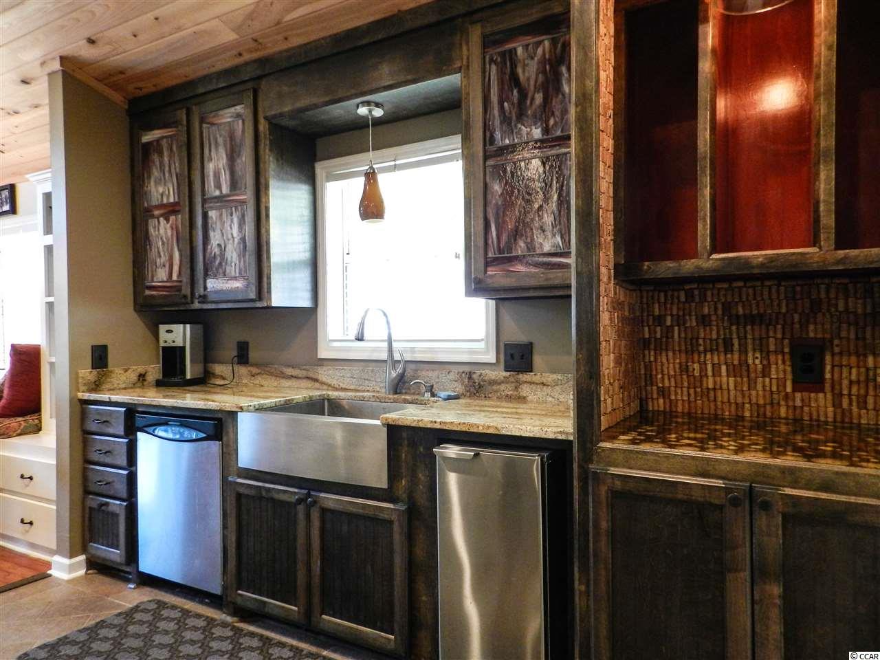 Custom Finishes & Upgrades Galore! In Surfside Beach! Close to Everything! Just a few blocks from the sand & NO HOA! Low maintenance home tastefully renovated with high quality finishes inside & out! Open concept with vaulted ceilings, granite, stainless appliances, modern backsplash, hardwood cabinetry, cypress wood ceilings & wall accents, custom seating & cabinetry in dining area, large pantry & storage galore. Double pane windows, modern lighting, ceiling fans, hardwood & tile throughout. Double closets in both bedrooms. A backyard oasis with plenty of room to entertain, a large deck, solid wood fencing, low maintenance landscaping, private outdoor shower and covered patio attached to garage. Newer metal roof, covered front porch and adequate parking welcome you home. Not too small, not too big and superbly located in Surfside Beach. If youre house hunting with dreams of moving in and enjoying the beach, this home will deliver a lifetime of satisfaction. Come see why this home is a place you can call home forever! This is a half duplex. Information is deemed reliable, but not guaranteed.