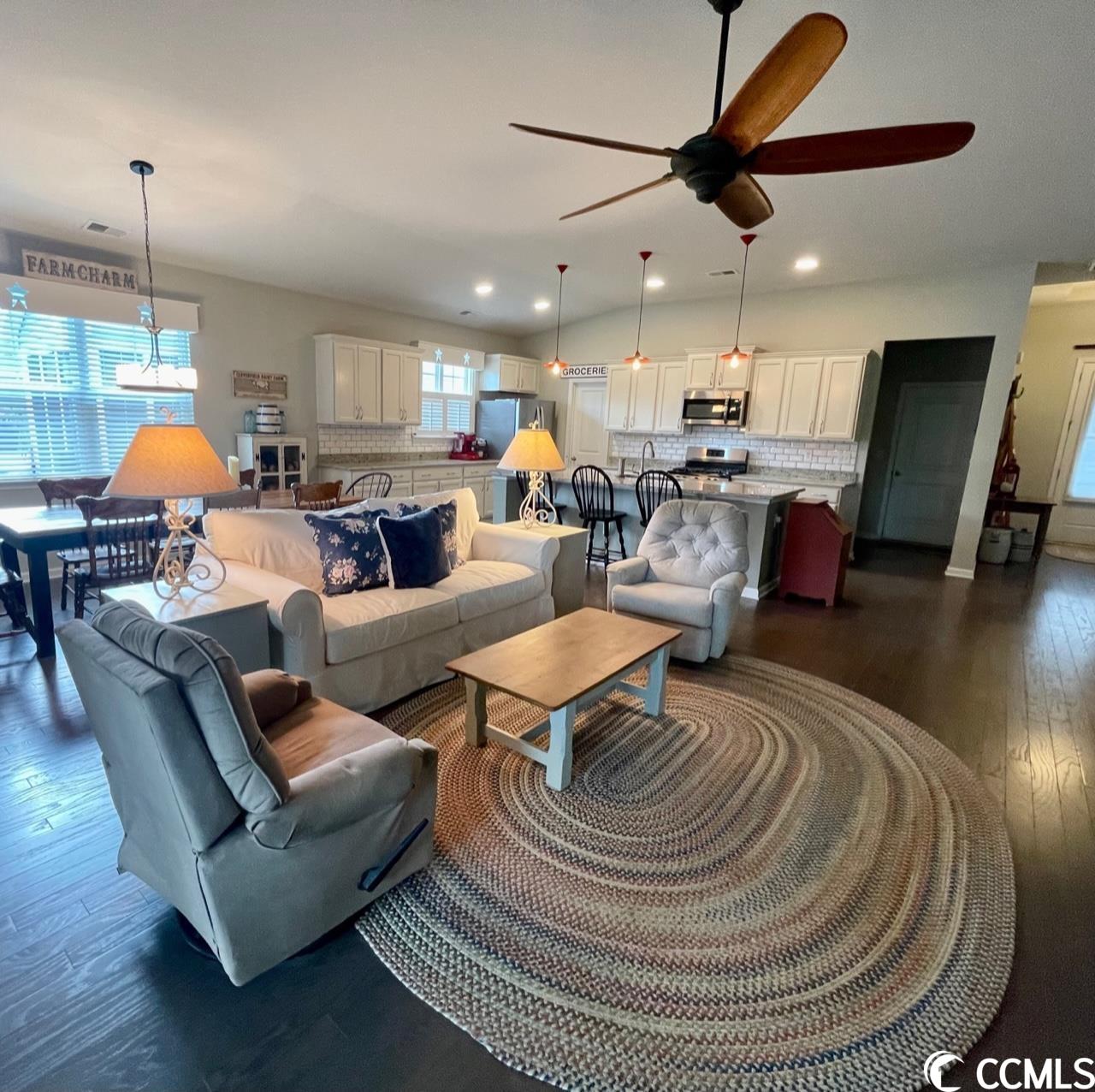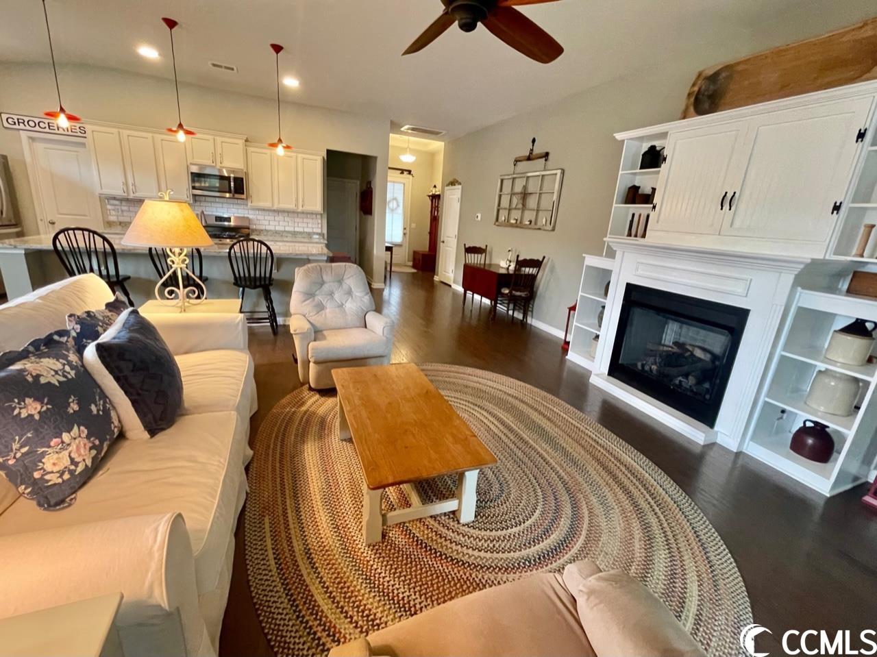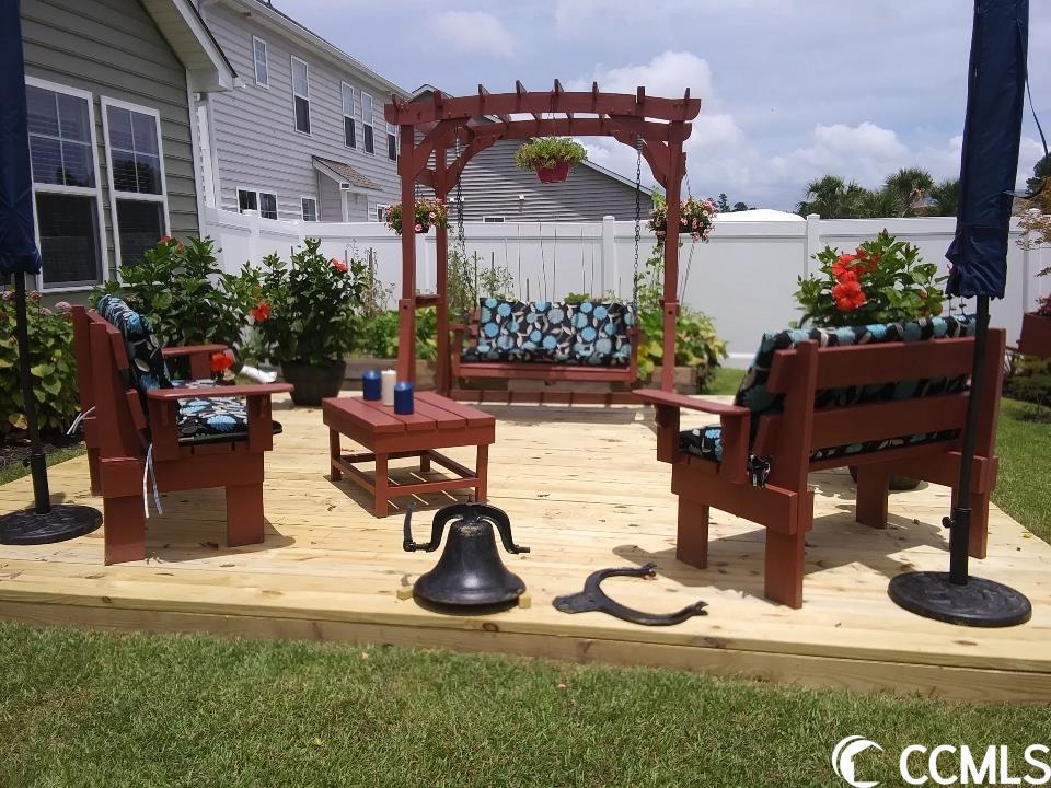 5141 STOCKYARD LOOP, ~FARM AT TIMBERLAKE~ Nestled between Murrells Inlet and Myrtle Beach this Natural Gas Community showcases a 12 acre lake with kayak/fishing dock. Generous pool with pool house, fitness room, playground, sidewalks, and even a pickle ball court. This immaculate home mirrors a model and is a must see. You will fall in love with the open and airy living spaces that are ideal for entertaining and enjoy the privacy of a split bedroom plan. Wood flooring throughout, custom blinds, plantation shutter and custom crafted cornices adorn the many windows that provides an abundance of natural light. A Chefs Kitchen featuring upgraded white cabinets with drawers on the lower cabinets, stainless steel appliances, gas range, subway tile backsplash, granite countertops, upgraded pendant and recess lighting over the sizeable prep island and a large walk-in pantry. The Living Room is open to the kitchen which makes this the perfect home for entertaining and enjoying family. The dining area will accommodate a large farm table for those special dinners! The Great room is centered around a beautiful custom gas fireplace with mantle and built-ins. The Master Suite with tray ceiling, oversized walk-in closet, and a considerable master bath with a transom window, tile flooring, double vanity, large shower with upgraded glass door, water closet and large linen closet. Custom paint throughout, upgraded fans, lighting and fixtures enhance the beauty of this coastal property. Two car garage with a 4' extension, built-in storage, floored attic space with pulldown stairs, and a stationary sink. Natural gas hot water heater, fireplace, range and heat. The 25 x 10 Carolina Room can easily have an hvac split installed or you can open all the recently installed windows and enjoy the fresh air! The Carolina Room overlooks the plush mature backyard with 6' vinyl privacy fence draped with confederate jasmine. Enjoy the peaceful beauty of the weeping willow trees, crepe myrtle, pear tree and hibiscus to name a few while relaxing on 16X16 deck! Did I mention an irrigation system for low maintenance watering. Note that this property extends past the privacy fence- refer to survey. The location is centrally located to all Myrtle beach has to offer- dining, entertainment, shopping, medical facilities, airport and more. Murrells Inlet Marsh Walk, Market Commons, Intra- Coastal Waterway, Ocean, Huntington Beach State Park and Brookgreen Gardens. You could not build a home with all of the upgrades and custom features of this home at this price. If you are looking for turnkey with everything you can imagine... this is your home! Can not wait for a home to be built and want a ton of upgrades? This is your home.