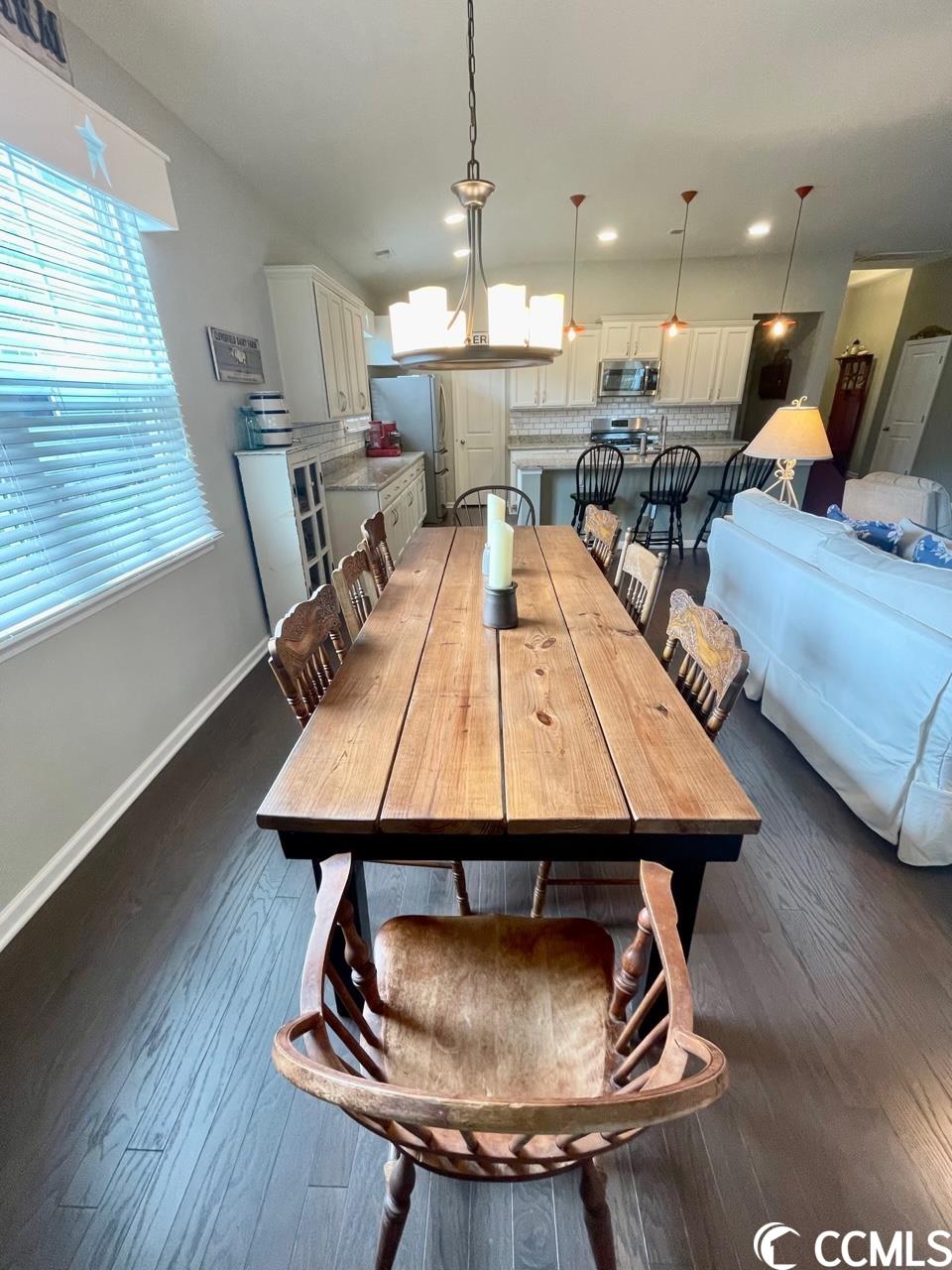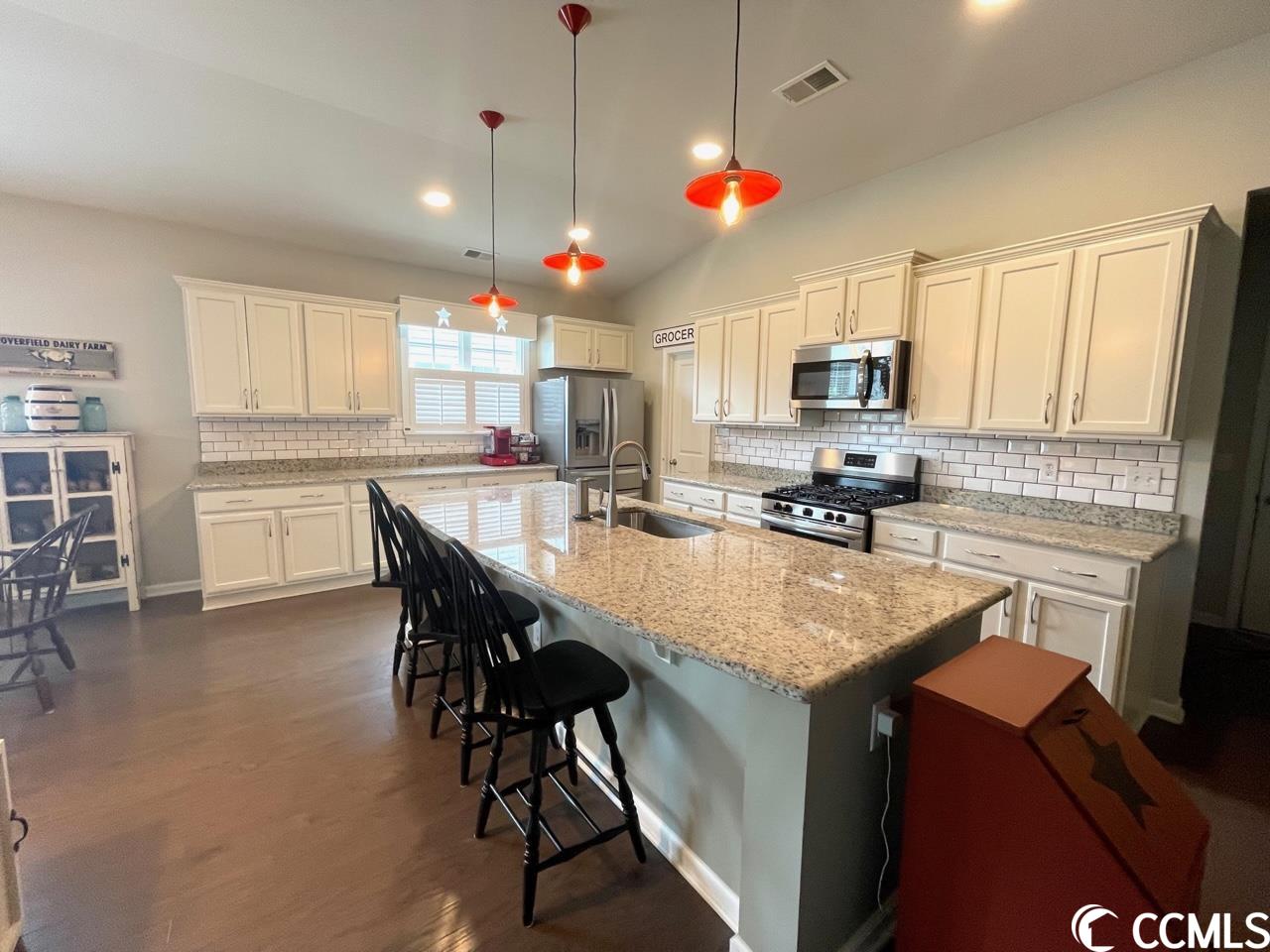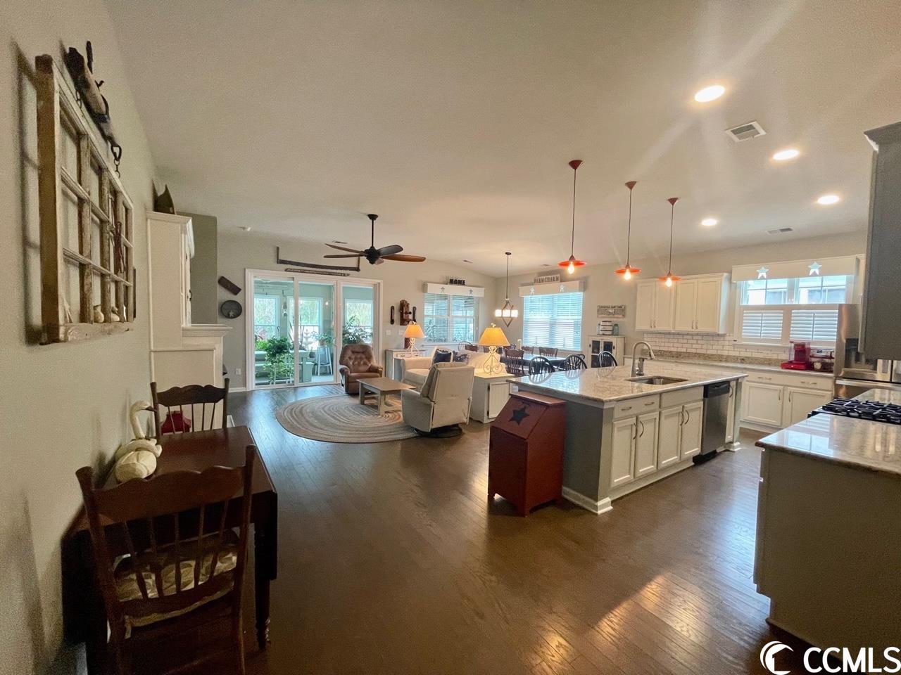 5141 STOCKYARD LOOP, ~FARM AT TIMBERLAKE~ Nestled between Murrells Inlet and Myrtle Beach this Natural Gas Community showcases a 12 acre lake with kayak/fishing dock. Generous pool with pool house, fitness room, playground, sidewalks, and even a pickle ball court. This immaculate home mirrors a model and is a must see. You will fall in love with the open and airy living spaces that are ideal for entertaining and enjoy the privacy of a split bedroom plan. Wood flooring throughout, custom blinds, plantation shutter and custom crafted cornices adorn the many windows that provides an abundance of natural light. A Chefs Kitchen featuring upgraded white cabinets with drawers on the lower cabinets, stainless steel appliances, gas range, subway tile backsplash, granite countertops, upgraded pendant and recess lighting over the sizeable prep island and a large walk-in pantry. The Living Room is open to the kitchen which makes this the perfect home for entertaining and enjoying family. The dining area will accommodate a large farm table for those special dinners! The Great room is centered around a beautiful custom gas fireplace with mantle and built-ins. The Master Suite with tray ceiling, oversized walk-in closet, and a considerable master bath with a transom window, tile flooring, double vanity, large shower with upgraded glass door, water closet and large linen closet. Custom paint throughout, upgraded fans, lighting and fixtures enhance the beauty of this coastal property. Two car garage with a 4' extension, built-in storage, floored attic space with pulldown stairs, and a stationary sink. Natural gas hot water heater, fireplace, range and heat. The 25 x 10 Carolina Room can easily have an hvac split installed or you can open all the recently installed windows and enjoy the fresh air! The Carolina Room overlooks the plush mature backyard with 6' vinyl privacy fence draped with confederate jasmine. Enjoy the peaceful beauty of the weeping willow trees, crepe myrtle, pear tree and hibiscus to name a few while relaxing on 16X16 deck! Did I mention an irrigation system for low maintenance watering. Note that this property extends past the privacy fence- refer to survey. The location is centrally located to all Myrtle beach has to offer- dining, entertainment, shopping, medical facilities, airport and more. Murrells Inlet Marsh Walk, Market Commons, Intra- Coastal Waterway, Ocean, Huntington Beach State Park and Brookgreen Gardens. You could not build a home with all of the upgrades and custom features of this home at this price. If you are looking for turnkey with everything you can imagine... this is your home! Can not wait for a home to be built and want a ton of upgrades? This is your home.