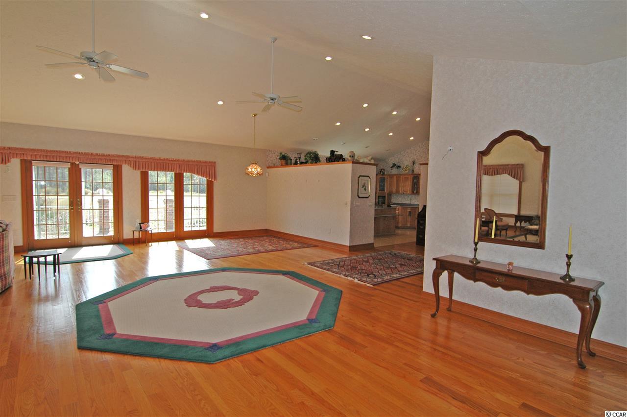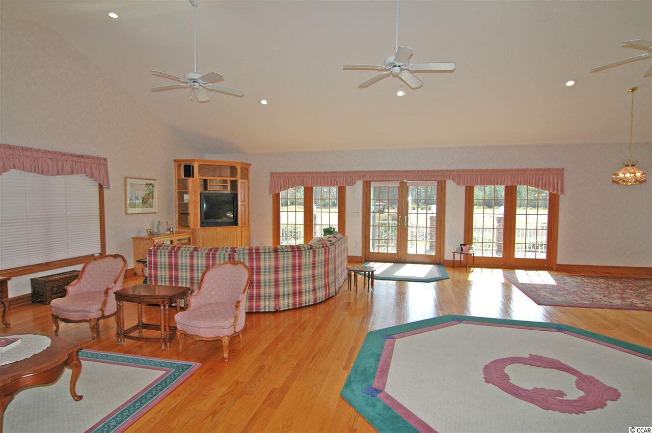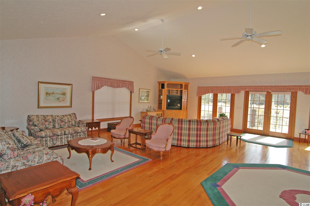 Great all brick home on large lot over one acre in desirable Hagley Estates. This home has great golf course views. If your client is looking for an open floor plan, this is it! Vaulted ceilings,recessed lighting, hardwood floors, attached 2 car garage plus side garage to park your golf cart or boat, and all brick patio. 4 bedrooms, 2.5 baths. The kitchen has solid surface counter tops, large walk-in pantry, and stove was replaced in 2015. Hot water heater installed last week.Very well maintained home located on a quiet street in Pawleys Island with no homeowners association fees. Just minutes to Pawleys Island's fabulous beach! Do not miss this one!