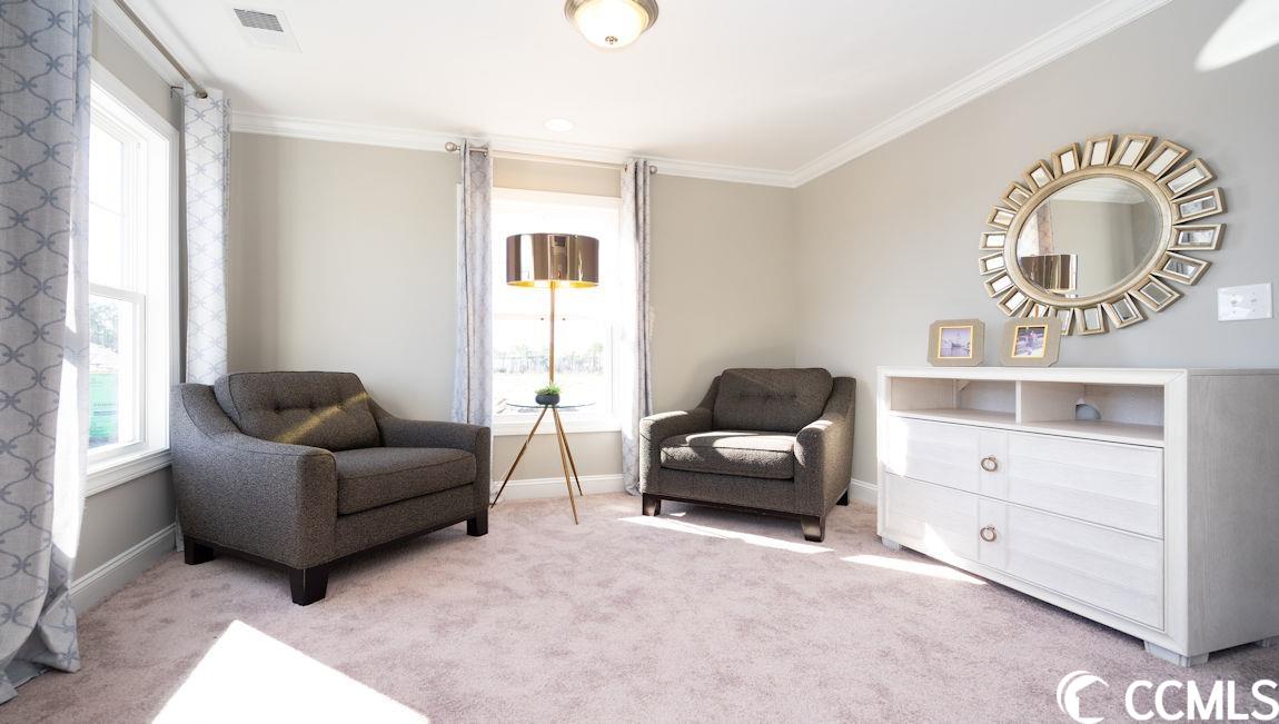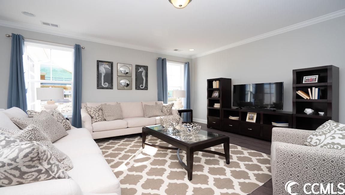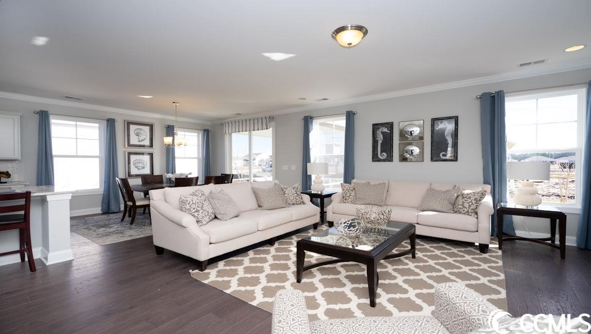 This popular plan brings functionality and style together! Incredible curb appeal is an understatement given the stacked front porches and tall entry door with glass. Once inside, wide plank laminate wood flooring creates an inviting space and numerous windows bring in fantastic natural light. Off the entry is a spacious flex room that would make a great home office or formal dining room. The large gourmet kitchen boasts 36"" cabinetry, quartz countertops, an oversized island, stainless Whirlpool appliances, a walk-in pantry, and a gorgeous Butler's pantry. Sliding glass doors off the dining area leads to the rear screen porch! Spacious bedroom and full bathroom on the first floor is perfect for guests visiting you at the beach. Upstairs you will find the grand primary bedroom suite with a cozy sitting room, huge walk-in closet that connects to the laundry room, and en suite bath with large separate vanities, linen closet, and 5 ft shower! This home is located in the natural gas community in Carolina Forest! The Parks of Carolina Forest is a picturesque setting of ponds, an amazing amenity center, and park of the majestic ""Ten Oaks"" with a walking trail to get to the Carolina Forest library. *Photos are of a similar Harbor Oak floorplan. (Home and community information, including pricing, included features, terms, availability and amenities, are subject to change prior to sale at any time without notice or obligation. Square footages are approximate. Pictures, photographs, colors, features, and sizes are for illustration purposes only and will vary from the homes as built. Equal housing opportunity builder.)