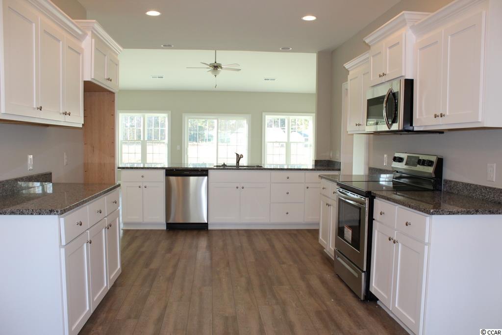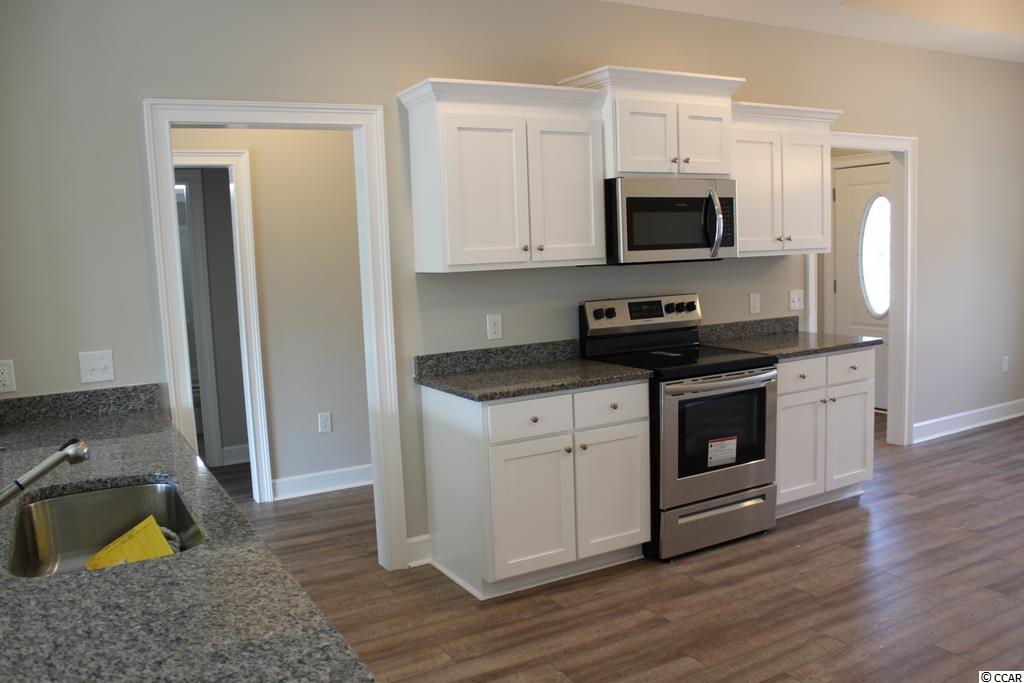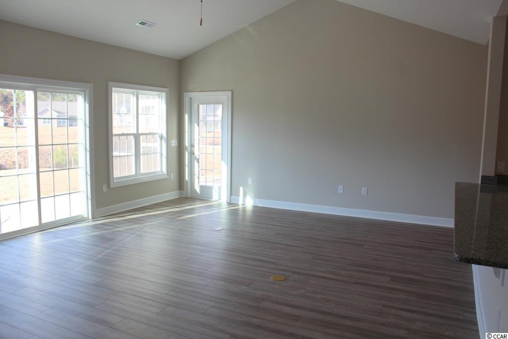 Spacious Hemlock Alt plan features an entry foyer, relaxing front porch, rear screen porch and patio. Dining room with tray ceiling, the living room has an abundance of windows, vaulted ceiling with ceiling fan and 2 electrical floor outlets. The large kitchen has solid white shaker style wood cabinets with crown molding, granite countertops, granite counter height breakfast counter, single bowl sink, stainless steel appliances - microwave, range, dishwasher, and pantry closet. Split bedrooms - Master suite has tray ceiling with a ceiling fan, huge walk-in closet, double bowl sinks in a raised height anity, 5 ft. walk-in shower and a linen closet. Guest bedrooms and bath are on the opposite side of the house. Upgraded waterproof, wood-look luxury plank vinyl flooring in the foyer, living room, dining, room, kitchen and hall. RCM tile in both bathrooms and the laundry room, and carpet in the bedrooms. Upgraded interior trim includes 3 1/4"" casings and 5 1/4"" baseboards. Low E glass windows, energy efficient homes. Spacious finished and painted 2-car garage with a window and garage service door, automatic door openers and pull down stairs to attic storage. Additional concrete added for a sidewalk from the service door to the driveway. Gutters, sodded yard, and irrigation system included. Amazing included features. Easy access to both Myrtle Beach and Conway. Video is for illustrative purposes only and may be of similar house built elsewhere. Square footage is approximate and not guaranteed. Buyer is responsible for verification.