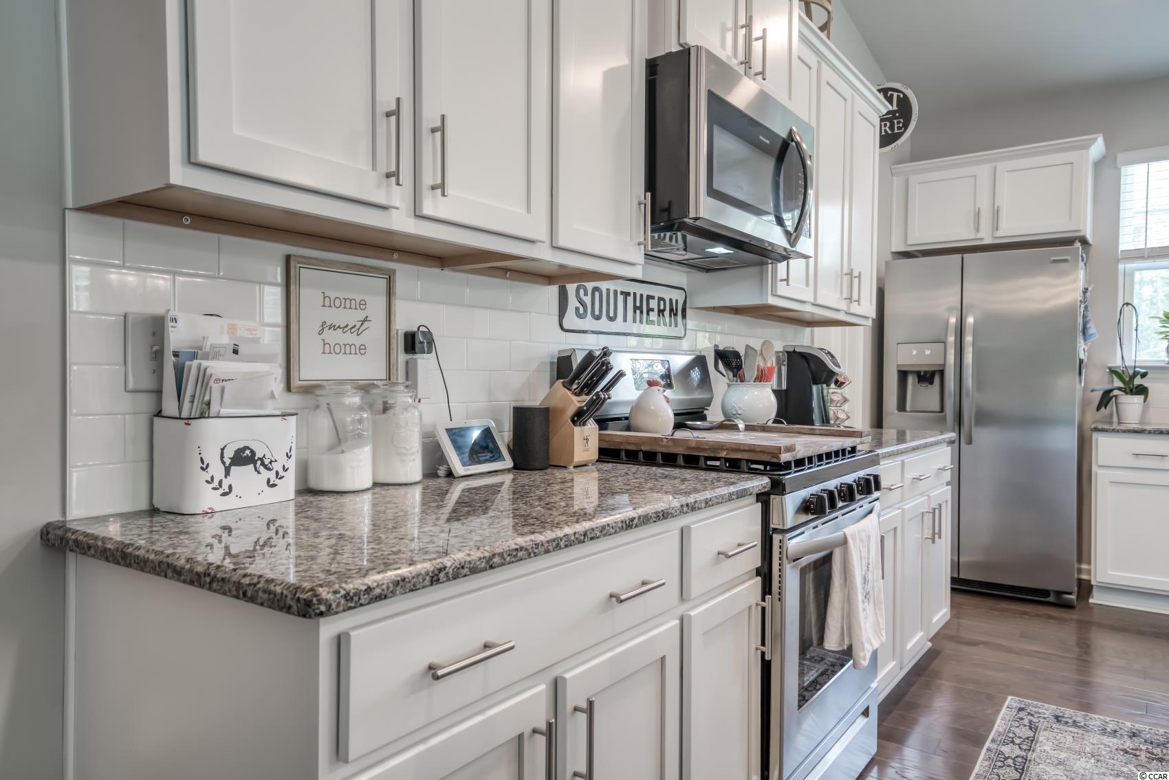 Drop everything and schedule a showing now! This won't last long! This home is located in the natural gas community of The Farm at Timberlake off Highway 707 on the south end of Myrtle Beach, South Carolina. A ten minute drive to the beach, with a recreation facility, playground and community pool! Like new, this three bedroom, two bathroom home was built just two years ago on over a quarter of an acre on a corner lot, and has a six foot privacy fence with a wooded tree line in the back! Upon walking in, you will be stunned by the interior designs! The home features an open concept, high ceilings, all hard surface flooring throughout, stainless steel appliances, granite counter tops, and a covered back patio to enjoy the backyard views! Check out the virtual tour, and stop by and tour in person today so you won't miss a chance!