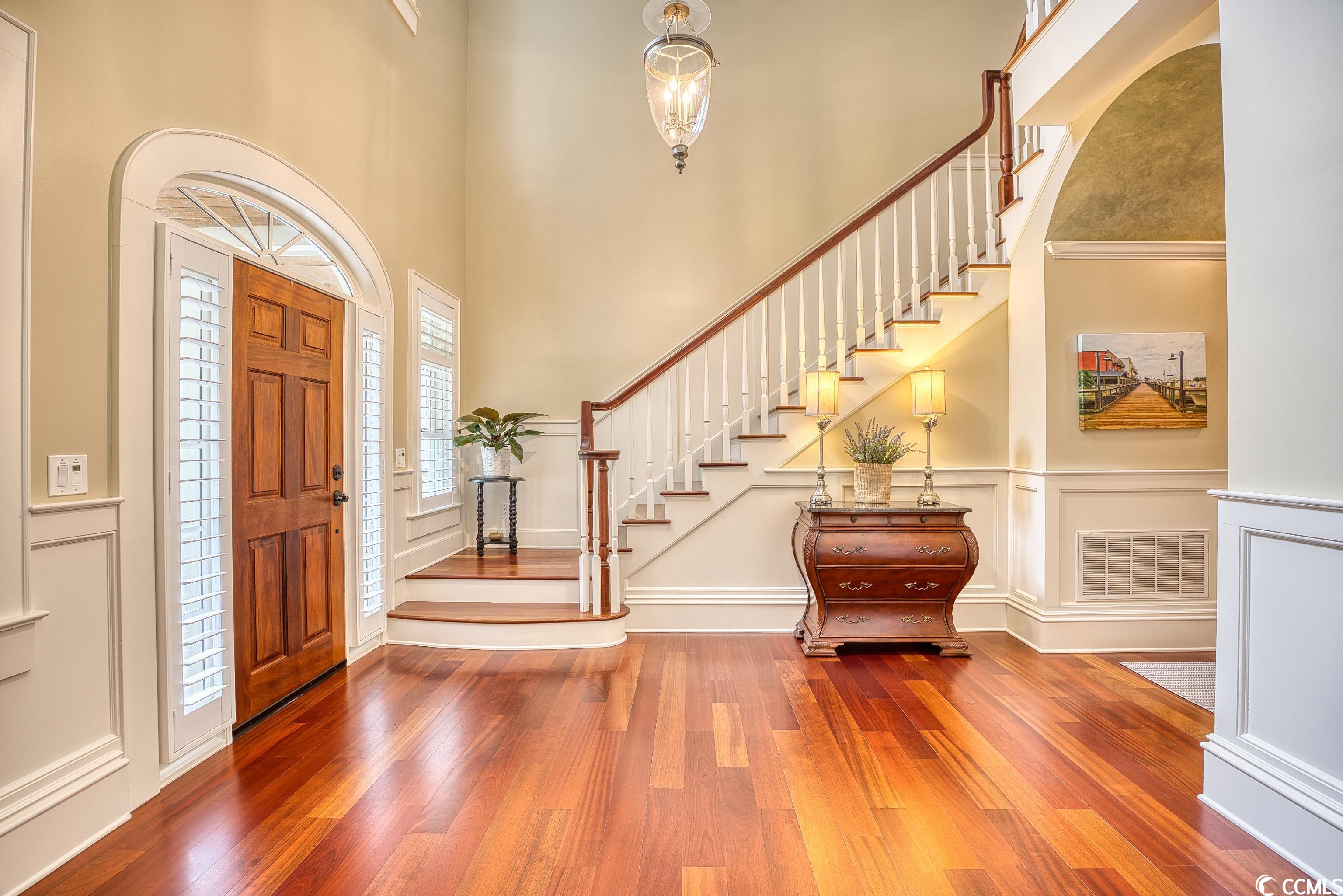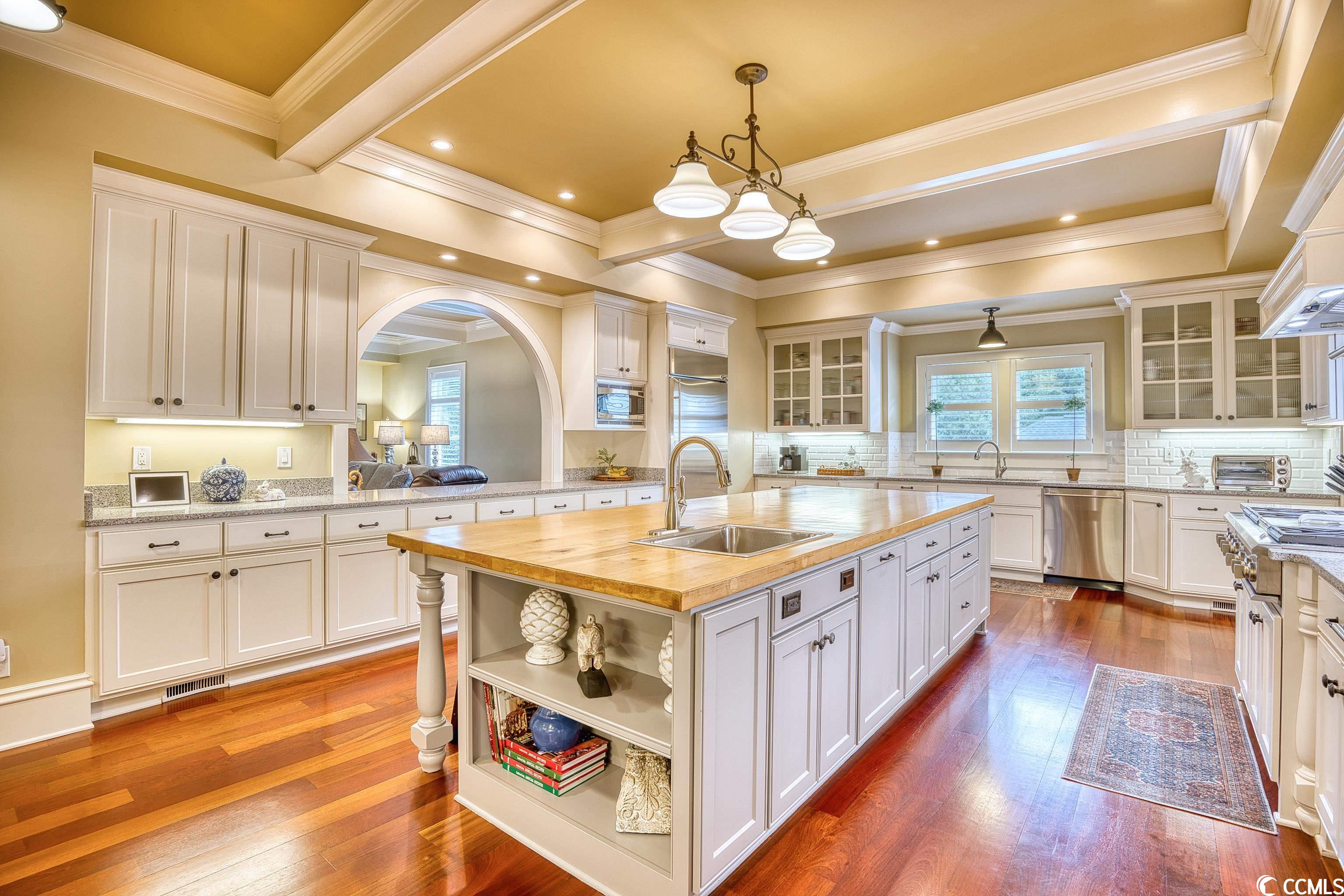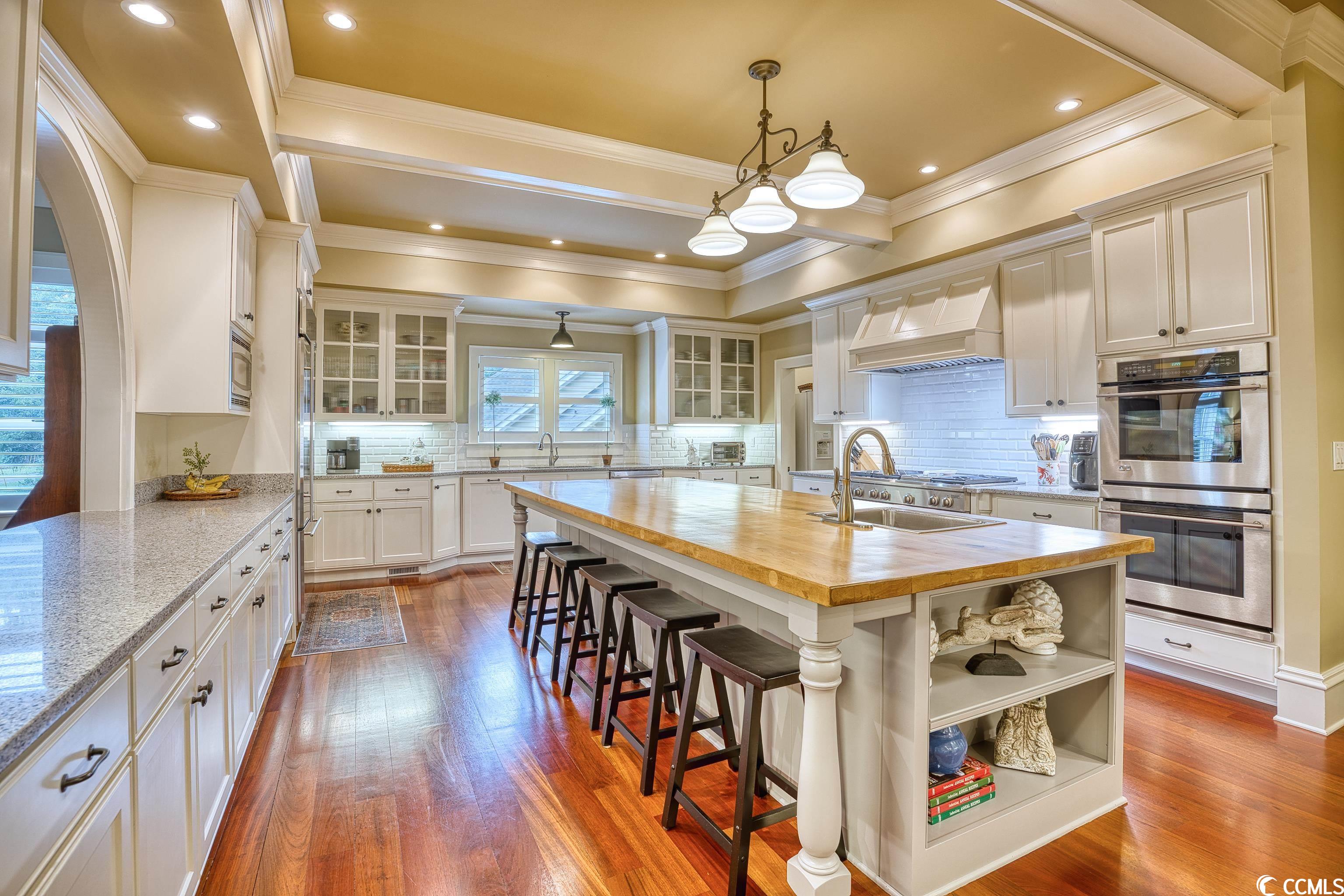 River lovers! Exquisite Luxury Living in Rivergate Estates Pawleys Island Discover the epitome of coastal elegance at 52 Destin Court, an architectural masterpiece nestled on a generous 1.2-acre lot with a boat slip on the Intracoastal Waterway in the coveted Rivergate Estates of Pawleys Island. This splendid residence offers a harmonious blend of sophistication, space, and natural beauty, all within quiet community. Step into an open-concept haven that seamlessly integrates the living, dining, and kitchen areas. Towering windows welcome abundant natural light and provide serene views of the surrounding landscape, creating a perfect atmosphere for both relaxation and entertainment. The open floor plan offers one of the largest kitchens in its class with the centerpiece being a spacious twelve foot island that seats five comfortably. The kitchen over looks the family room that features a coffered ceiling and gas fireplace centered between large cabinets and bookshelves. A sanctuary of comfort and convenience, this grand home boasts four thoughtfully designed bedrooms, with the master suite on the main level featuring a large walk in closet and spacious en-suite bathroom with jacuzzi tub and steam room shower. 3 additional bedrooms and 3 bathrooms upstairs. Two additional half baths ensure privacy and functionality for both residents and guests. The ground floor includes a room used as a 5th guest bedroom. Additionally, there is a shop, workout room, office and a large game room featuring a wet bar. An elevator provides easy access to all levels. Additional features include gas tankless water heater, stove and fireplace supplied from an in-ground 500 gallon propane tank. Lawn irrigation is via a shallow well pump. Storage space is this homes best kept secret. Three door garage is a 4 car garage in disguise as one bay is 38 feet deep. Under the front porch is a 8 x 48covered storage room for all your yard tools and toys. Enjoy a sense of seclusion and security while still being part of a vibrant community. This home is situated on a lush 1.2-acre lot on a quiet cul de sac and is one of only 14 lots in the Rivergate Estates community. Embrace the coastal lifestyle with your own boat slip on the Intracoastal Waterway with a 10,00lb rated lift with remote control that is capable of handling a boat up to 25 feet. Dock has a gazebo, fish cleaning station and refrigerator. Dock is 19ft deep at low tide and has a 110v power outlet and locker for storage. Experience the pinnacle of Lowcountry living at 52 Destin Court, where every aspect of luxury and comfort converge seamlessly. Schedule your private tour today to witness firsthand the splendor of this remarkable residence.