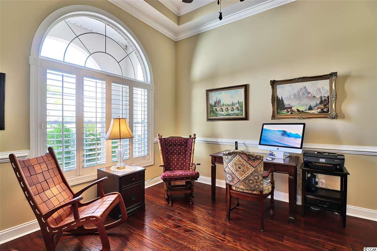This is your opportunity to own a beautiful custom home in the gated Oak Pointe section of Barefoot Resort. The all brick home was built in 2011. There is a transferable golf membership to the Norman, Love and Fazio Golf Courses. As you walk through the front door, you immediately notice the extravagant detail placed in the moldings, tray ceilings, and chair rail. With wide hallways and larger rooms, this open floor plan is spacious yet inviting. Future homeowners will have ample privacy with plantation shutters throughout the home. The eat in kitchen is equipped with a gas range, double ovens, and granite countertops inviting friends and family to gather around. The kitchen overlooks the expansive family room with large ceramic tile floors and a gas fireplace. Double doors open to the covered patio that leads to the elongated pool. The left wing of the home is made up entirely of the master bedroom and en suite. The room features his and her walk in closets, tray ceilings, and extravagant molding. The master bathroom is fitted with a walk in roman shower, featuring a rain head and multiple shower faucets. Two of the three guest bedrooms are located on the main floor. The oversized rooms have spacious closets and hand scrapped hardwood floors. The two rooms share a generous sized bathroom with a large granite vanity and oil bronzed fixtures. An oversized garage is attached to the home that comfortably fits two cars. The area is heated and cooled with ample storage.