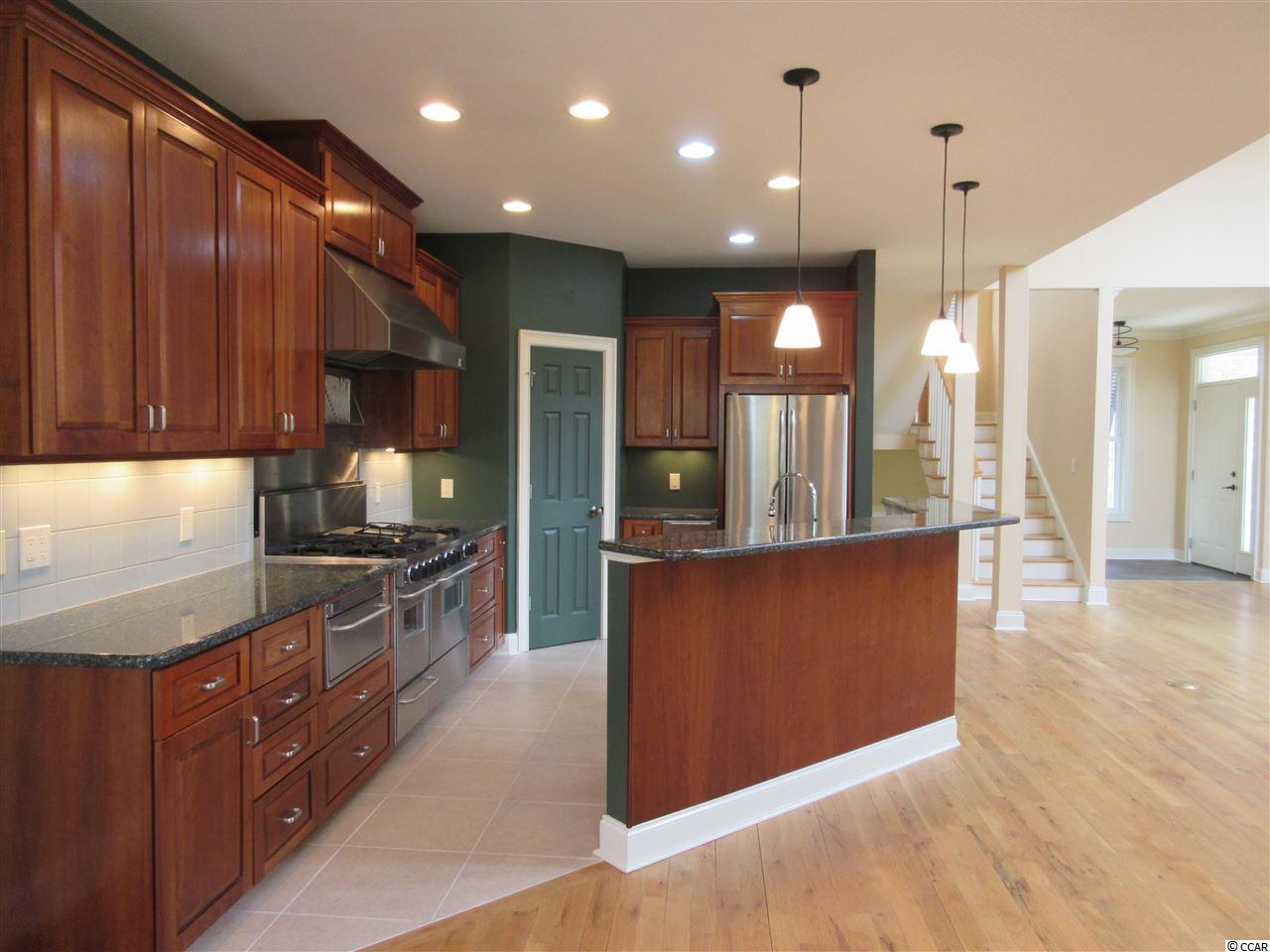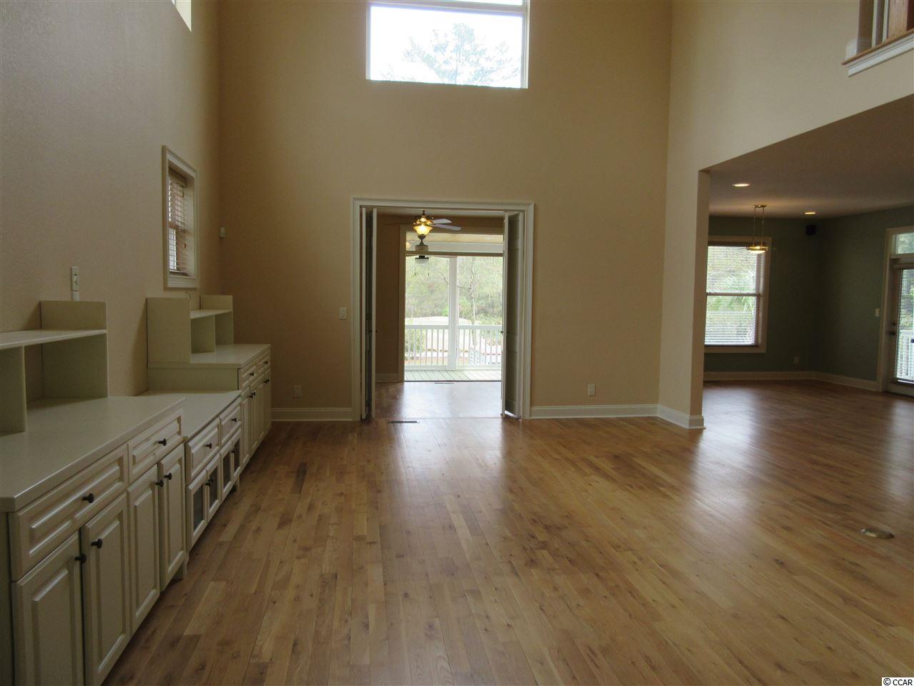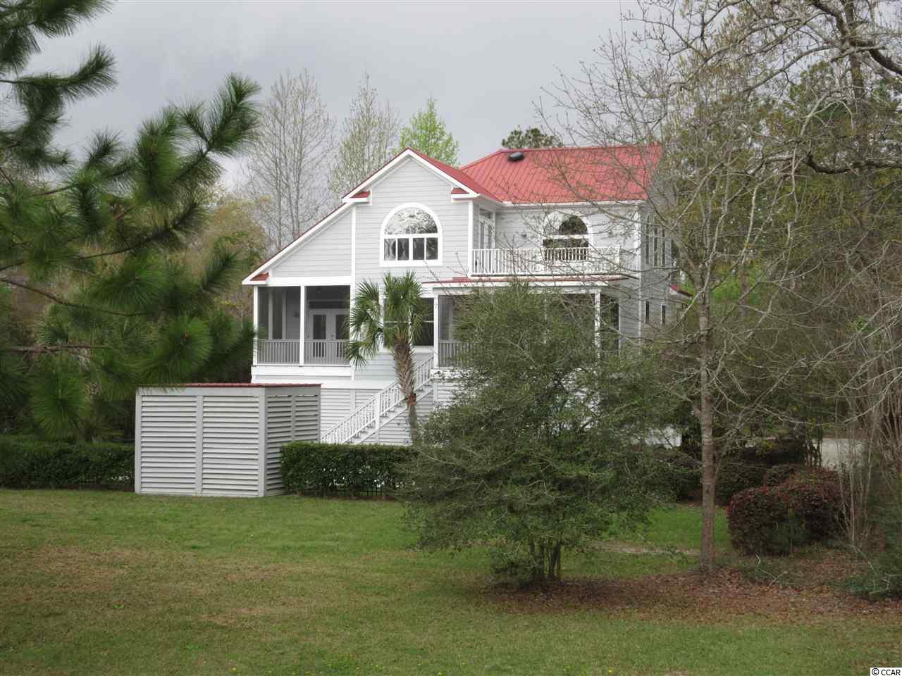 Southern living at its best can be found in this contemporary raised beach house situated on a lush half acre lot overlooking the green & pond of The Founders Club golf course. The lower level boasts a three car garage with extra storage, an in ground swimming pool, a home office, a guest bedroom and a half bath. An elevator will whisk you up to the heart of this quality built home. Enjoy the fabulous views from every room on the main level. The open living room has a soaring ceiling with a unique double ceiling fan and custom cabinetry to conceal all your hi tech gadgets. The Carolina room is situated off the living room and continues out on to a screen porch offering a bird's eye view of the golf course. The architectural windows flood the home with wonderful natural light. The kitchen is equipped with a stainless steel 5 Star gourmet gas range, Bosch dishwasher, GE refrigerator plus a warming oven and separate ice maker. Additional features include the granite counter tops, custom cabinets, large pantry and breakfast bar. The dining area opens to its own quiet screen porch overlooking the pool. Included on this level are two more guest rooms with their own baths and an additional half bath. Escape to the top floor of this beautiful home into a private master suite offering premier vistas of the property, pond & golf course from your personal balcony. Wash away the stress of the day in the tiled shower with dual controls & shower heads. Custom cabinets offer plenty of storage. Maintenance free living can be yours with the metal roof and hardi-plank siding. Live just minutes from the beautiful blue Atlantic & Pawleys Island beaches, shopping, medical facilities and restaurants galore.