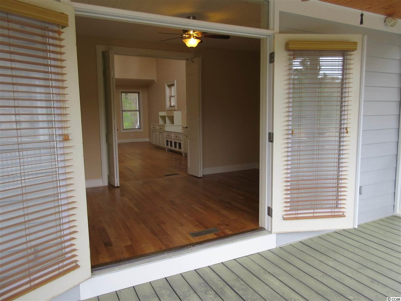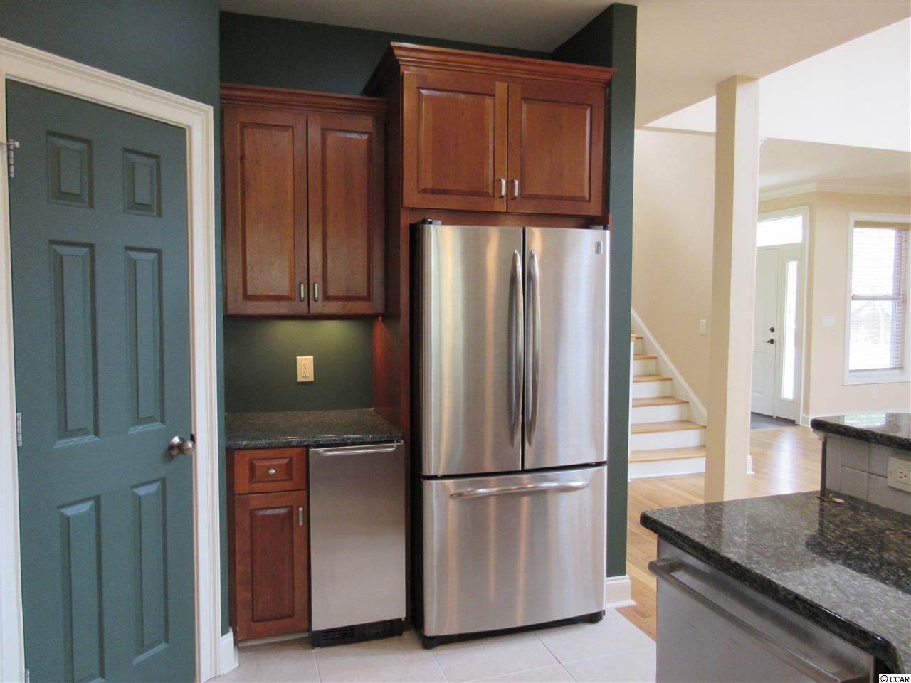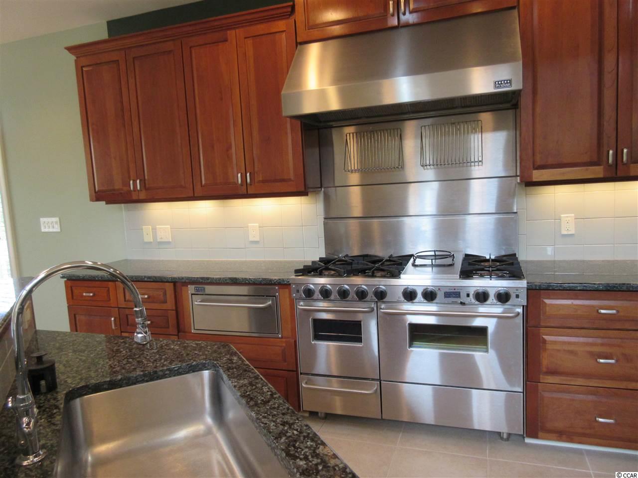 Southern living at its best can be found in this contemporary raised beach house situated on a lush half acre lot overlooking the green & pond of The Founders Club golf course. The lower level boasts a three car garage with extra storage, an in ground swimming pool, a home office, a guest bedroom and a half bath. An elevator will whisk you up to the heart of this quality built home. Enjoy the fabulous views from every room on the main level. The open living room has a soaring ceiling with a unique double ceiling fan and custom cabinetry to conceal all your hi tech gadgets. The Carolina room is situated off the living room and continues out on to a screen porch offering a bird's eye view of the golf course. The architectural windows flood the home with wonderful natural light. The kitchen is equipped with a stainless steel 5 Star gourmet gas range, Bosch dishwasher, GE refrigerator plus a warming oven and separate ice maker. Additional features include the granite counter tops, custom cabinets, large pantry and breakfast bar. The dining area opens to its own quiet screen porch overlooking the pool. Included on this level are two more guest rooms with their own baths and an additional half bath. Escape to the top floor of this beautiful home into a private master suite offering premier vistas of the property, pond & golf course from your personal balcony. Wash away the stress of the day in the tiled shower with dual controls & shower heads. Custom cabinets offer plenty of storage. Maintenance free living can be yours with the metal roof and hardi-plank siding. Live just minutes from the beautiful blue Atlantic & Pawleys Island beaches, shopping, medical facilities and restaurants galore.