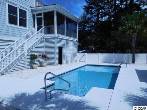 Southern living at its best can be found in this home situated on 1/2 acre lot overlooking the Founders Club golf course. The lower lever features a three bay garage with larger workshop area and plenty of storage and two climate controlled rooms which can be 4th & 5th bedrooms, den, craft rooms, etc, along with a half bath. An elevator will whisk you up to the heart of the quality built home. Here you will find an open floorplan with living room, Carolina room, kitchen, dining area, and 2 screened porches, all of which overlook the pool and golf course. There are also two bedrooms, both with private baths. The master bedroom and bath with dual shower heads and its own water heater occupy the upper floor along with a private sundeck. The saltwater pool is surrounded by stone decking. There are 3 heating and cooling zones and the 2-story tall living area has remote controlled blinds. There is so much to this home that you have to see it to appreciate. the square footage is approximate and not guaranteed. The buyer is responsible for verification.