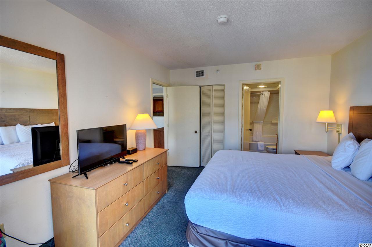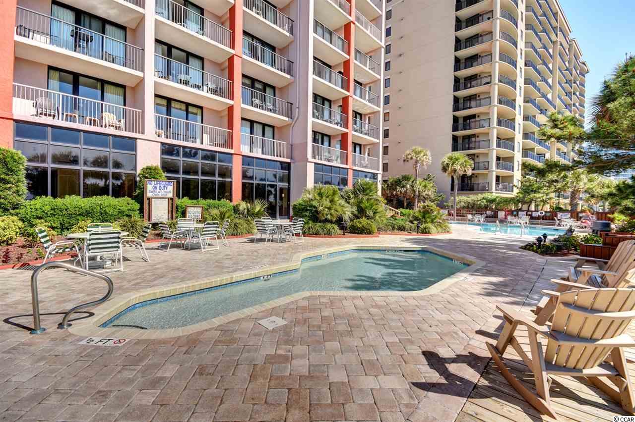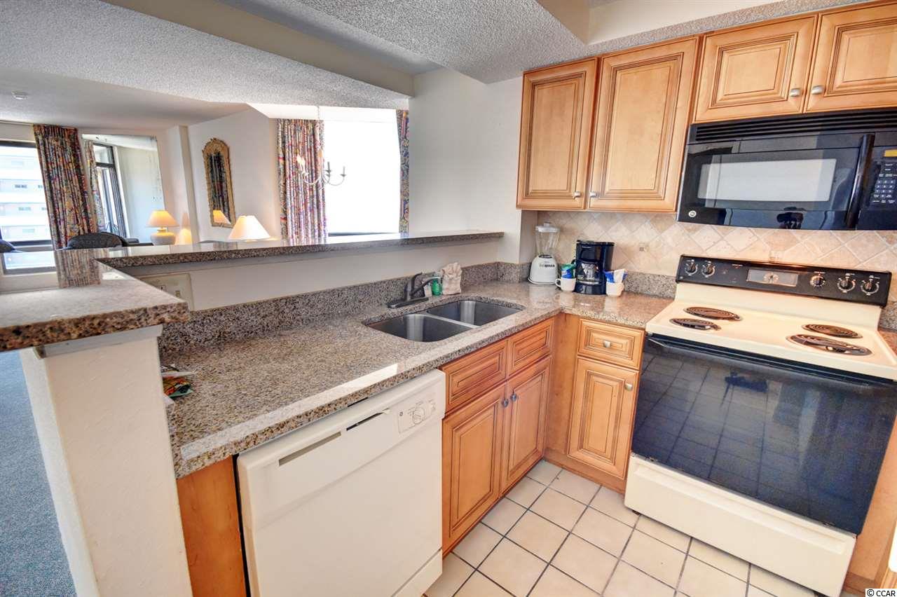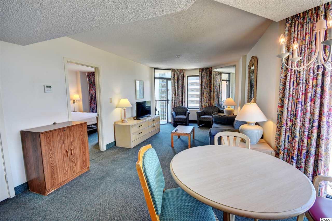 Your gorgeous beach retreat is located along Myrtle Beach's Golden Mile in the less crowded Cabana section, with popular restaurants like Flamingo Grill and Mr. Fish within easy walking distance. This 10th floor condo features two private bedrooms each with their own bathroom along with a stacked washer/dryer conveniently in the unit. Sunlight pours into this luxurious condo, where upscale furnishings offer a serene spot to kick back and unwind. In the well-equipped kitchen, granite counter tops and updated cabinetry will delight the chefs in your party. Relax with your morning coffee at the three-person breakfast bar or enjoy the breeze out on the balcony. The master bedroom has a heavenly king-size bed and balcony access. The second bedroom is detailed with two full-size beds and a separate bathroom. Beach Colony Resort's impressive amenities are just moments away. Choose to swim in multiple heated pools, hang out at the swim-up bar, take a trip along the lazy river, or soak in the hot tubs. Beach Colony also has a full gym, racquetball, and a game room. Extra perks for this condo include unassigned garage parking for two vehicles, an in-unit washer/dryer, and complimentary Wi-Fi. This resort located in the Heart of Myrtle Beach is just minutes away from the Best Shopping, Dining, Entertainment, and Attractions that the Grand Strand has to Offer. You must check this condo and resort out yourself,so make an appointment for your private viewing today!