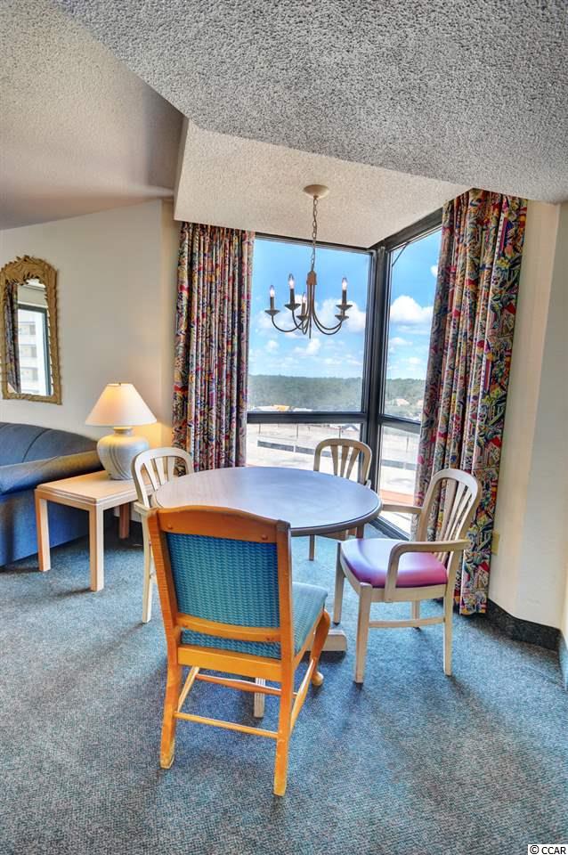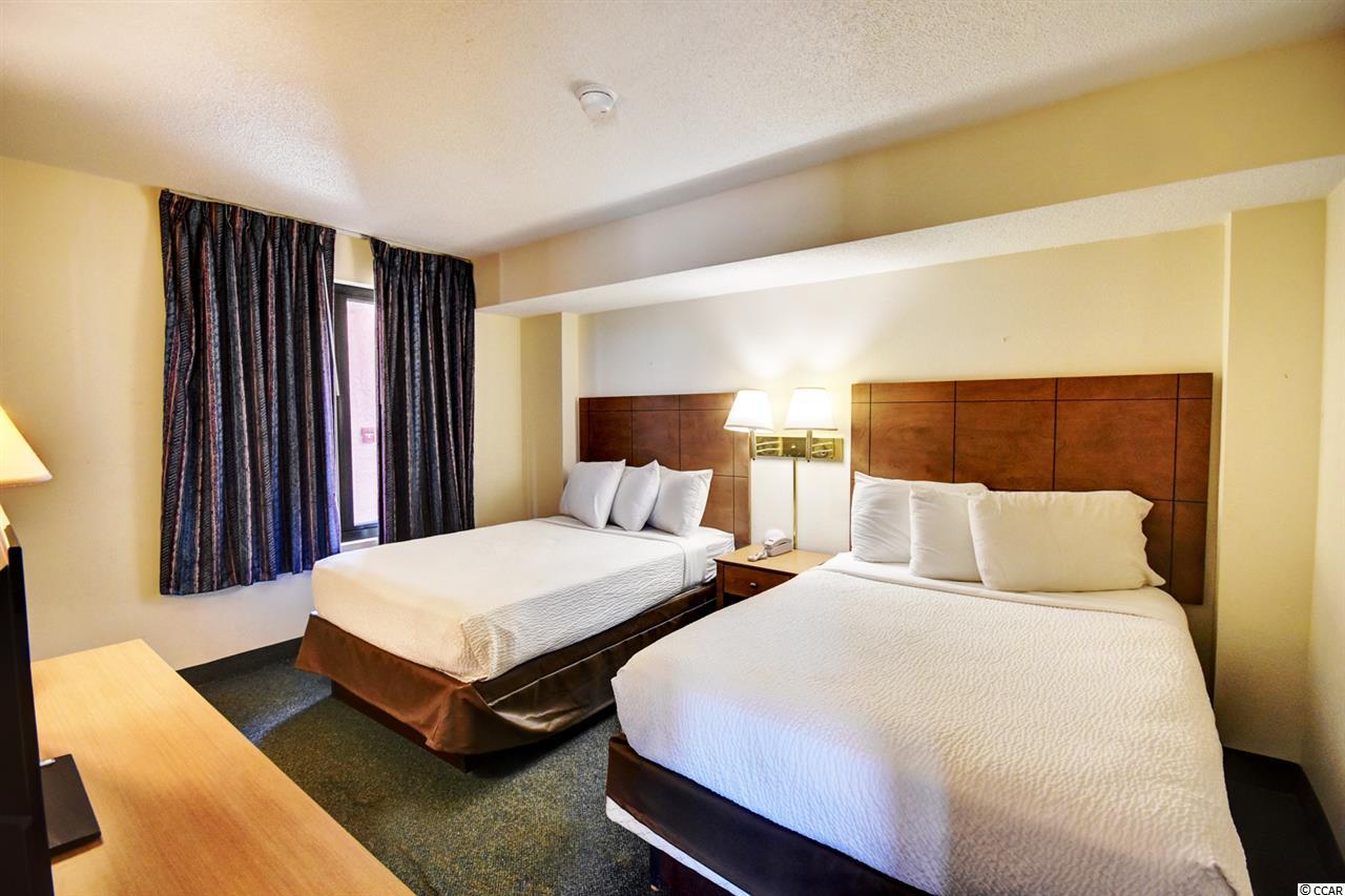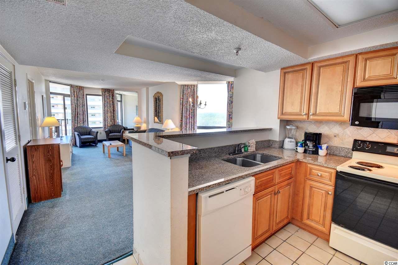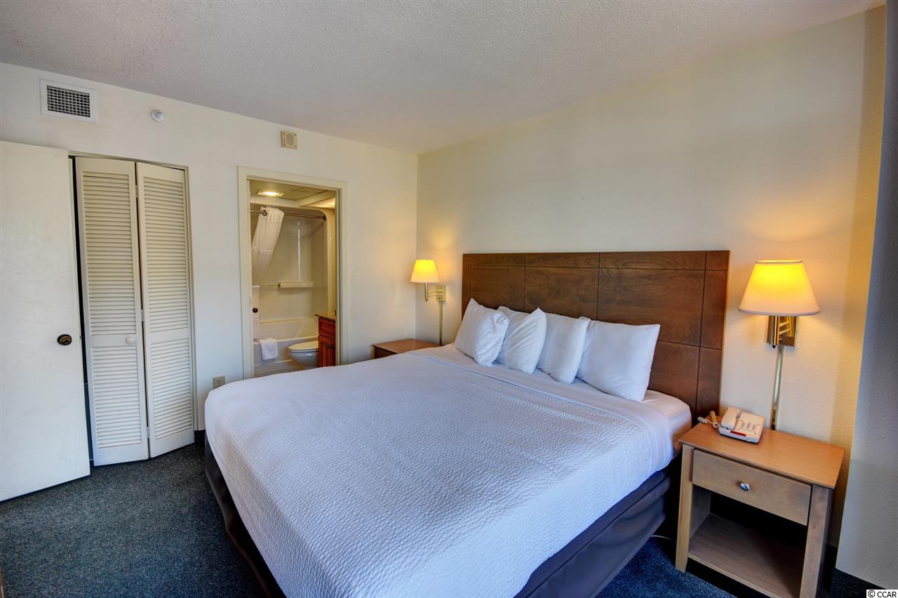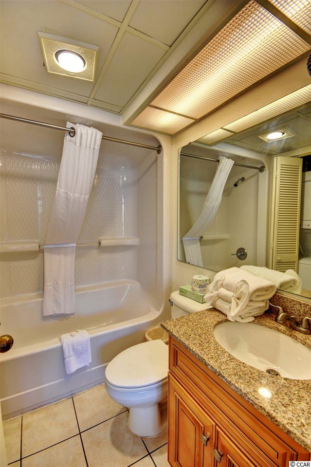 Your gorgeous beach retreat is located along Myrtle Beach's Golden Mile in the less crowded Cabana section, with popular restaurants like Flamingo Grill and Mr. Fish within easy walking distance. This 10th floor condo features two private bedrooms each with their own bathroom along with a stacked washer/dryer conveniently in the unit. Sunlight pours into this luxurious condo, where upscale furnishings offer a serene spot to kick back and unwind. In the well-equipped kitchen, granite counter tops and updated cabinetry will delight the chefs in your party. Relax with your morning coffee at the three-person breakfast bar or enjoy the breeze out on the balcony. The master bedroom has a heavenly king-size bed and balcony access. The second bedroom is detailed with two full-size beds and a separate bathroom. Beach Colony Resort's impressive amenities are just moments away. Choose to swim in multiple heated pools, hang out at the swim-up bar, take a trip along the lazy river, or soak in the hot tubs. Beach Colony also has a full gym, racquetball, and a game room. Extra perks for this condo include unassigned garage parking for two vehicles, an in-unit washer/dryer, and complimentary Wi-Fi. This resort located in the Heart of Myrtle Beach is just minutes away from the Best Shopping, Dining, Entertainment, and Attractions that the Grand Strand has to Offer. You must check this condo and resort out yourself,so make an appointment for your private viewing today!