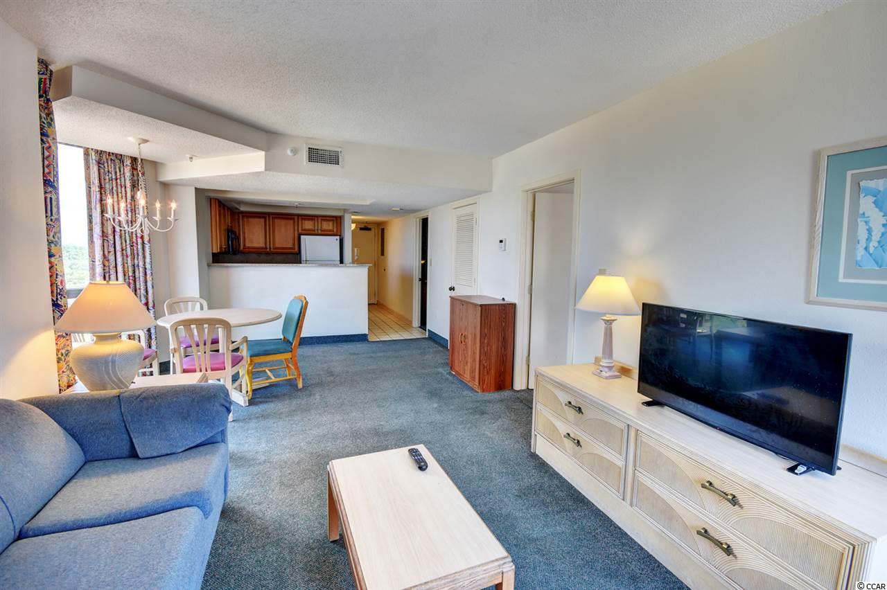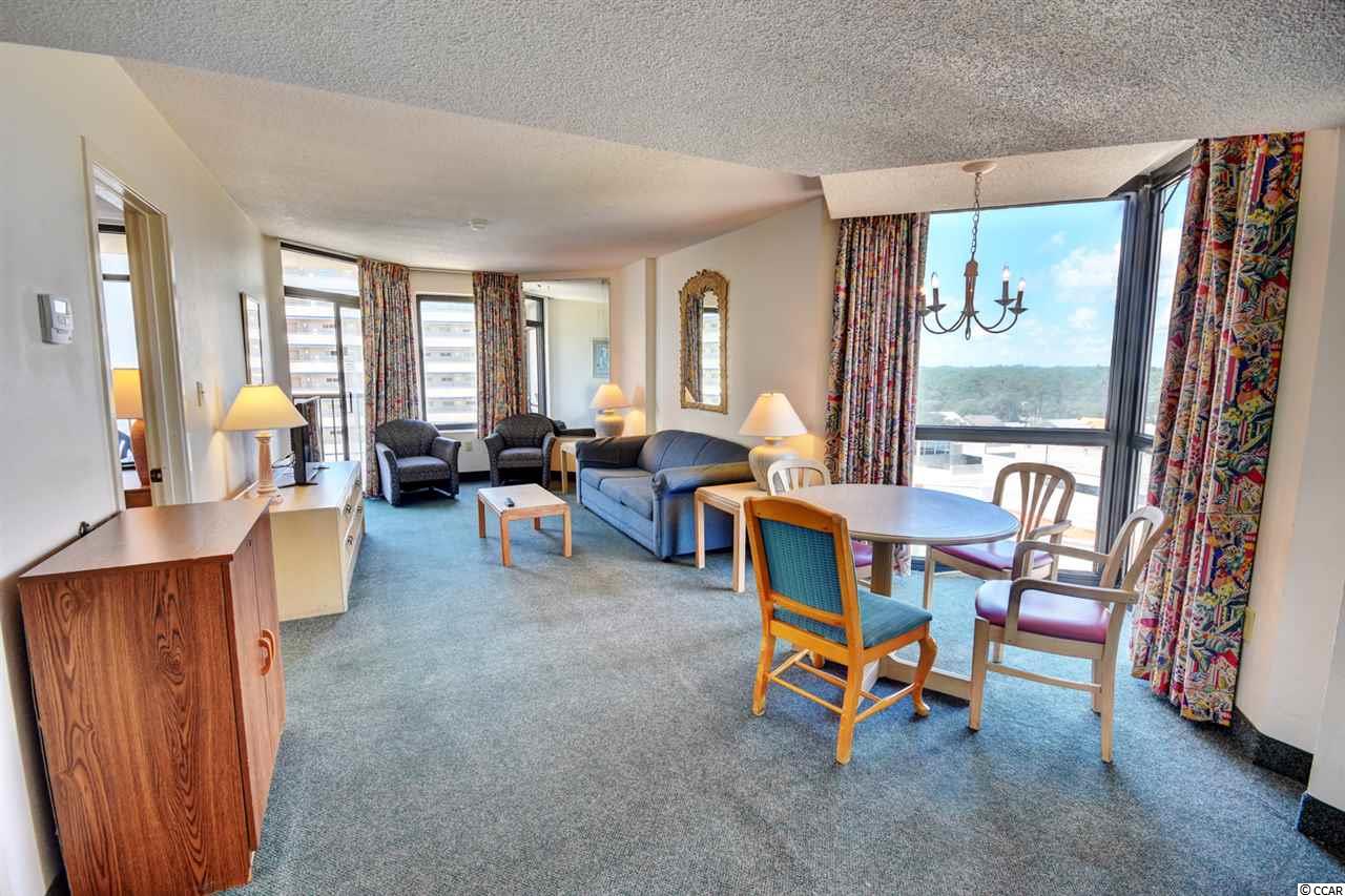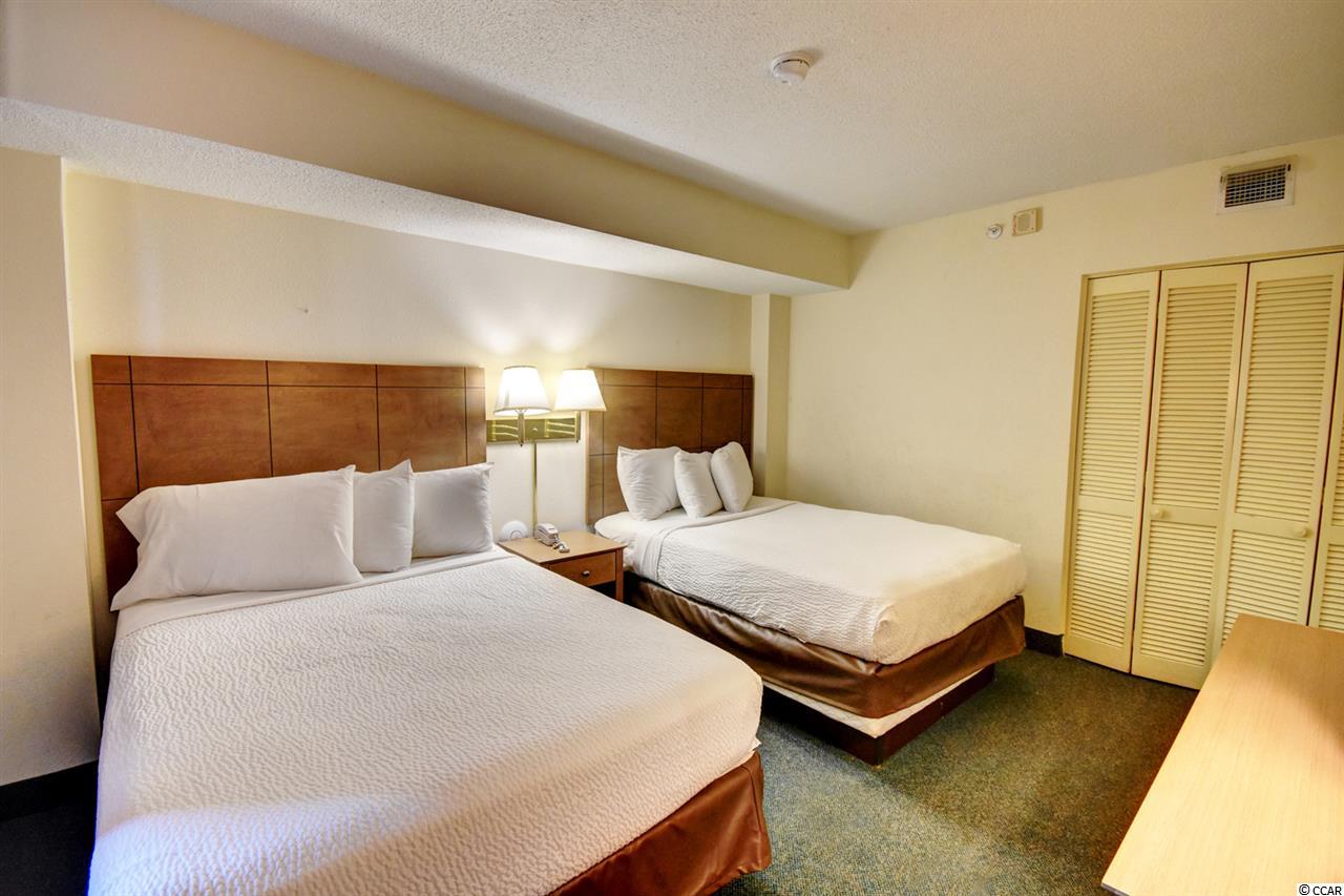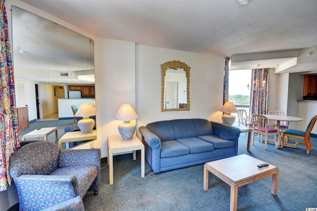 Your gorgeous beach retreat is located along Myrtle Beach's Golden Mile in the less crowded Cabana section, with popular restaurants like Flamingo Grill and Mr. Fish within easy walking distance. This 10th floor condo features two private bedrooms each with their own bathroom along with a stacked washer/dryer conveniently in the unit. Sunlight pours into this luxurious condo, where upscale furnishings offer a serene spot to kick back and unwind. In the well-equipped kitchen, granite counter tops and updated cabinetry will delight the chefs in your party. Relax with your morning coffee at the three-person breakfast bar or enjoy the breeze out on the balcony. The master bedroom has a heavenly king-size bed and balcony access. The second bedroom is detailed with two full-size beds and a separate bathroom. Beach Colony Resort's impressive amenities are just moments away. Choose to swim in multiple heated pools, hang out at the swim-up bar, take a trip along the lazy river, or soak in the hot tubs. Beach Colony also has a full gym, racquetball, and a game room. Extra perks for this condo include unassigned garage parking for two vehicles, an in-unit washer/dryer, and complimentary Wi-Fi. This resort located in the Heart of Myrtle Beach is just minutes away from the Best Shopping, Dining, Entertainment, and Attractions that the Grand Strand has to Offer. You must check this condo and resort out yourself,so make an appointment for your private viewing today!
