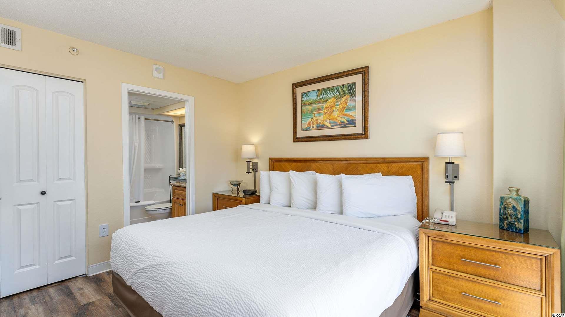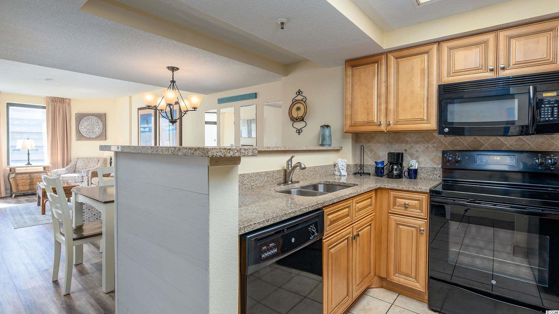 Very rare to find! Beautifully renovated and fully furnished 2 bedroom/ 2 bath Penthouse in Beach Colony Resort II. Enter through the foyer into the open and bright living area with new LVP flooring. You can enjoy the fantastic view of the Atlantic ocean from the balcony of the living room and the Master Suite! The kitchen is fully equipped with granite countertops, a tile backsplash, and a breakfast bar. You'll feel right at home and ready to relax and enjoy this fantastic vacation getaway. The stove, dishwasher, washer, and dryer are barely new. Beach Colony Resort has terrific amenities and offers something for everyone, including indoor/outdoor pools, lazy river, spas/hot tubs, fitness center, tiki bar, onsite restaurants, private beach access, and more! In the golden mile area in Myrtle Beach, the building location is ideal, close to all the dining, shopping, golf, and entertainment. Don't miss this opportunity to have your piece of paradise here at the beach! It is ideal for a second home or investment, so make an appointment today!