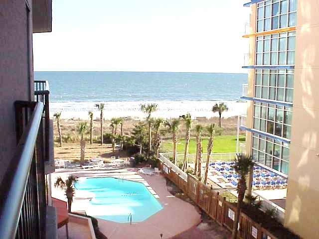 EXCELLENT OCEANVIEW in OCEANFRONT RESORT 4th Floor. PERFECT AS 2nd HOME and/or RENTAL. Children & Grand Children will swim to their hearts content. LAZY RIVER flows below yr Balcony, 3 OUTDOOR POOLS, HOT TUBS, INDOOR POOL, RACKET BALL COURT, FITNESS CENTER, OCEANFRONT CAFE & LOUNG . SPA. WELL LANDSCAPED PROPERTY IN QUIET AREA of MYRTLE BEACH. Elecrticity is included in HOA fee